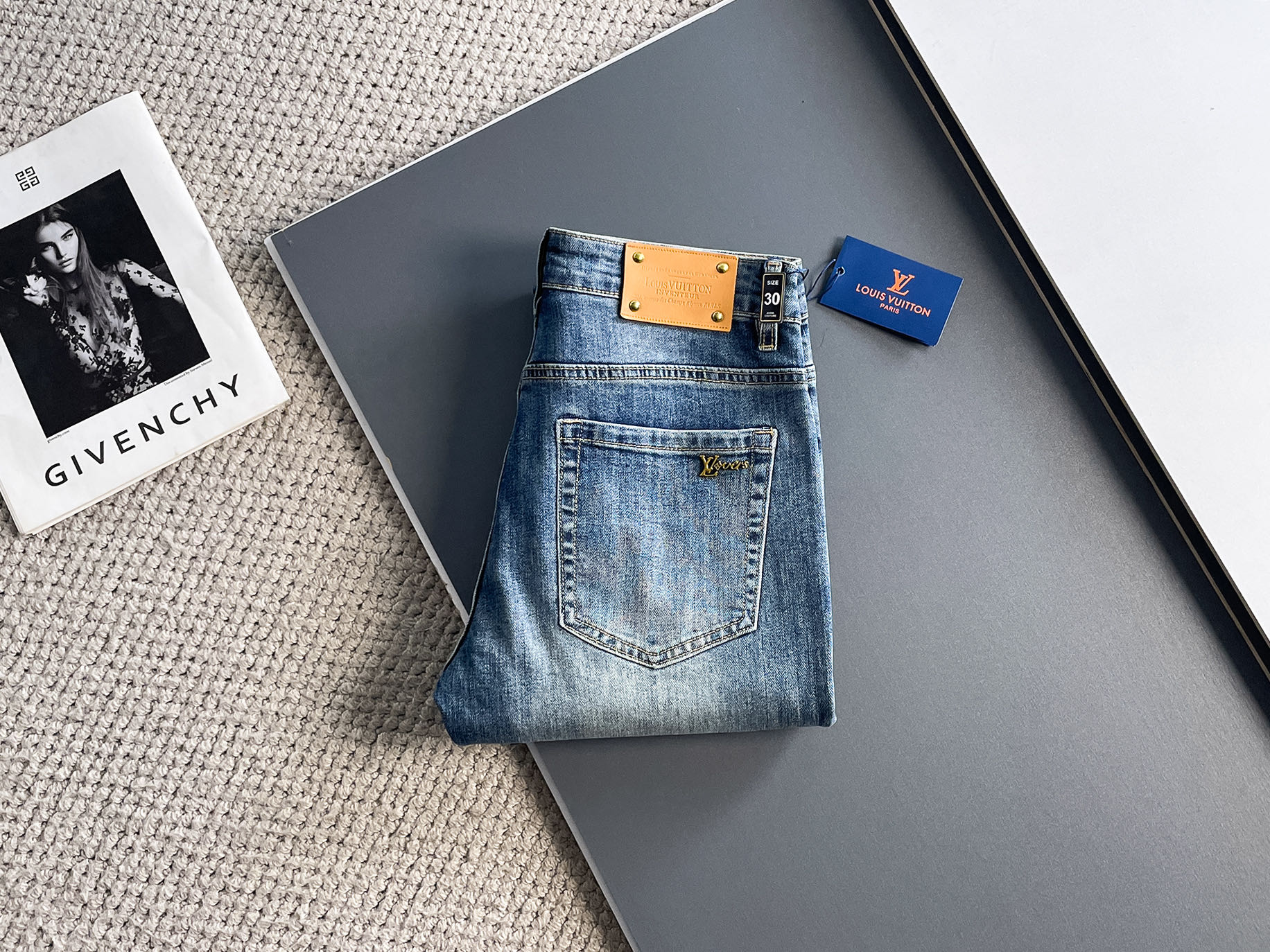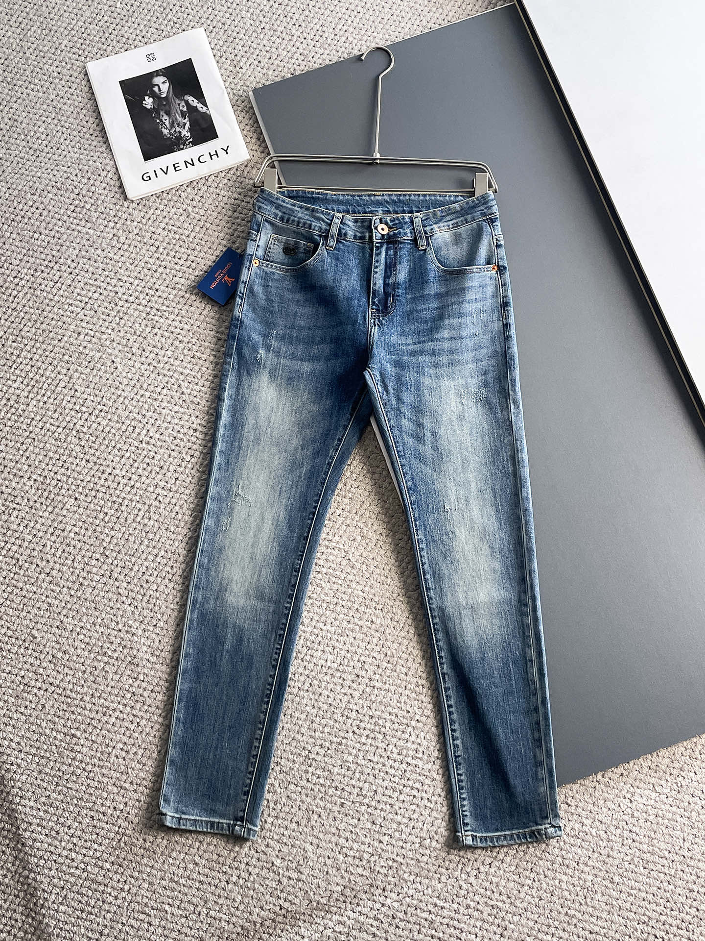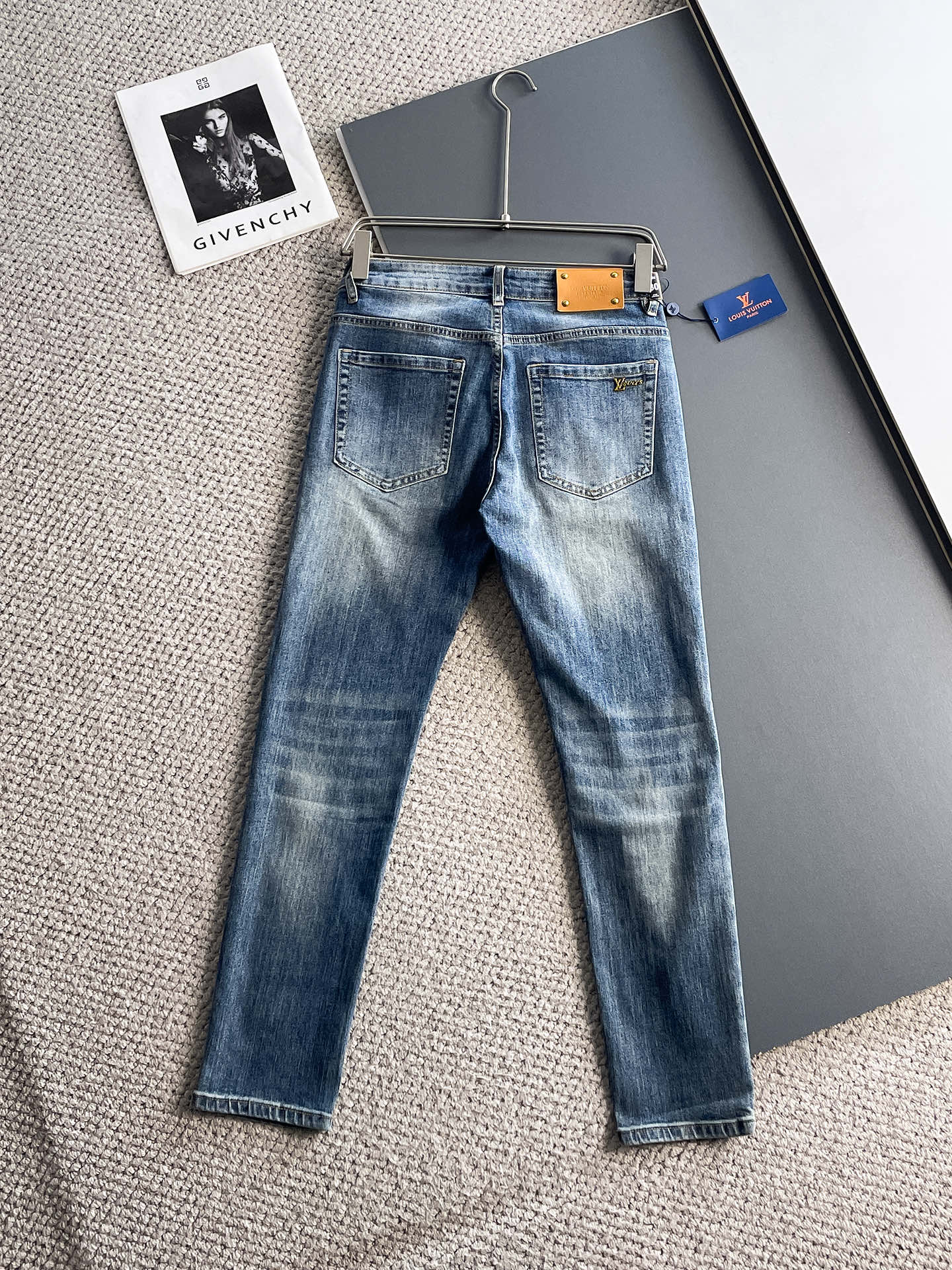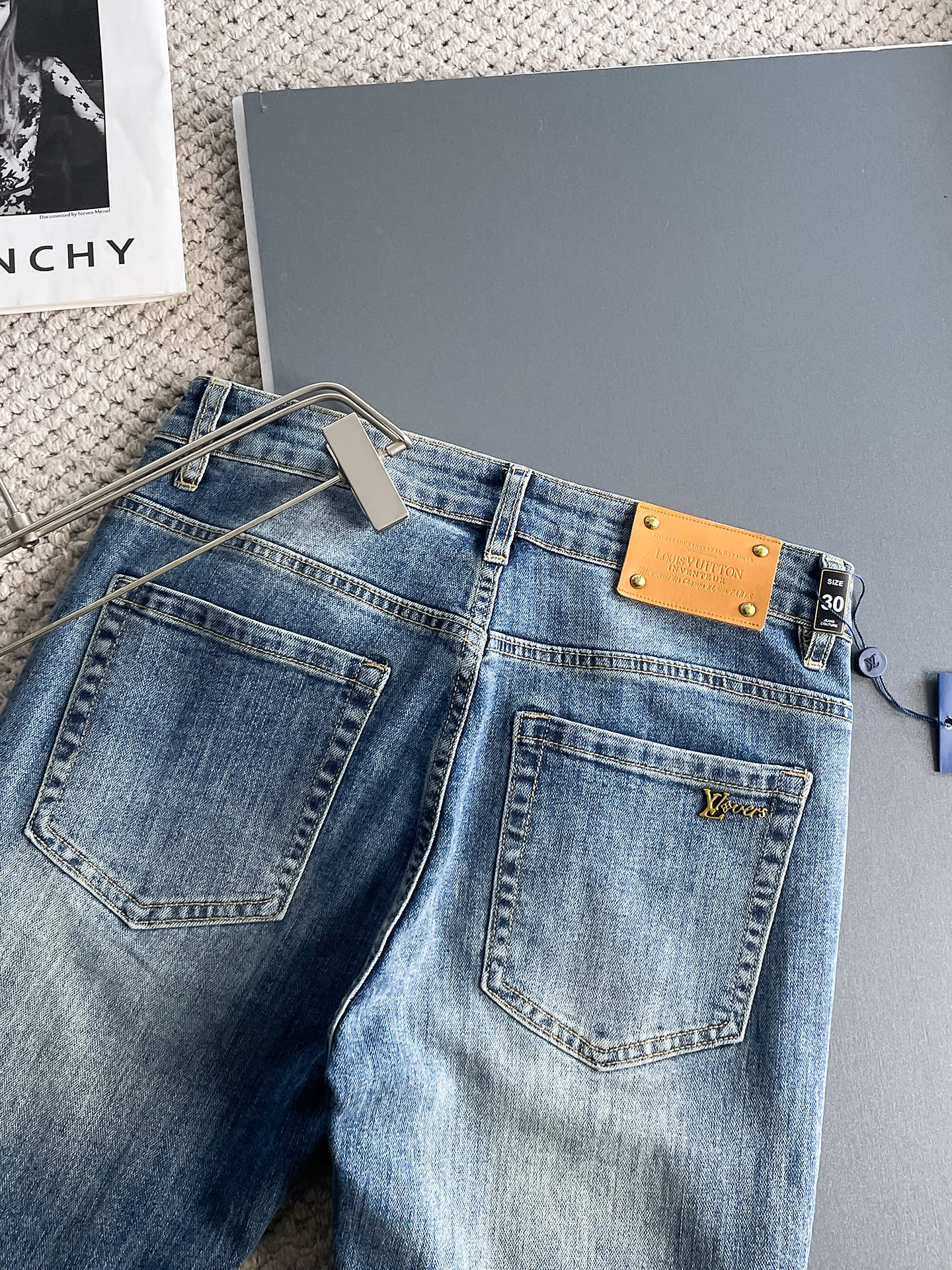 路易威登 LV 2025春夏男士水洗小直筒牛仔裤!贸易公司渠道牛货,品相超赞,时尚圈万能的百搭裤王,欧美街拍中高频穿搭示范,皮革腰牌logo设计!且是奢侈品牌每季必出的单品!非常纯粹极简的设计基调!秉承了一贯的时尚主张,颇具看点,即彰显了匠心工艺又有力的标榜了品牌身份!客供意大利定制丹宁面料,质感无敌赞,颇具韵味,版型剪裁完美,提臀修身显瘦效果极佳,可横扫衣橱任何的上装搭配,兼容性广泛,休闲兼备,上身型款十足,无敌的时髦百搭神品!尺码:29-38