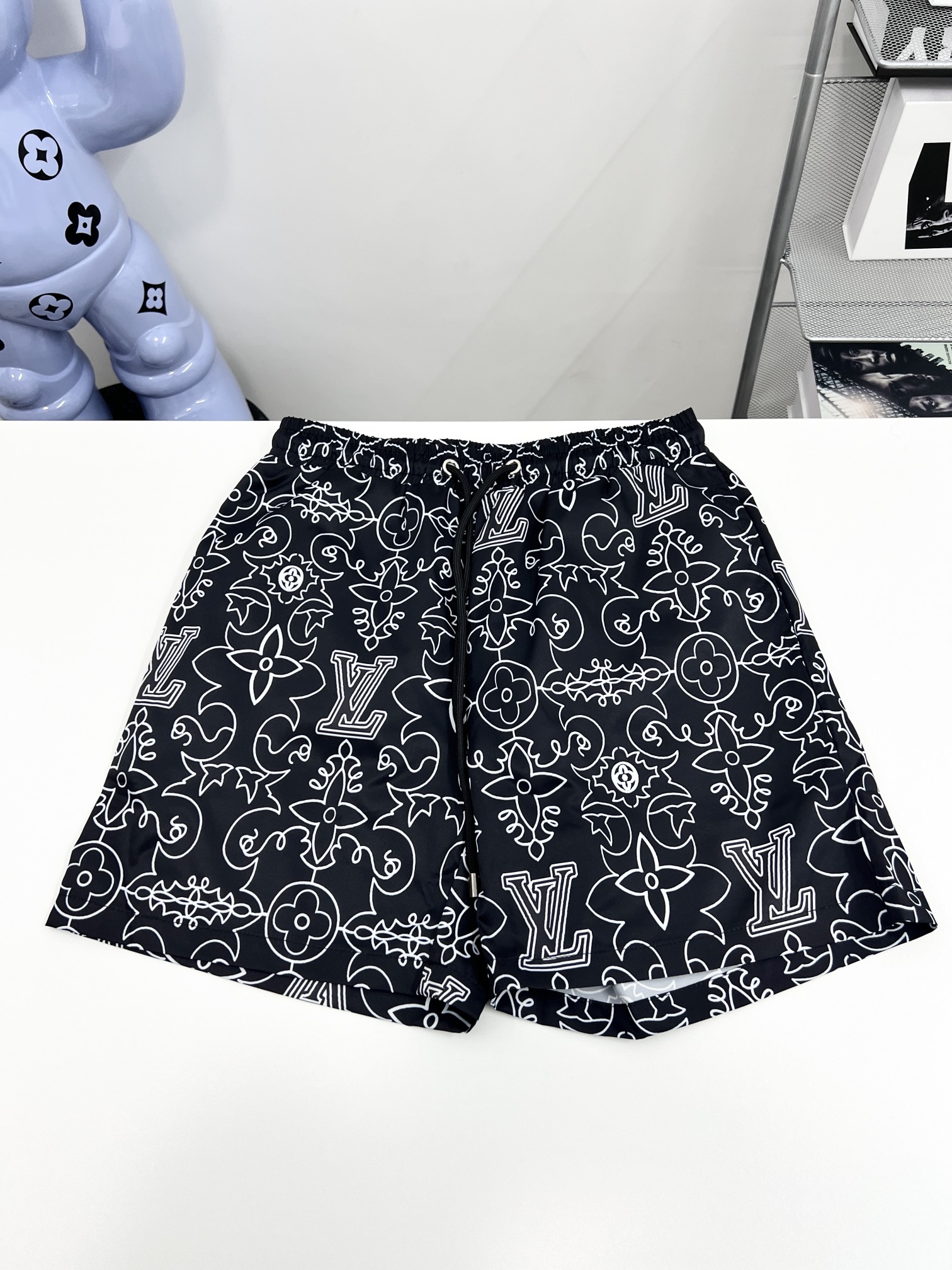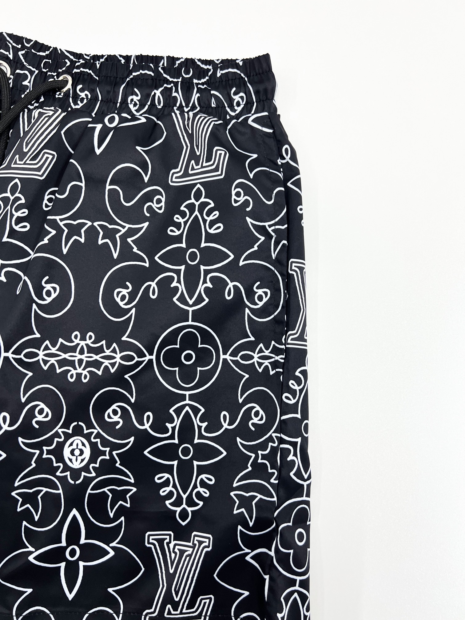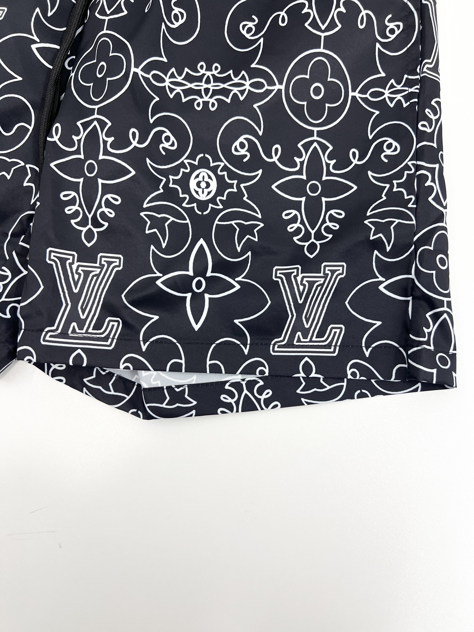 路易沙滩裤篮球短裤梭织尼龙美式运动休闲潮流短裤、绝配潮流运动休闲结合 选用卡丝尼龙面料、透气性、舒适性、功能性极佳、专业做梭织运功工厂代工、细节到位 前后的印花图案、高温压烫牢固不掉