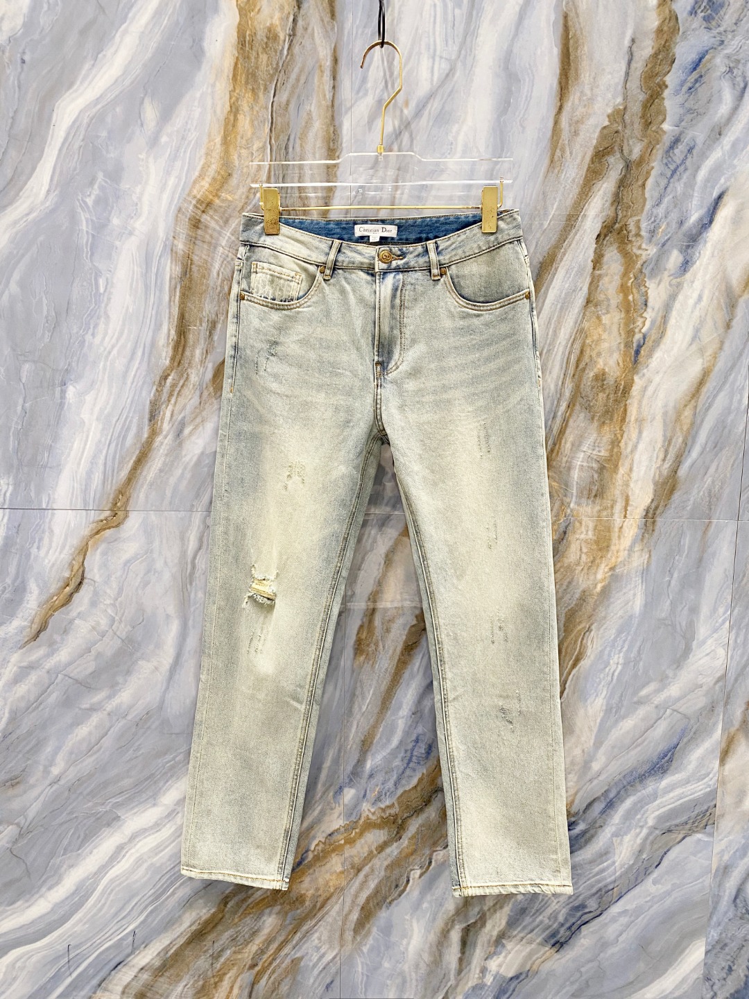 迪奥 2025ss春夏新款修身小脚牛仔裤 完美洗水工艺 定制顶级五金logo 独家定制微弹面料 码数29-38(没35、37)
