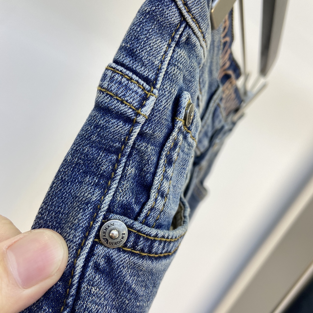 阿玛尼2025春夏新款 原单狠货牛仔裤,原版五金皮牌 !版型超正.修身不紧身,超级有范,原版定制水洗牛仔面料,原版五金辅料开模!上身帅气十足!码数:29-36 35