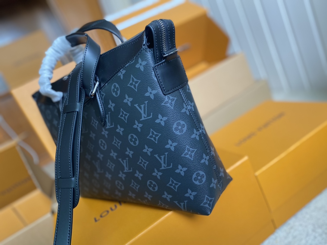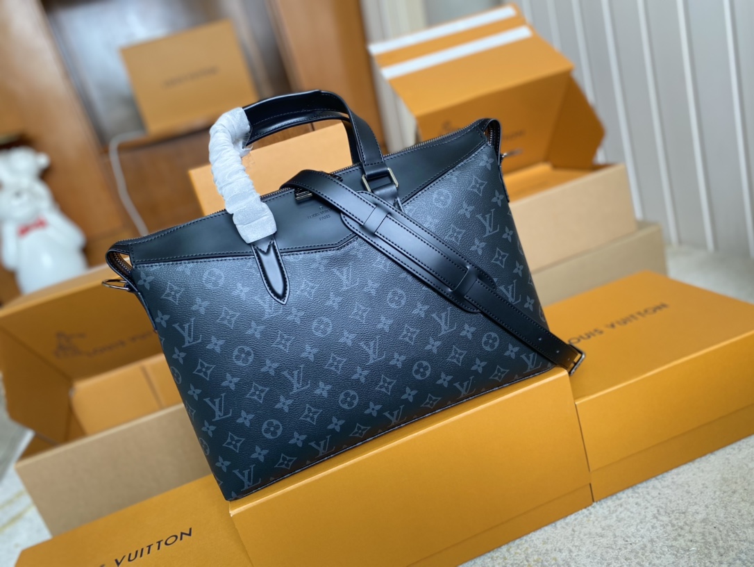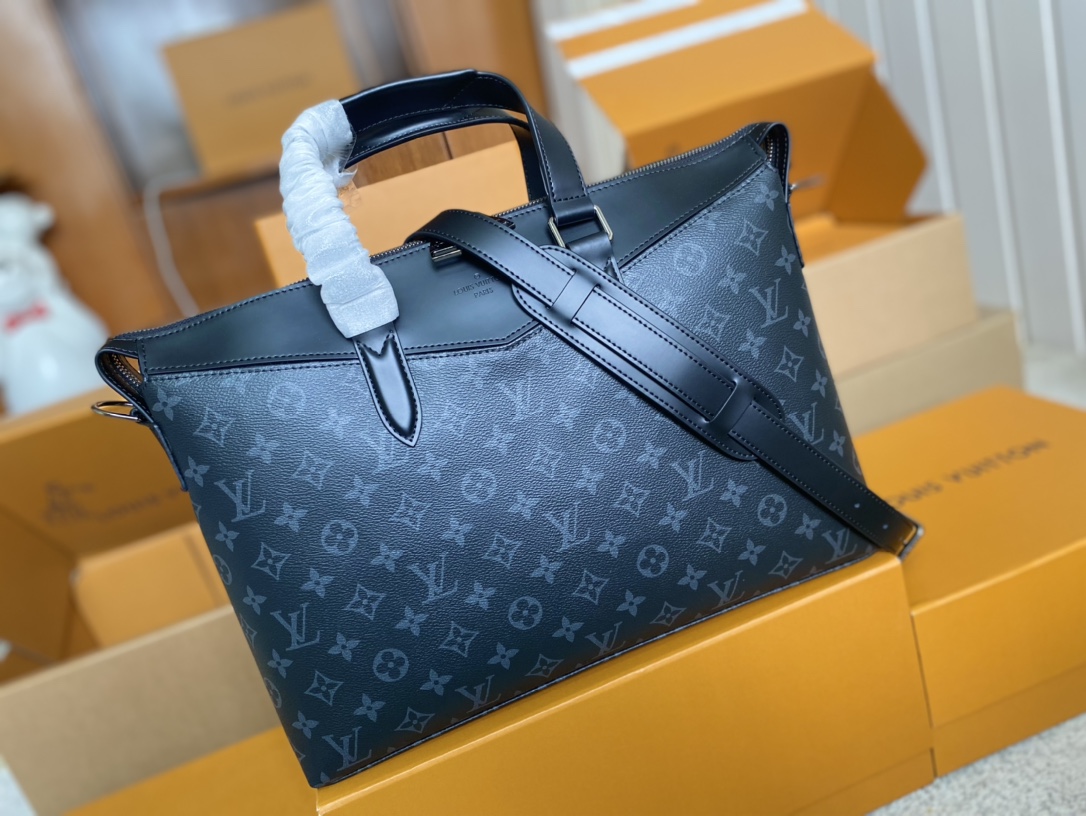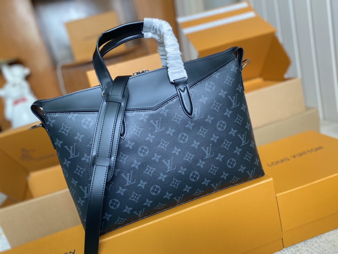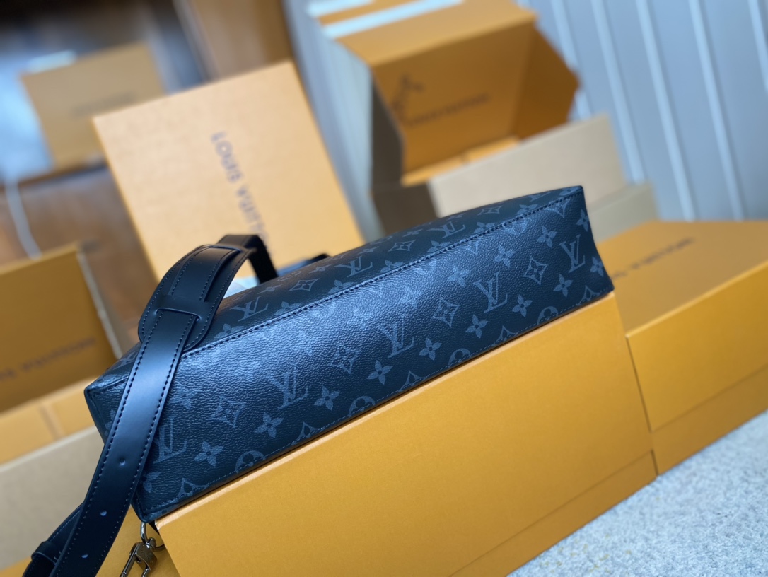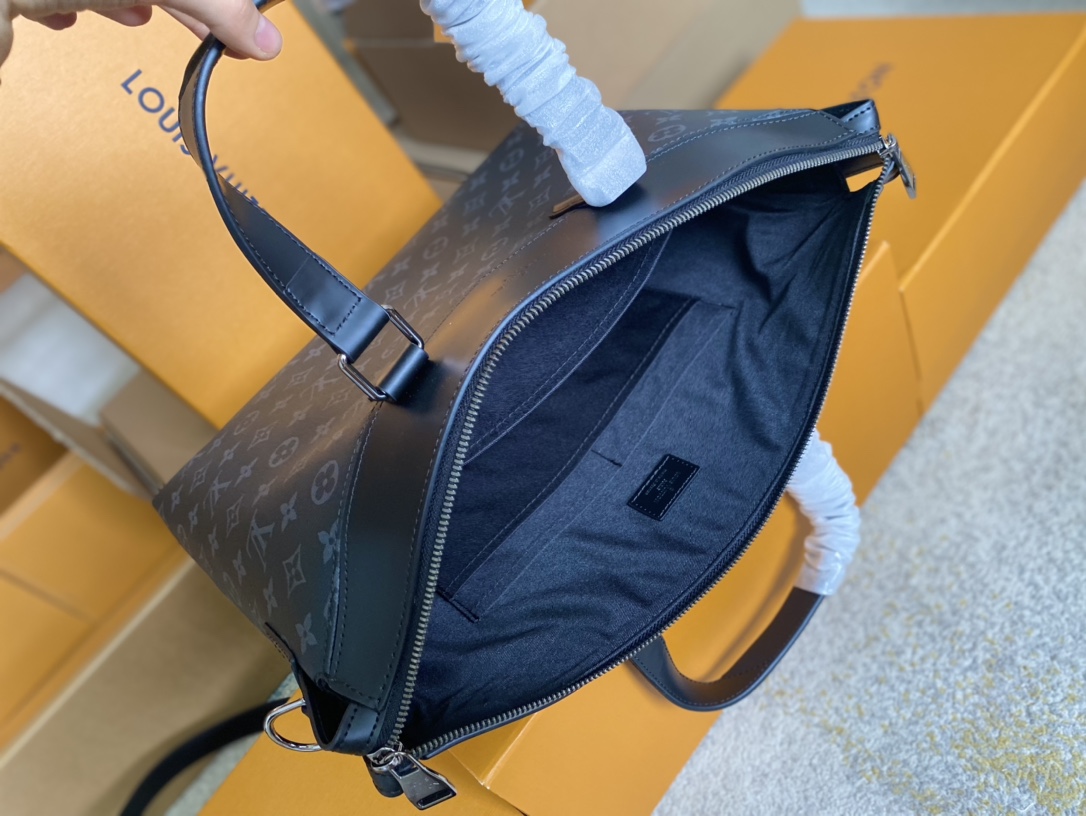 顶级原单 M40566✨ 为办公场所注入成熟气息,此款现代公文包以硬朗的Monogram Eclipse 帆布与独特的设计细节展现令人愉悦的商务风格。宽敞的包内隔层,色泽更深、更为现代的标志性Monogram花纹。 详细特征