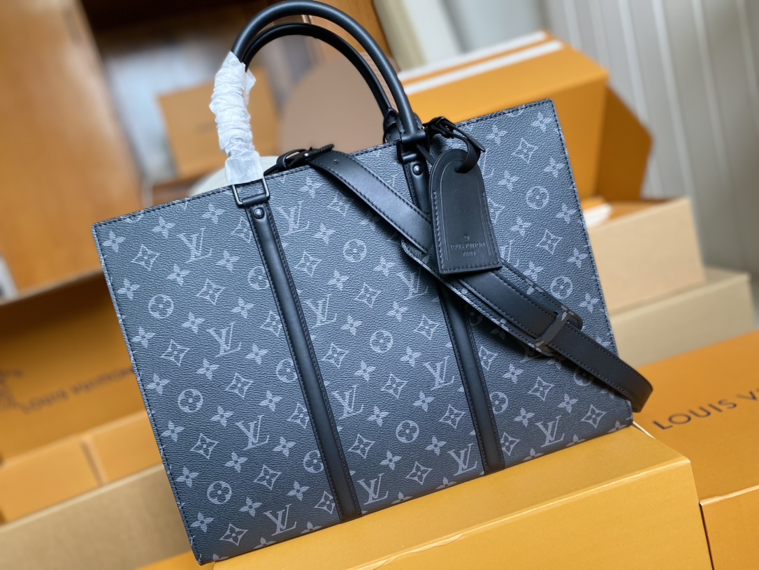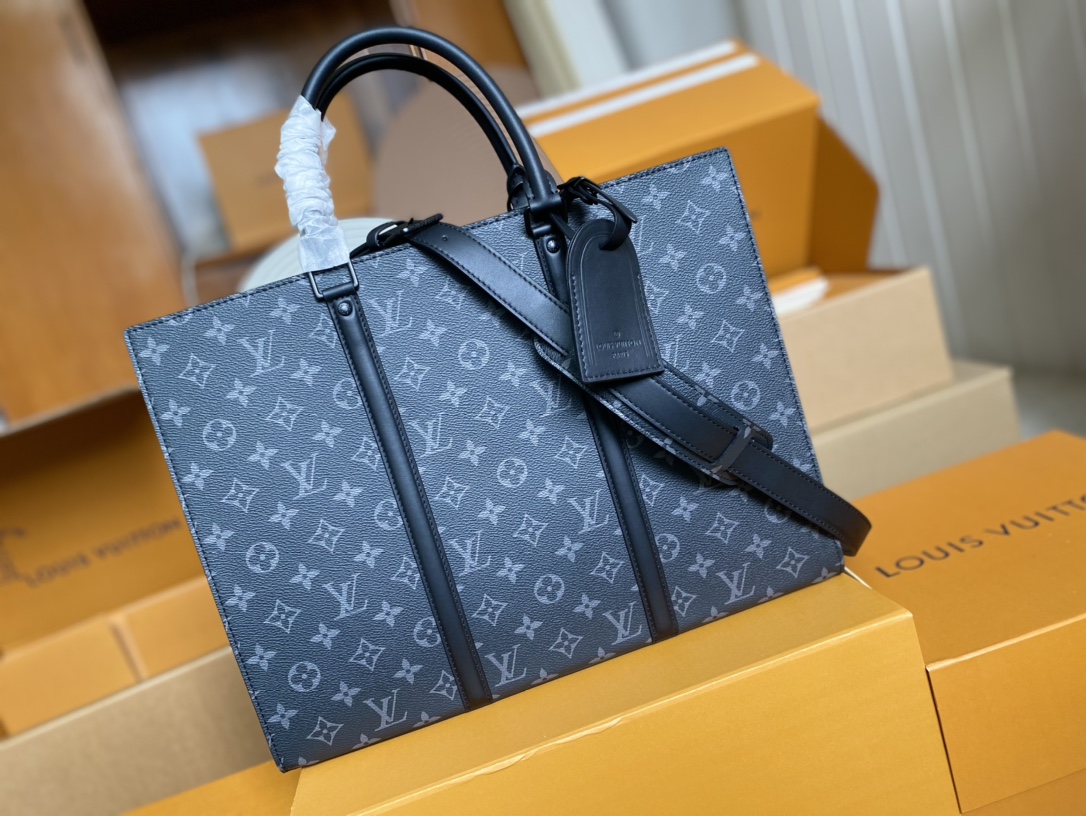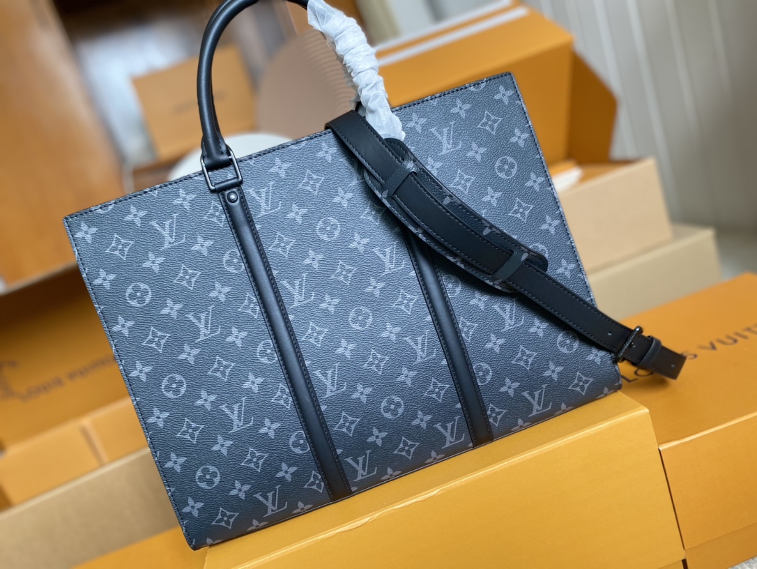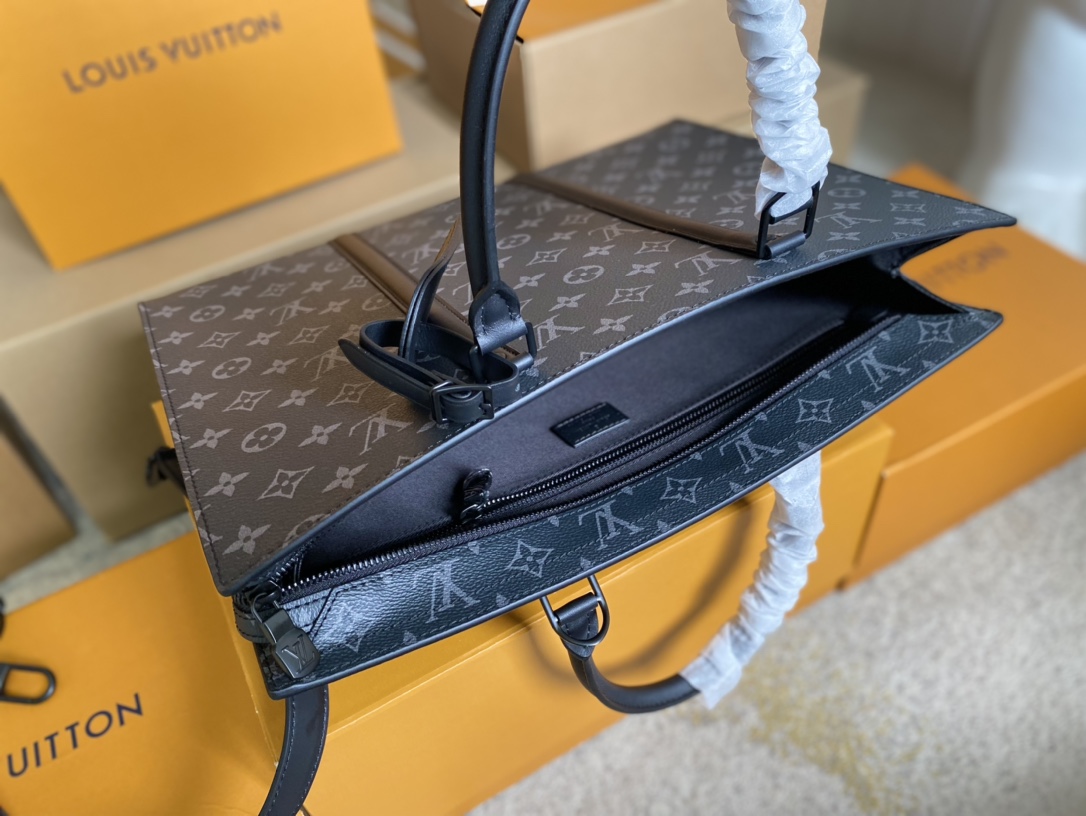 顶级原单 M45265✨ Sac Plat Horizontal Zippé 公文包取材 Monogram Eclipse 帆布和皮革,LV 字母压纹与 Monogram 名牌致意品牌传承,利落线条抒写商务休闲新章,更有皮革手柄实现舒适手提。