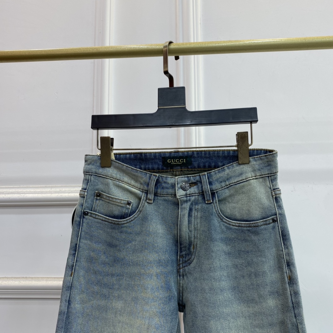 面料:丹宁水洗牛仔裤!奢华体验.客供贸易渠道,简约魅力的经典裤装采用客供丹宁牛仔 质感厚实舒适及透气效果也非常的好。高品质工艺化的裁剪堪称一流,整体非常精致,内外兼修铐边设计严丝合缝,运用聚股械针封边工艺彰显品牌奢华内在魅力品牌Logo字眼饱满厚实,凿刻型钮扣厚实严谨,给本平庸无奇的裤装带来了全新时尚品味!