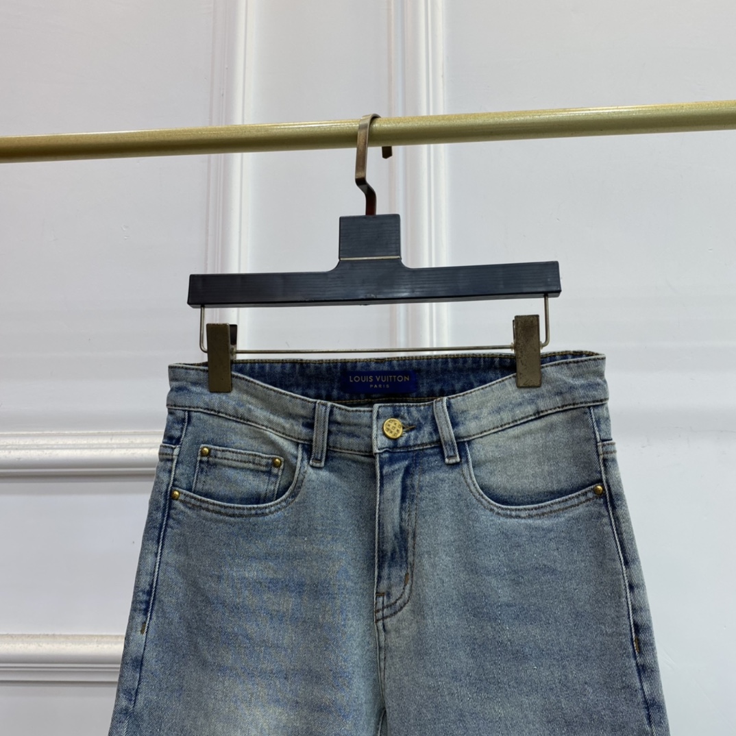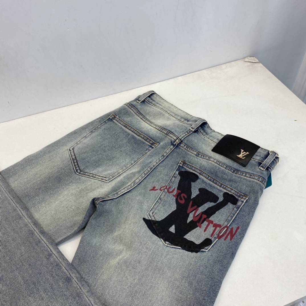 面料:丹宁水洗牛仔裤!奢华体验.客供贸易渠道,简约魅力的经典裤装采用客供丹宁牛仔 质感厚实舒适及透气效果也非常的好。高品质工艺化的裁剪堪称一流,整体非常精致,内外兼修铐边设计严丝合缝,运用聚股械针封边工艺彰显品牌奢华内在魅力品牌Logo字眼饱满厚实,凿刻型钮扣厚实严谨,给本平庸无奇的裤装带来了全新时尚品味!
