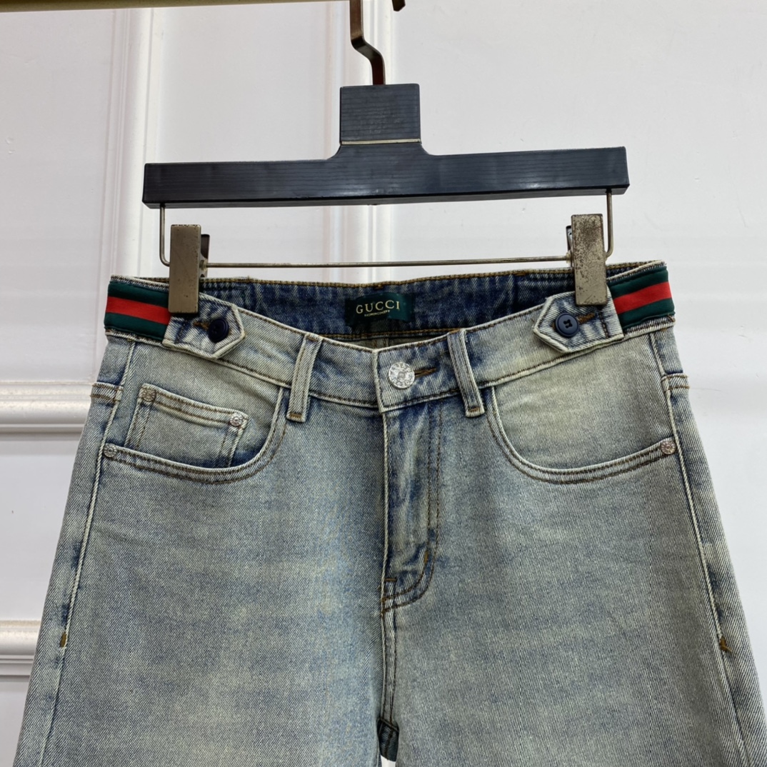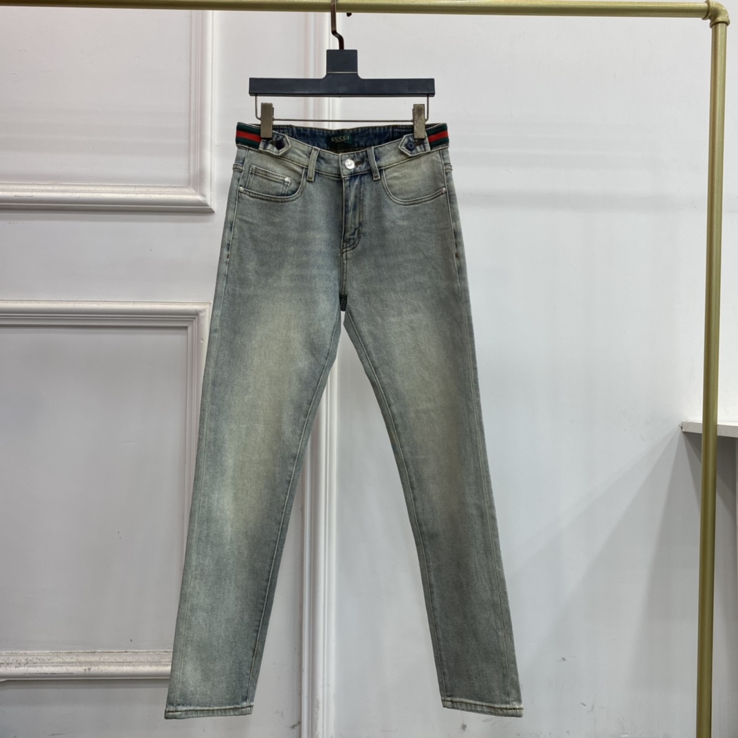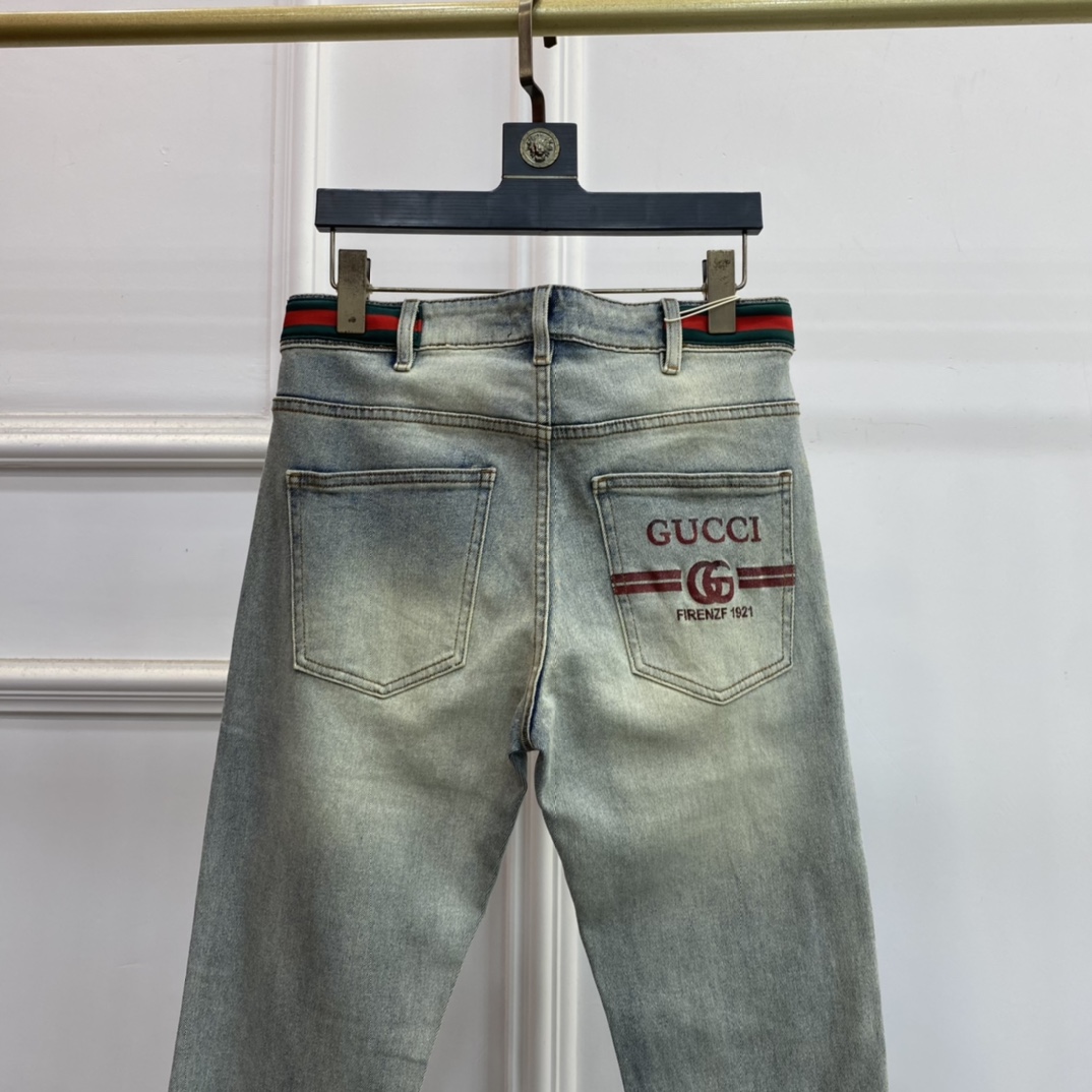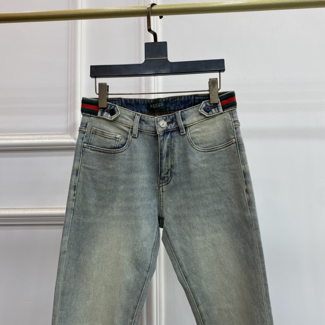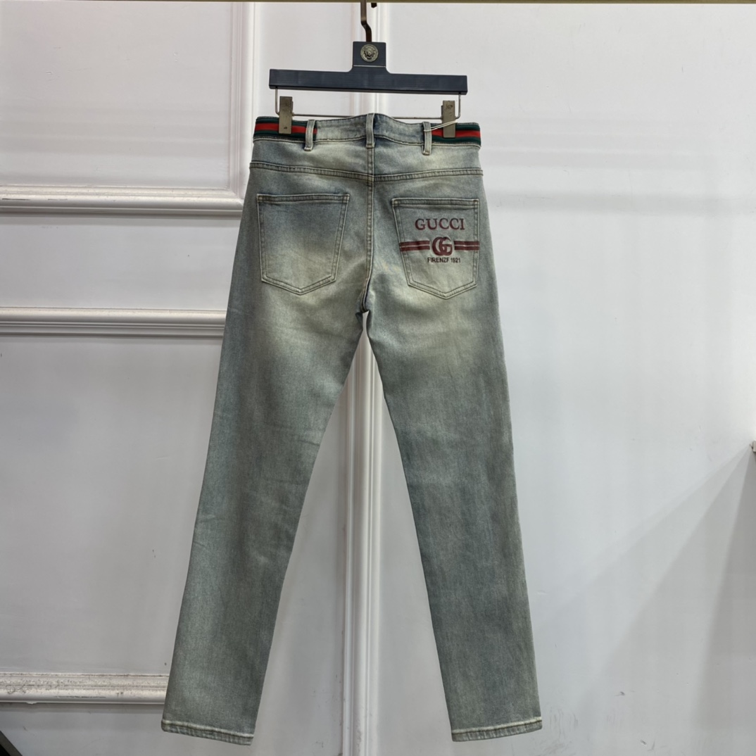 面料:丹宁水洗牛仔裤!奢华体验.客供贸易渠道,简约魅力的经典裤装采用客供丹宁牛仔 质感厚实舒适及透气效果也非常的好。高品质工艺化的裁剪堪称一流,整体非常精致,内外兼修铐边设计严丝合缝,运用聚股械针封边工艺彰显品牌奢华内在魅力品牌Logo字眼饱满厚实,凿刻型钮扣厚实严谨,给本平庸无奇的裤装带来了全新时尚品味!