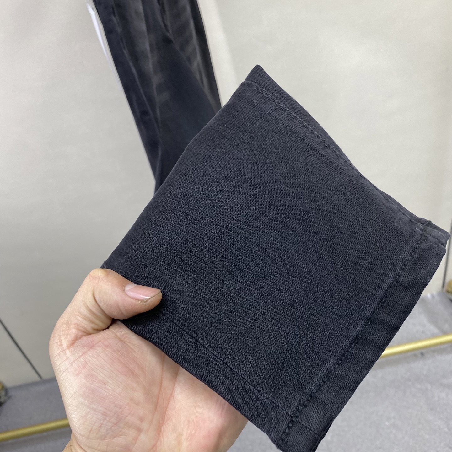 面料:丹宁水洗牛仔裤!奢华体验.客供贸易渠道,简约魅力的经典裤装采用客供丹宁牛仔 质感厚实舒适及透气效果也非常的好。高品质工艺化的裁剪堪称一流,整体非常精致,内外兼修铐边设计严丝合缝,运用聚股械针封边工艺彰显品牌奢华内在魅力品牌Logo字眼饱满厚实,凿刻型钮扣厚实严谨,给本平庸无奇的裤装带来了全新时尚品味!