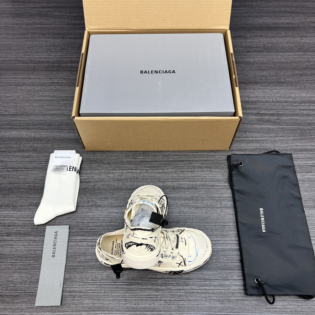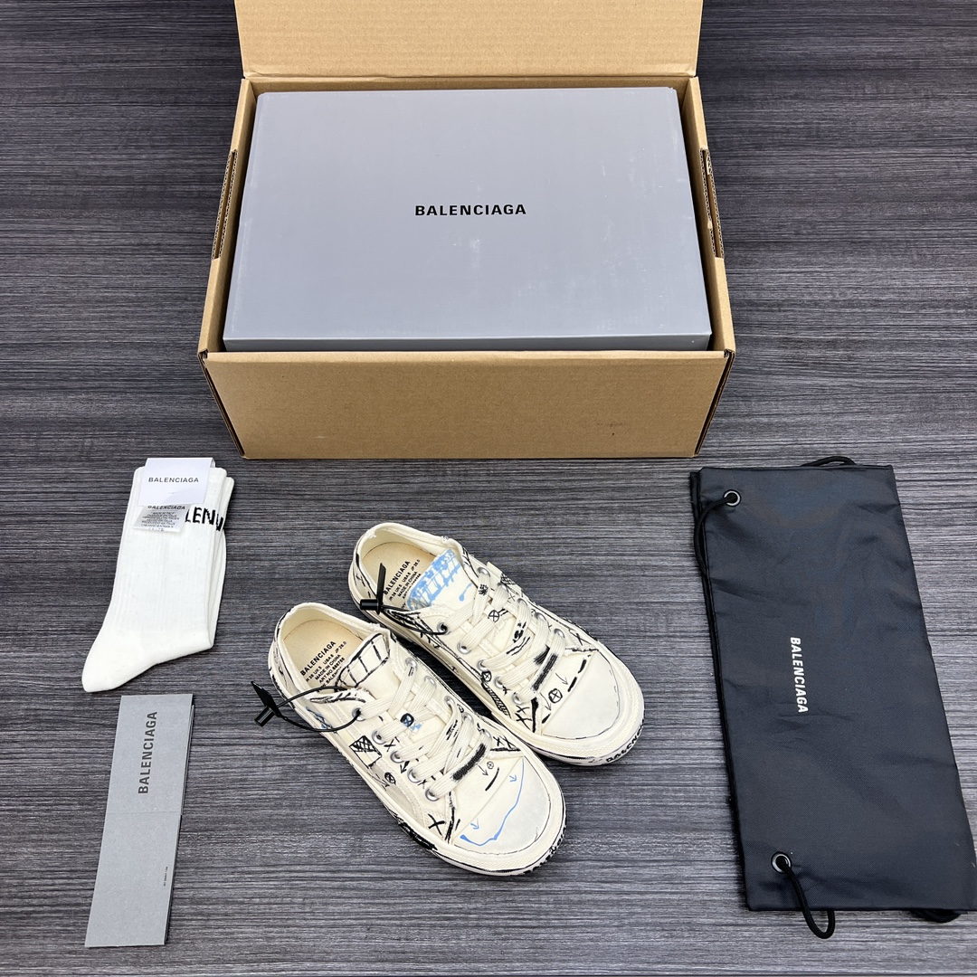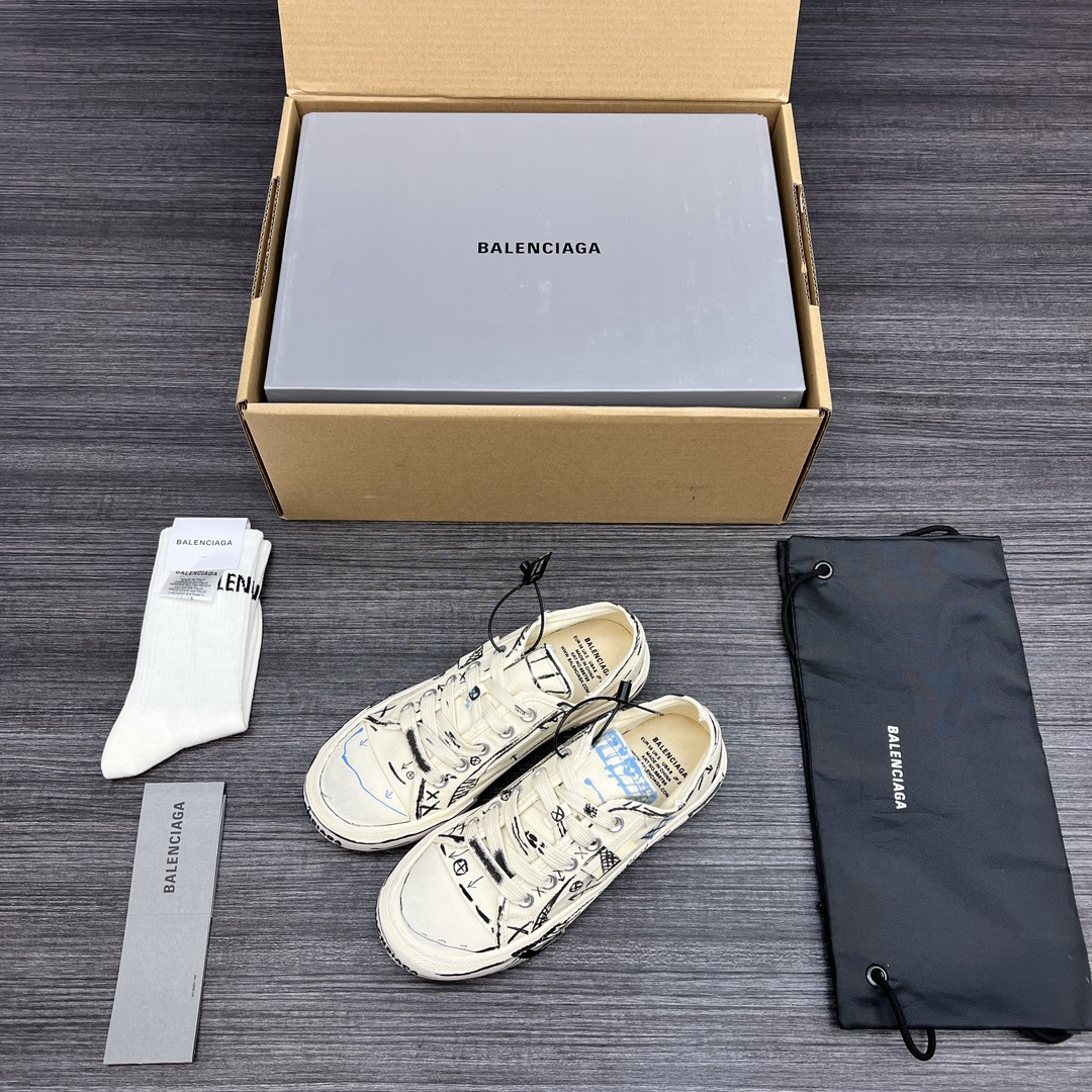 顶级版本BALENCIAGA巴黎世家情侣款paris涂鸦系列单鞋! 原版鞋鞋面破坏做旧工艺设计 鞋身侧面手绘图案涂鸦工艺一笔一画勾勒, 包装:全套得物配件加固飞机盒包装! 码数:35-45(正码)