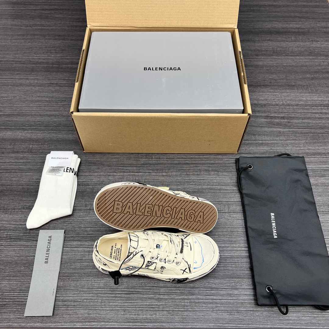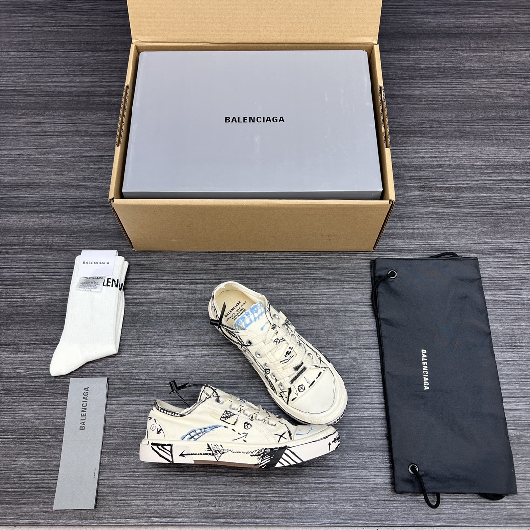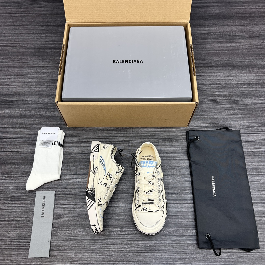 顶级版本BALENCIAGA巴黎世家情侣款paris涂鸦系列单鞋! 原版鞋鞋面破坏做旧工艺设计 鞋身侧面手绘图案涂鸦工艺一笔一画勾勒, 包装:全套得物配件加固飞机盒包装! 码数:35-45(正码)