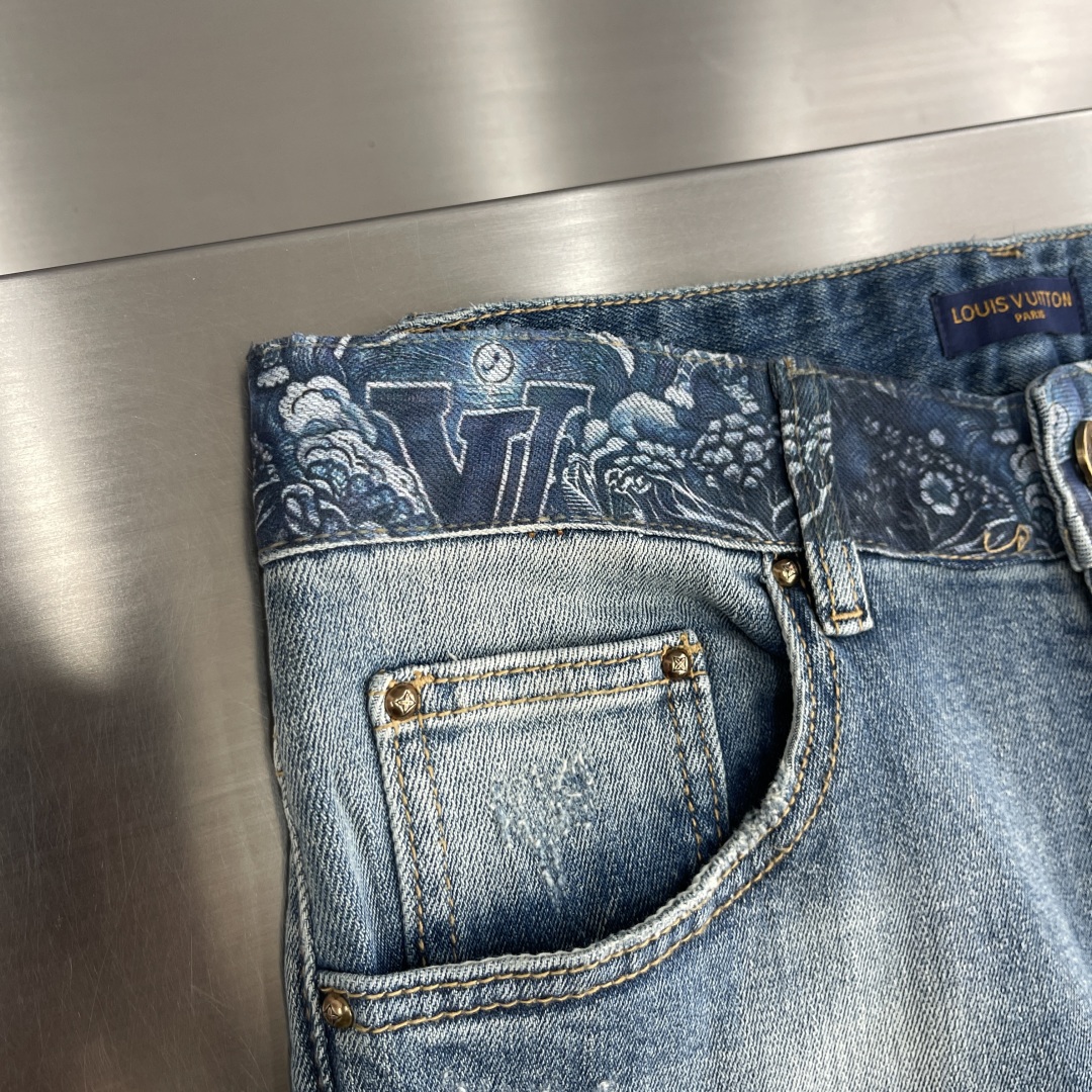 驴牌男士卷边logo牛仔裤