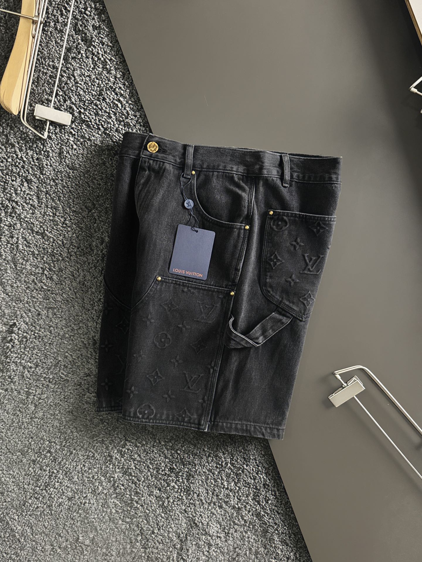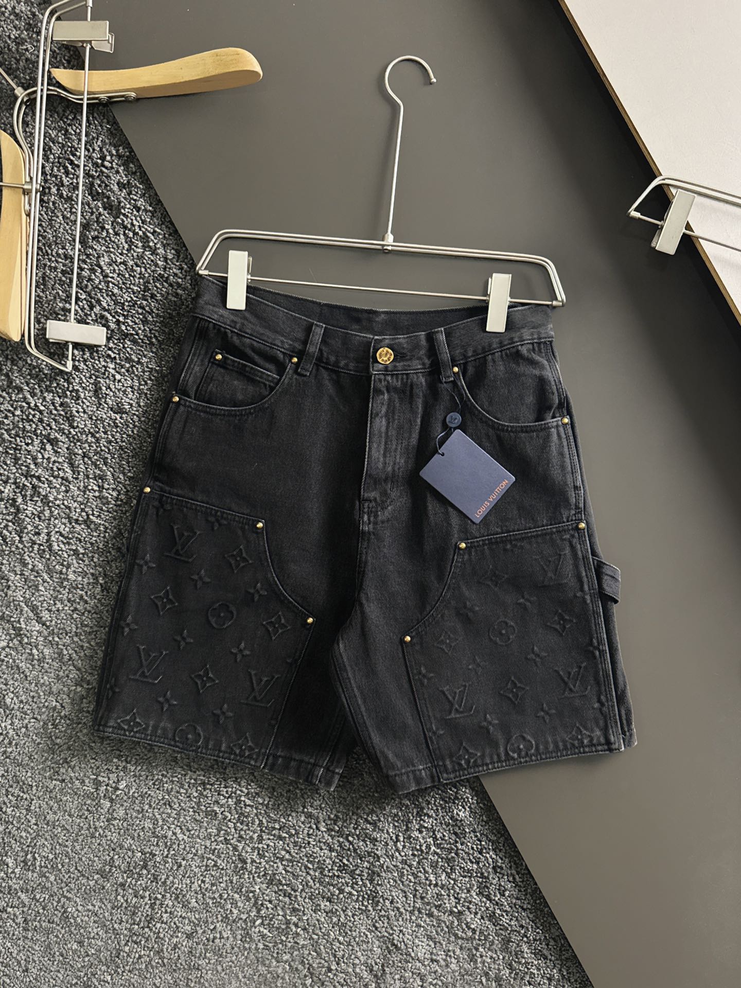 驴牌24独家专供夏季新款男士高品质压花牛仔短裤! 高端货,高版本 重工牛仔工装短裤,定位裁片拼接设计,轻微做旧洗水,经典Monogram元素点缀压花工艺,锤子固定环呈现L和V字形状,五金logo刻字十分工整有型,拉链美观又很顺滑,专柜品质十分经久耐用有质感!散发着自然的光泽度,高级且奢华,隔着屏幕都丝毫不减它的风采!搭配lvse皮牌标签,水洗单宁面料,营造宽松版型,直筒版型经典剪裁效果,休闲款式 质做工细节经得起任何形式检验,绝对大厂代工出品 呈现一种焕然一新,赋予你与众不同的上身体验!均经过严格的挑选工序,简约大方百搭款 上身优雅帅气,焕然一新的即视感!品相无敌,细节都很到位,上身不挑人,必入的自留款。三标齐!黑色 蓝色,尺码:30 32 34 36