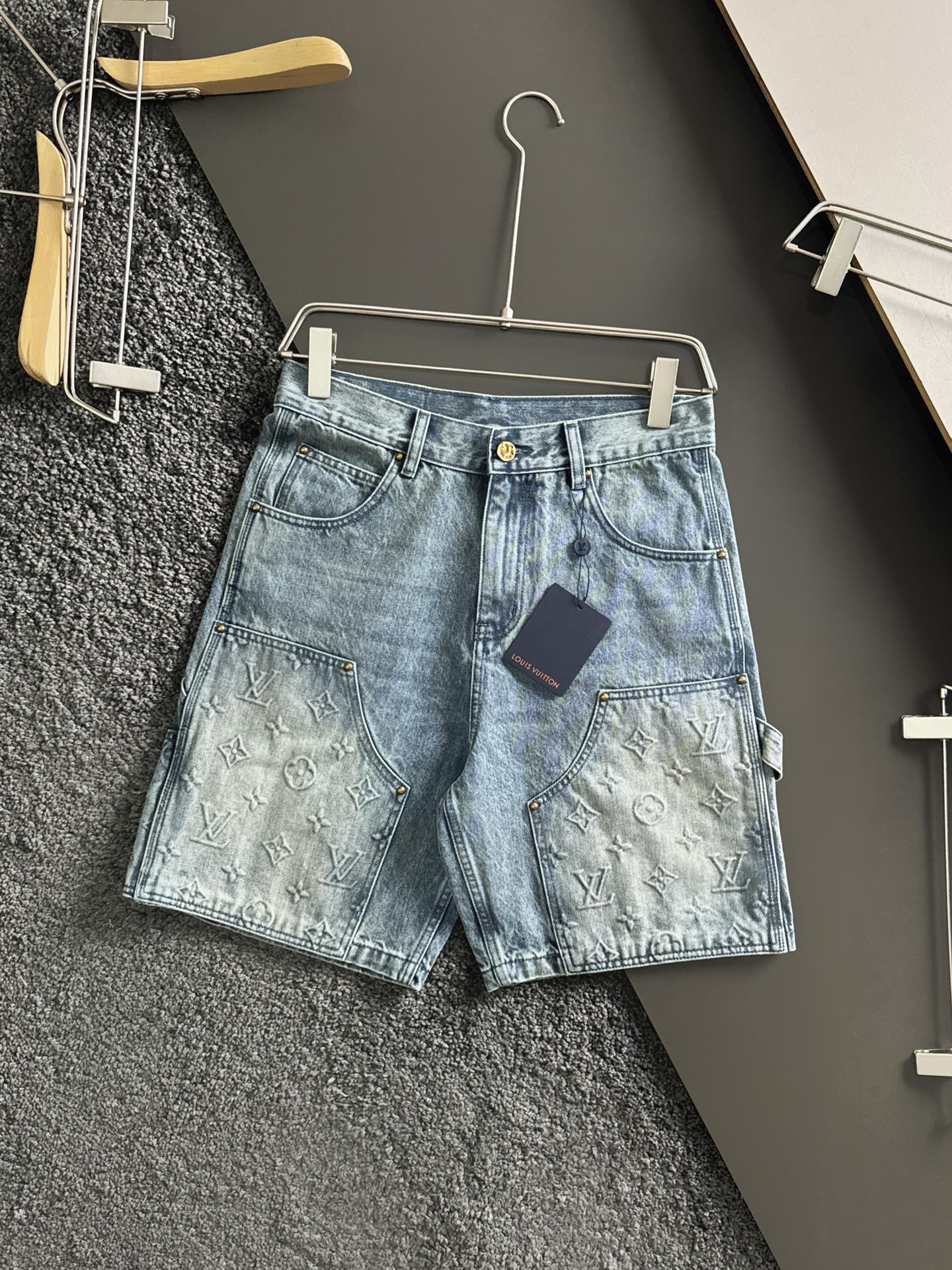 驴牌24独家专供夏季新款男士高品质压花牛仔短裤! 高端货,高版本 重工牛仔工装短裤,定位裁片拼接设计,轻微做旧洗水,经典Monogram元素点缀压花工艺,锤子固定环呈现L和V字形状,五金logo刻字十分工整有型,拉链美观又很顺滑,专柜品质十分经久耐用有质感!散发着自然的光泽度,高级且奢华,隔着屏幕都丝毫不减它的风采!搭配lvse皮牌标签,水洗单宁面料,营造宽松版型,直筒版型经典剪裁效果,休闲款式 质做工细节经得起任何形式检验,绝对大厂代工出品 呈现一种焕然一新,赋予你与众不同的上身体验!均经过严格的挑选工序,简约大方百搭款 上身优雅帅气,焕然一新的即视感!品相无敌,细节都很到位,上身不挑人,必入的自留款。三标齐!黑色 蓝色,尺码:30 32 34 36