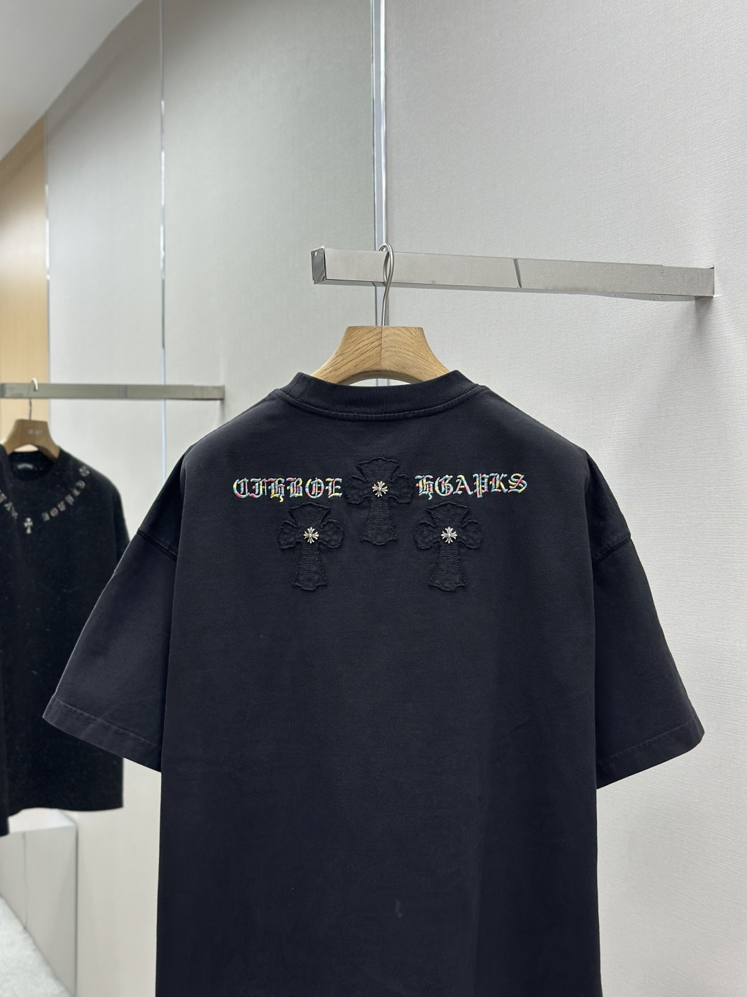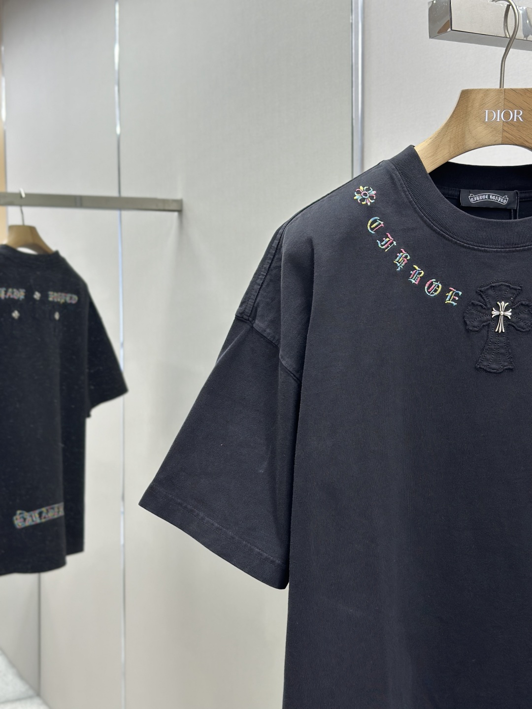 高版本克罗心Chrome Hearts 2025春夏新款短袖T恤,面料 26支双纱+重工碧纹染320克