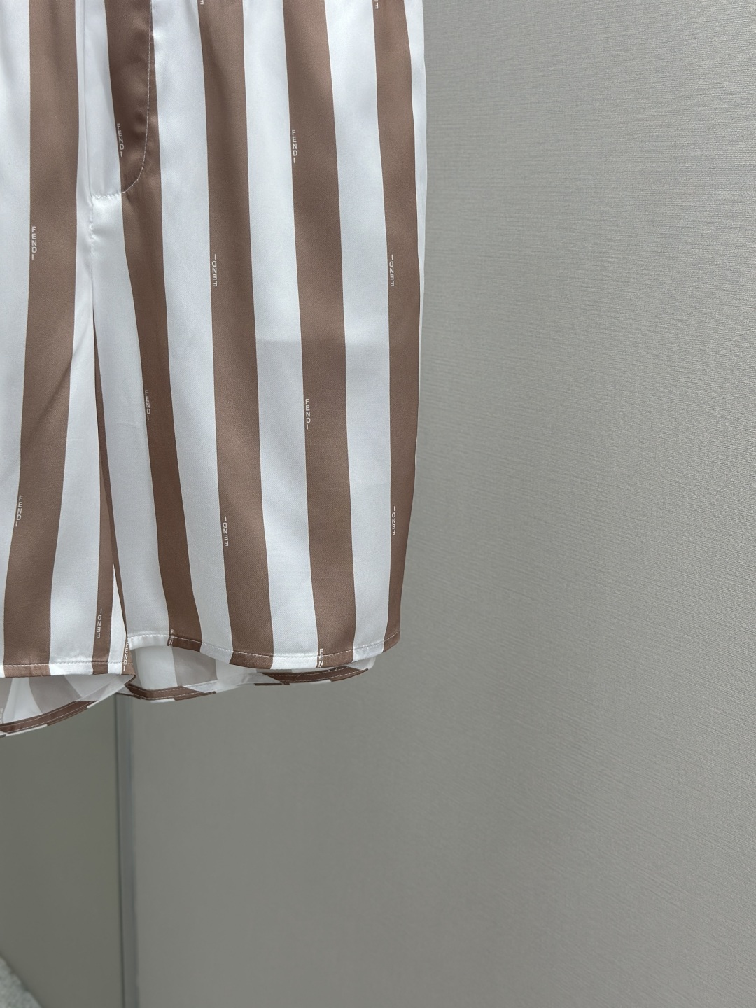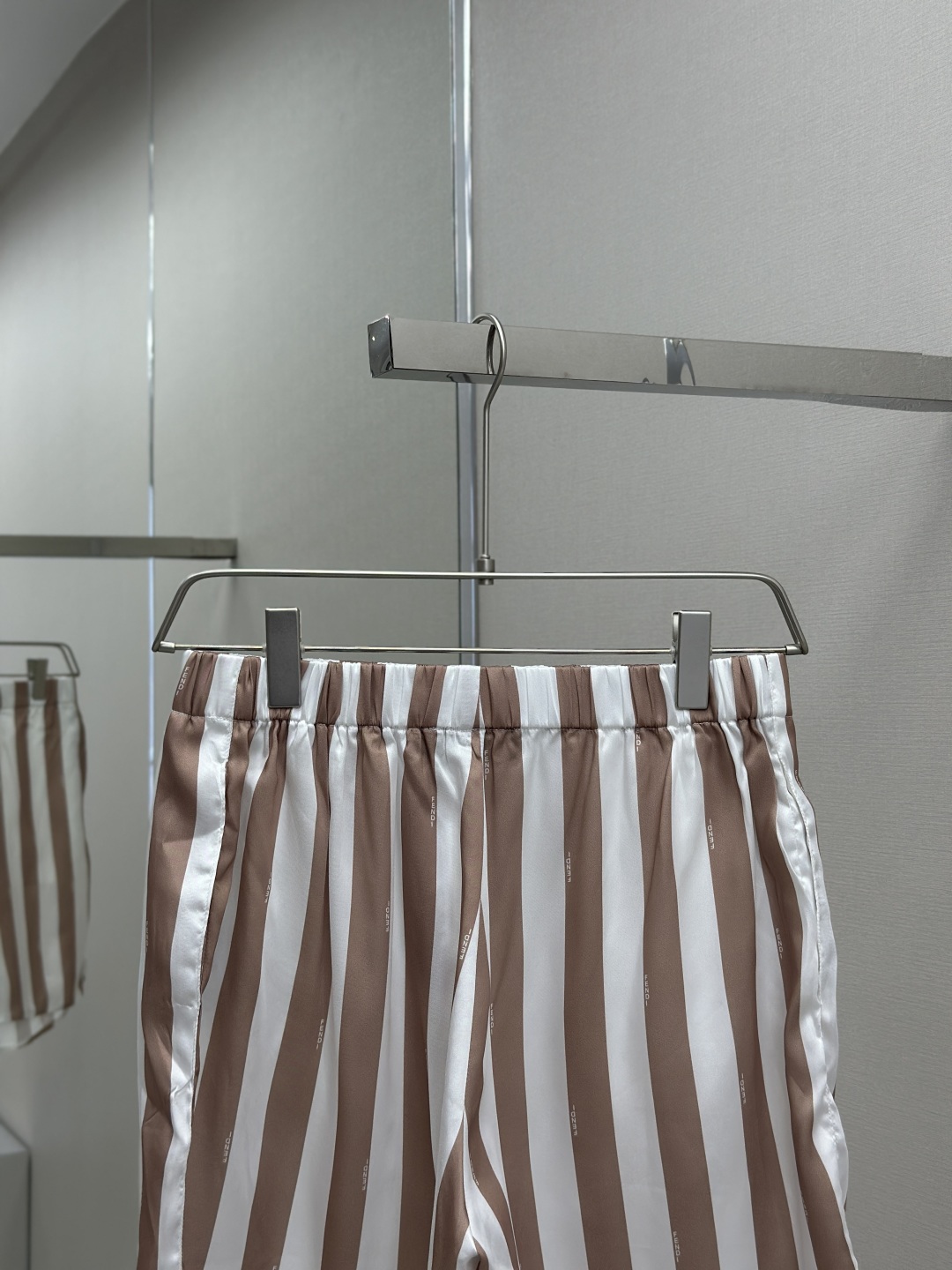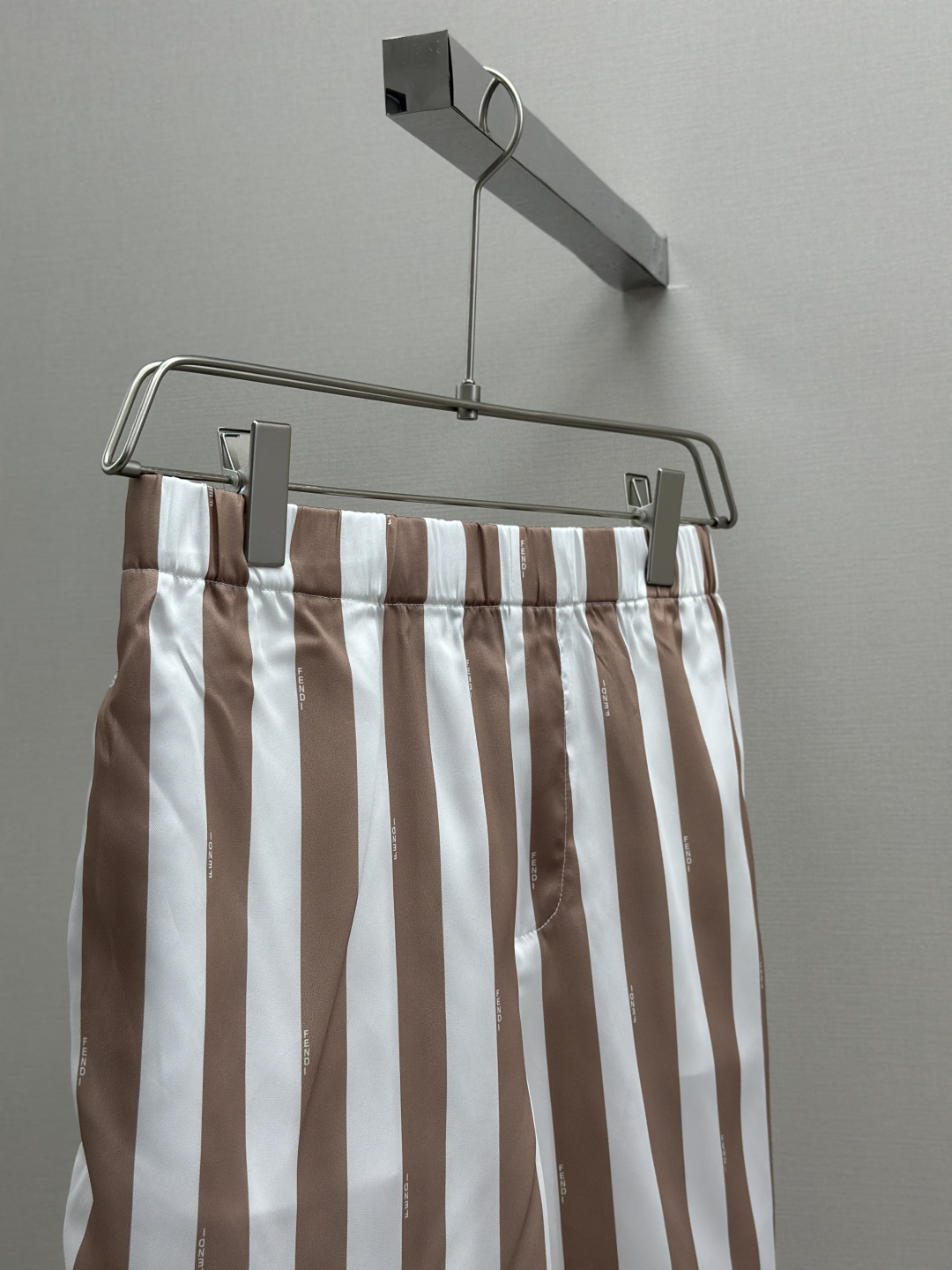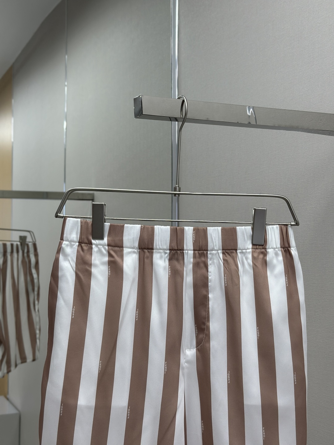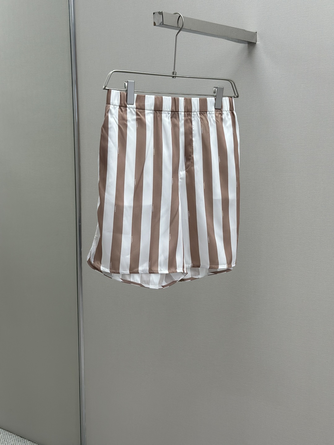 新品FD米色条纹Pequin百慕大短裤,腰部松紧设计,侧面口袋,标志性白色和米色,Pequin条纹图案,饰有圆形小侧开衩,面料:100%科技真丝,SIZE:S M L XL