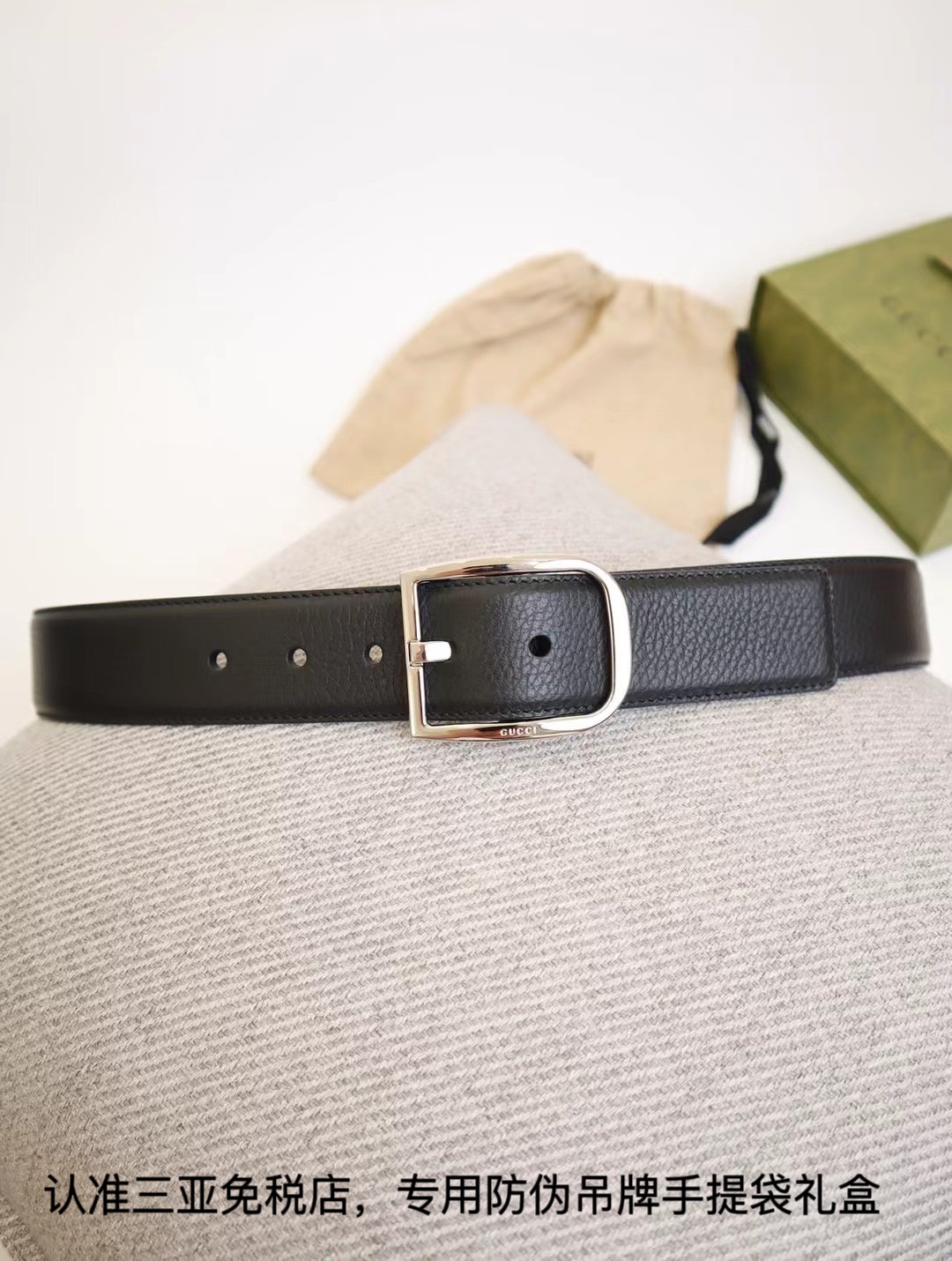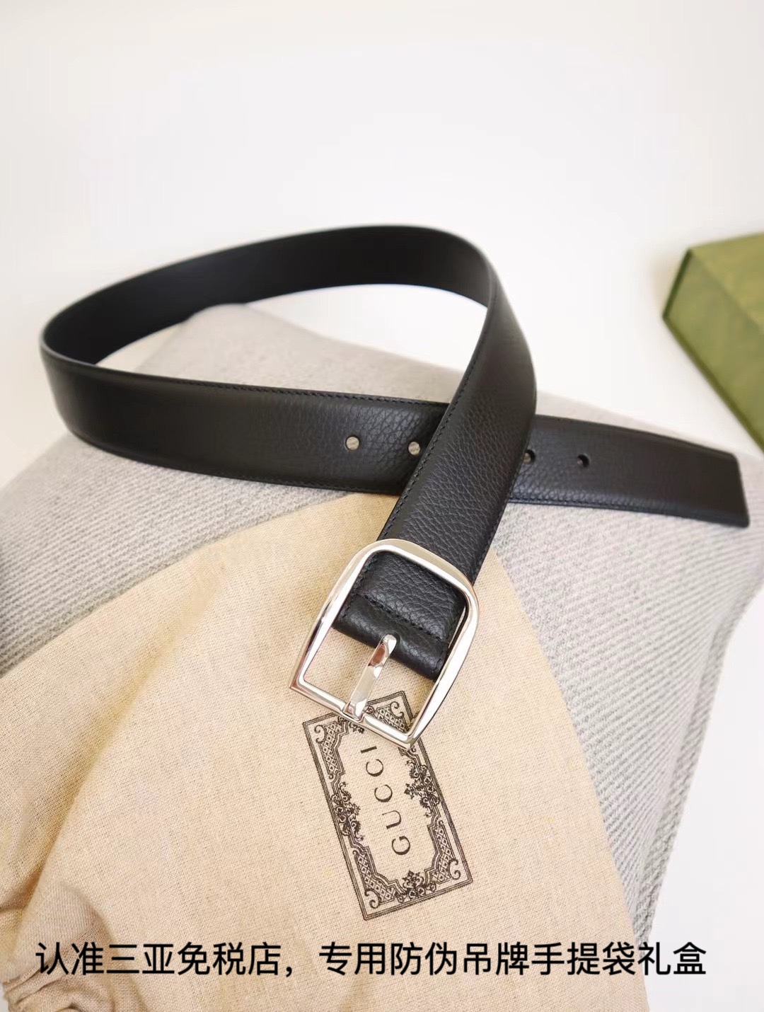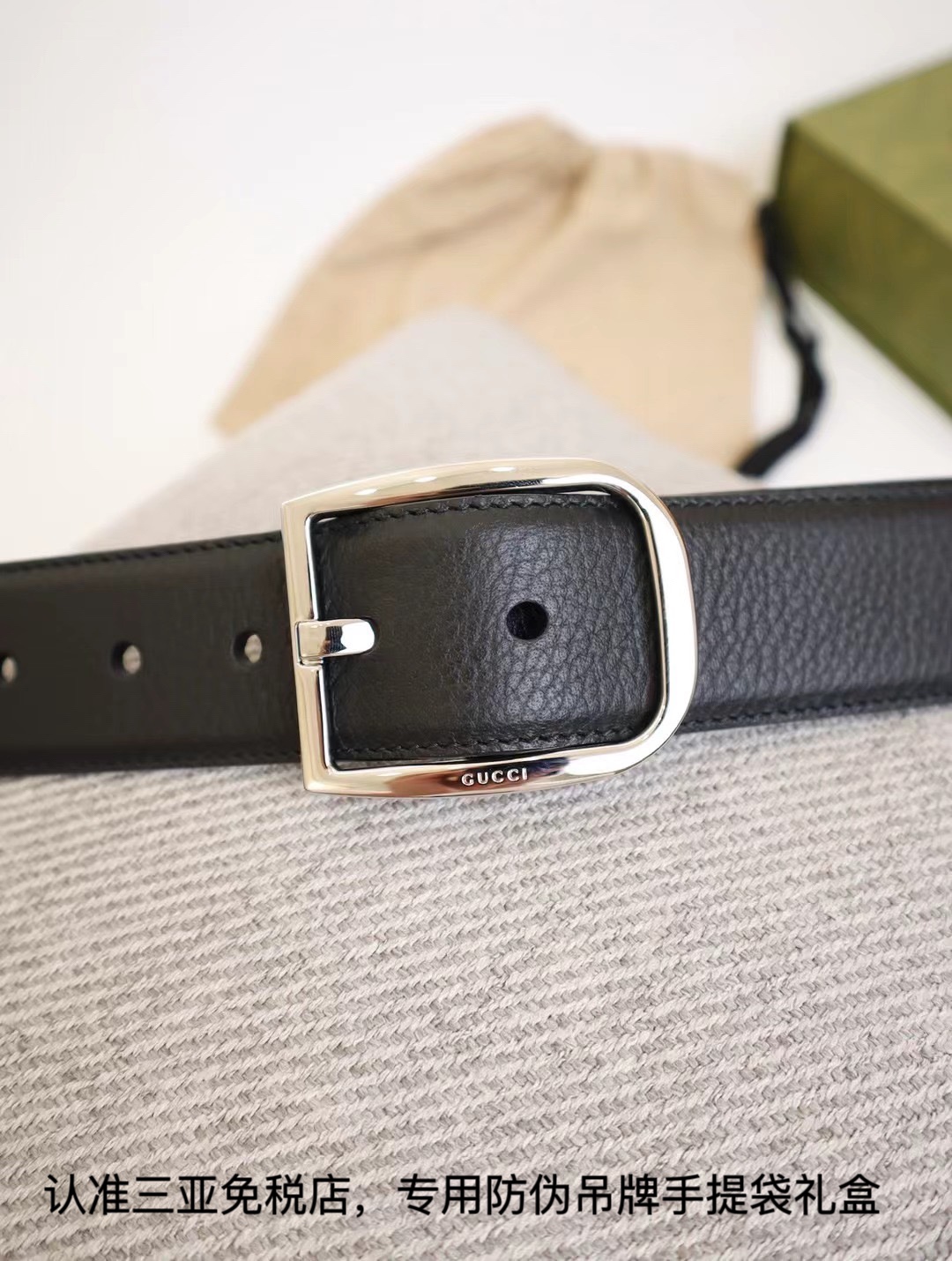 (发货实拍)三亚 免税正品级【专柜礼盒】古琦gucci进口皮制 正品在售,搭配精品五金扣.!男士爆款,如图品质认证三亚防伪吊牌全套礼盒: