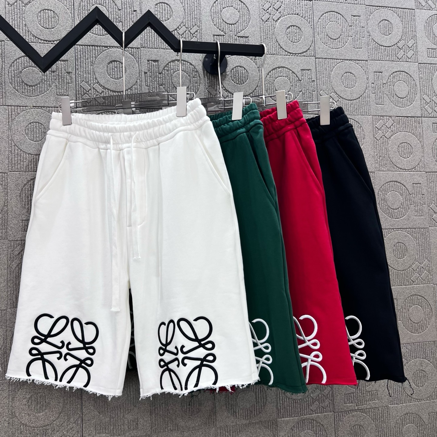 (隔天到) LOEWE 罗意威 经典LOGO刺绣 2025SS新款针织短裤,定制面料采用威化布织法,超高端针织工艺,版型紧致立体,定制裤绳五金质感强,顺滑,上身舒适透气,时尚休闲穿搭 颜色: 黑色 白色 红色 绿色 码数: S-XL