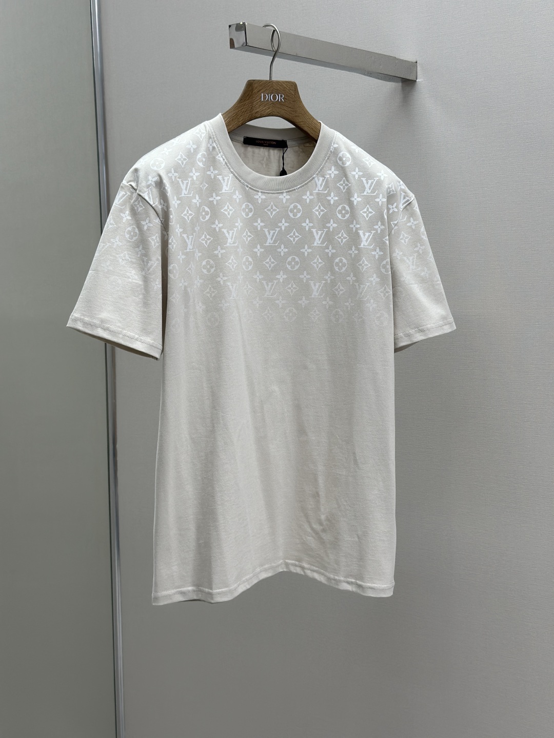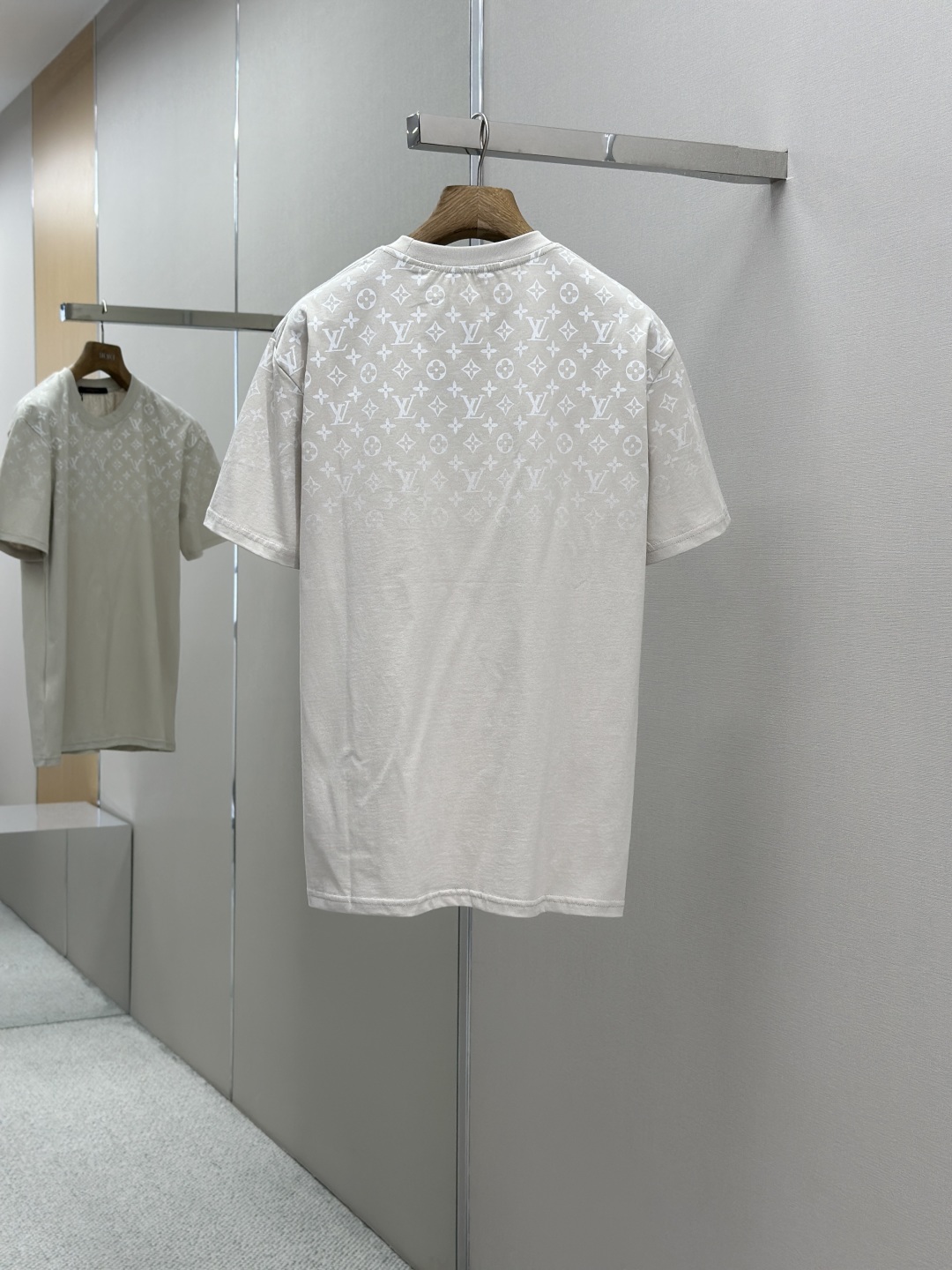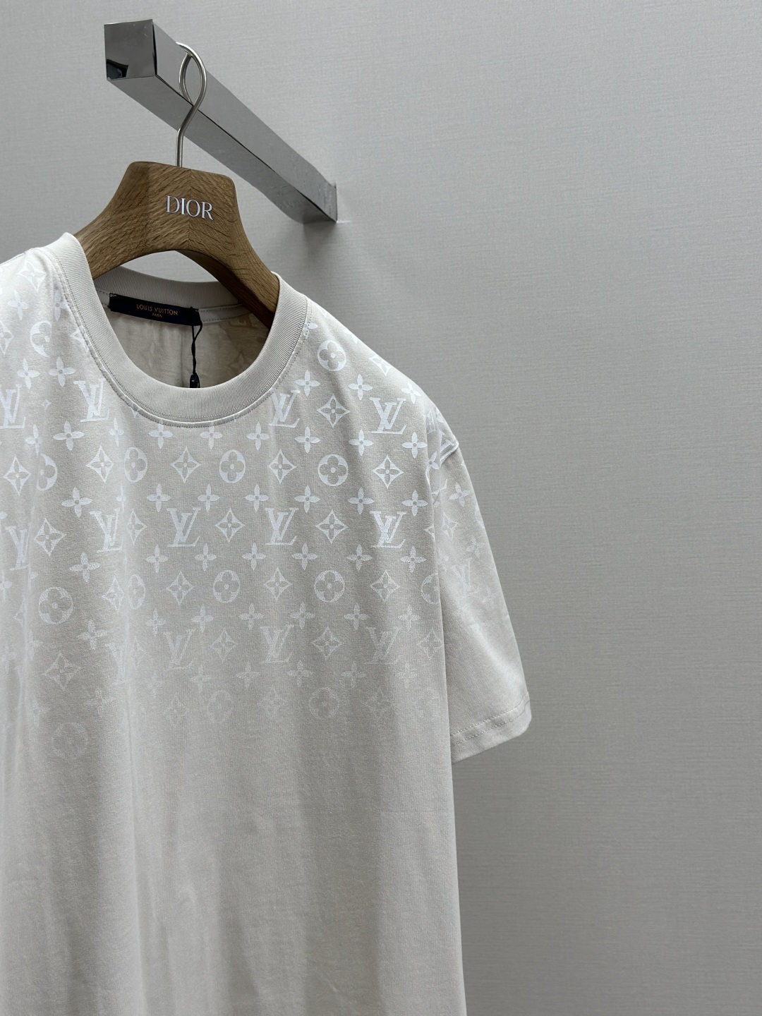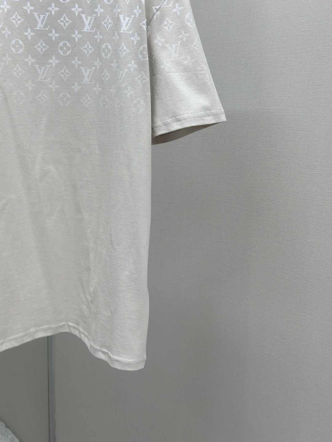 1V、渐变提花短袖T恤,25新品,本款 T 恤取材轻盈棉质针织,展现渐变 Monogram 图案从肩部向下消散之景,为休闲造型注入品牌巧思。标准版型,Monogram 渐变印花,罗纹衣领