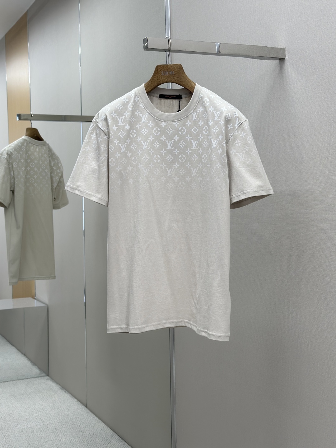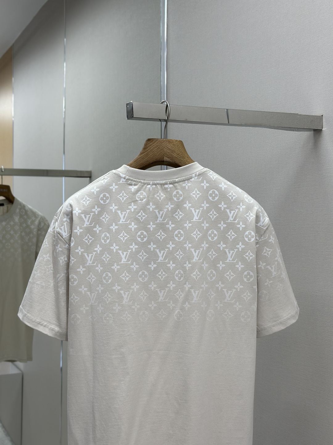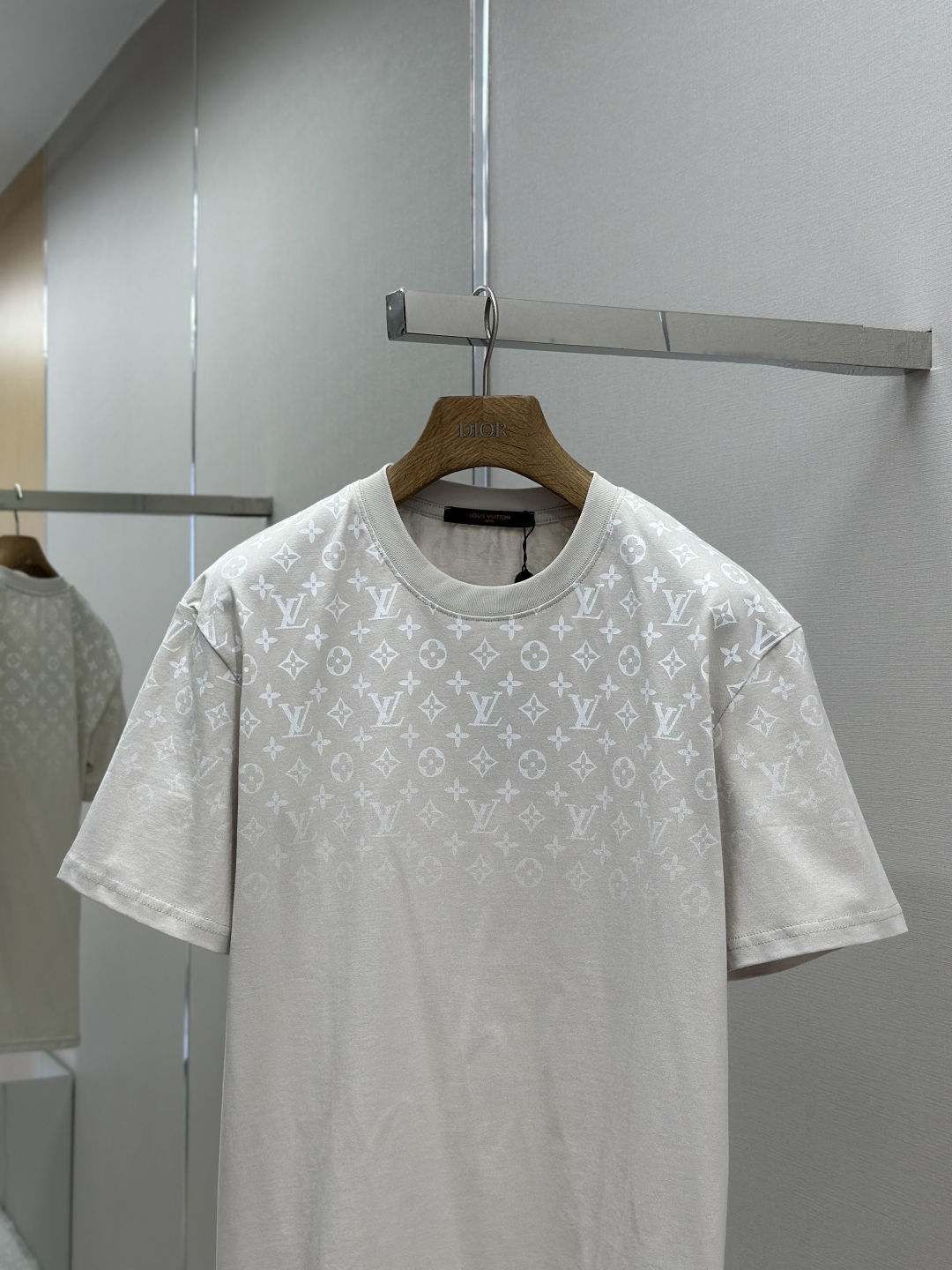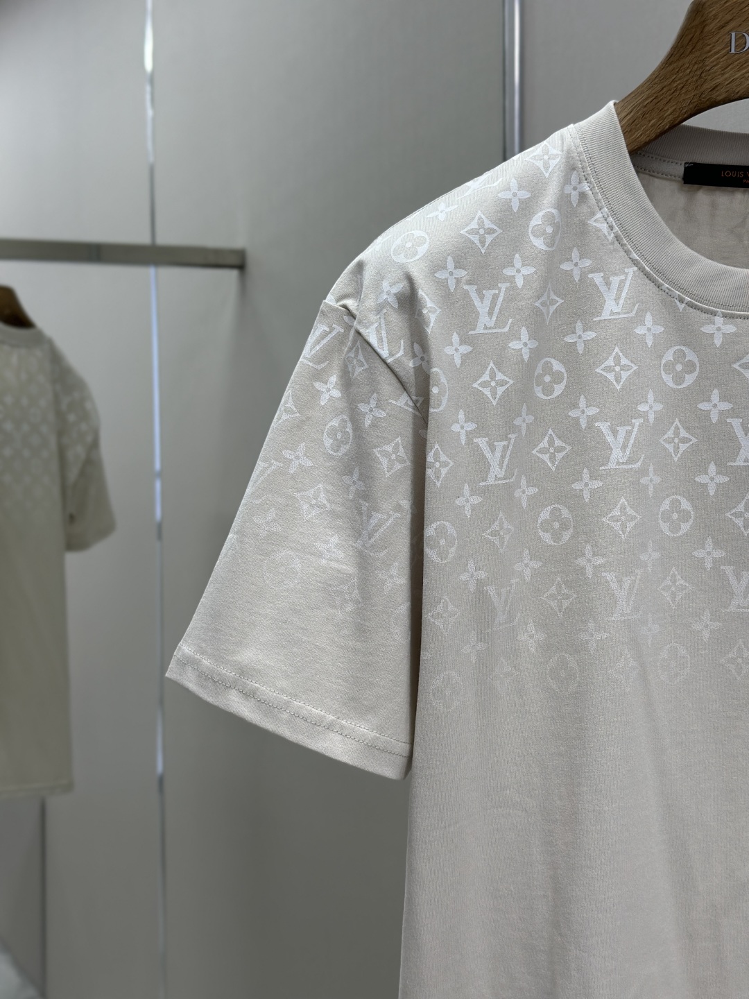 1V、渐变提花短袖T恤,25新品,本款 T 恤取材轻盈棉质针织,展现渐变 Monogram 图案从肩部向下消散之景,为休闲造型注入品牌巧思。标准版型,Monogram 渐变印花,罗纹衣领