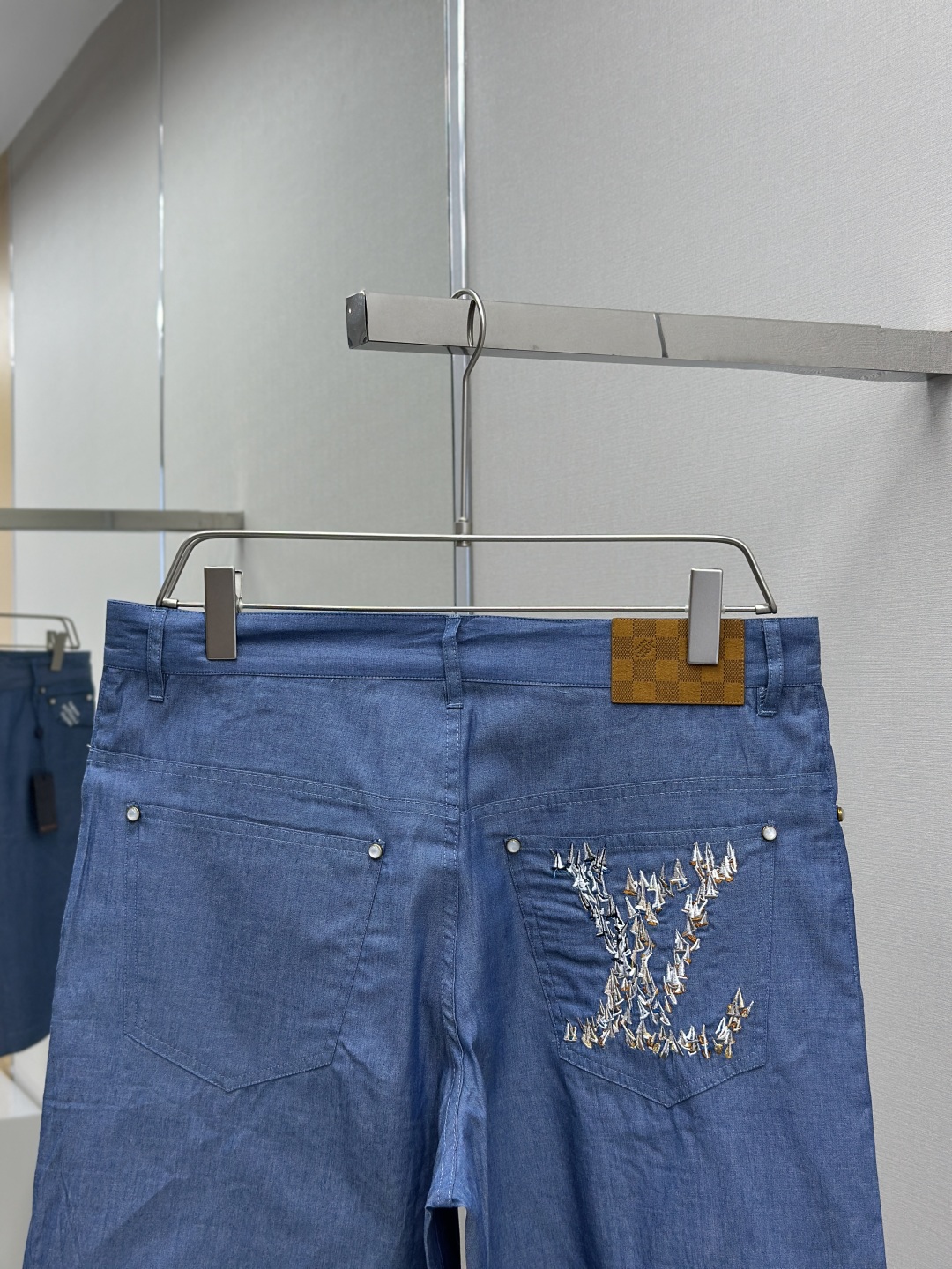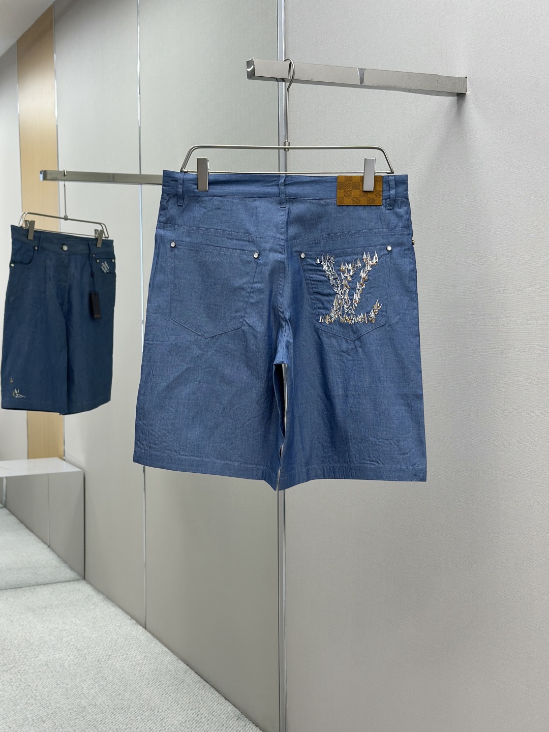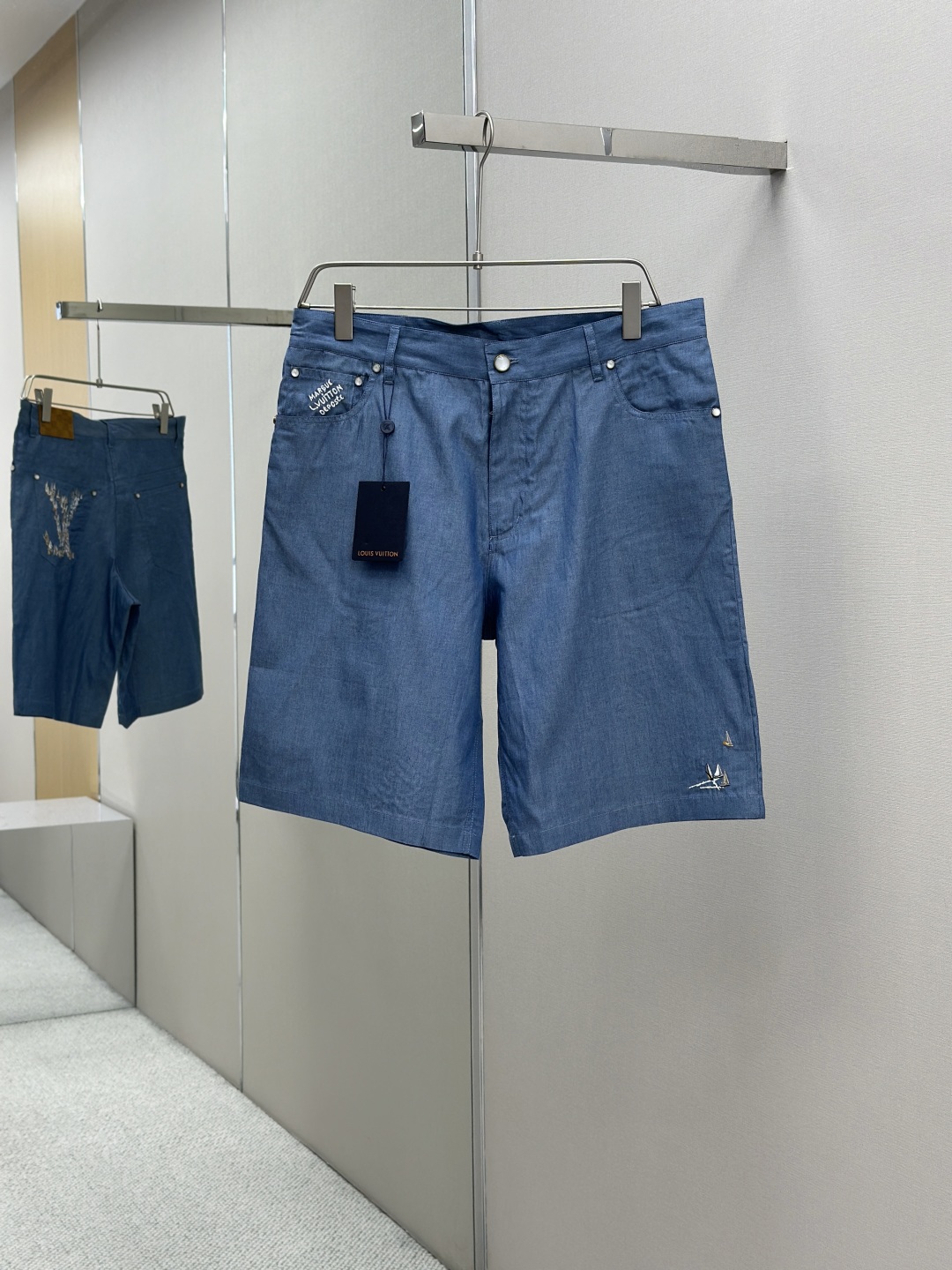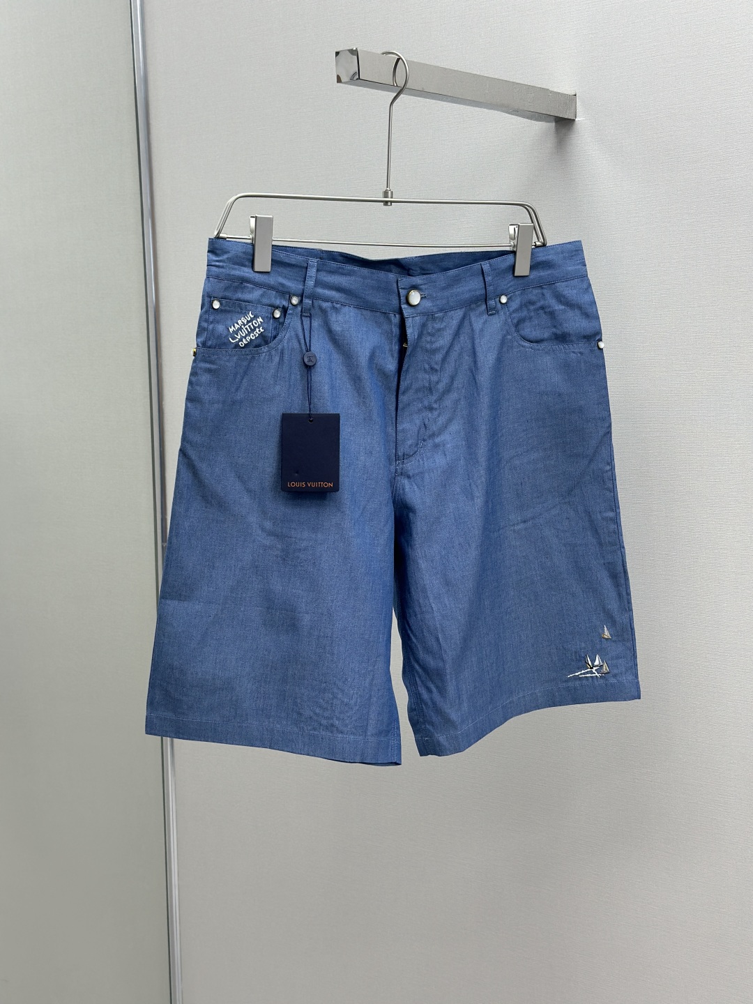 1V*/路易 25Ss新款经典五口袋刺绣帆船牛仔布短裤