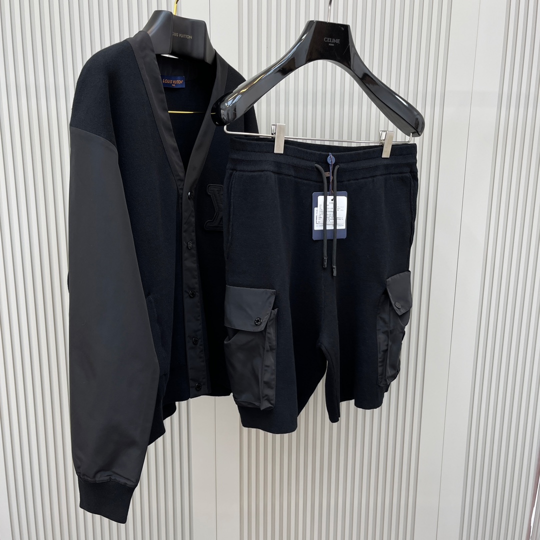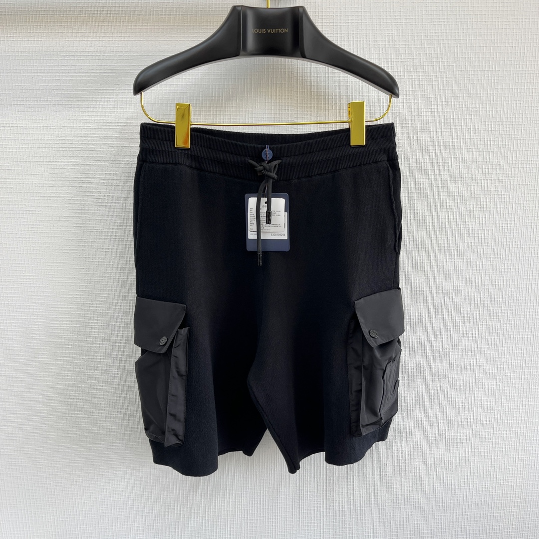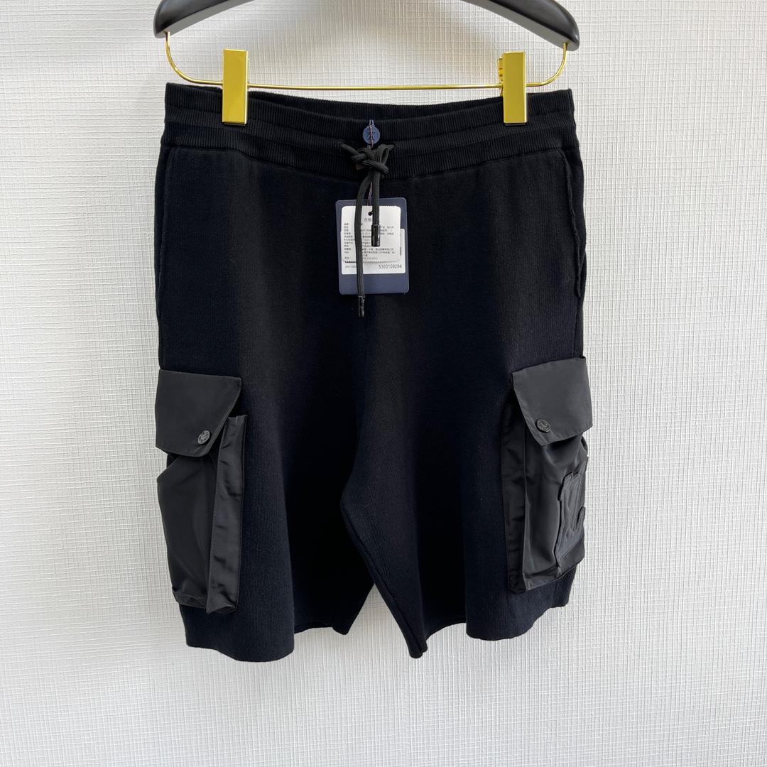1v 立体章仔工装针织短裤 成衣由毛织与梭织相结合的设计 制作过程复杂 衣身主体前后采用细针莱卡织片 袖子及V领包边采用高支高密梭织面料 表面光滑有质感 口袋位采用高支高密梭织面料 表面光滑有质感不但有透气性和舒适性 细密棉质针织结合科技锦纶工装口袋 压纹章仔贴饰 图案的某部分有凸出的立体面 形成了饱满浮突有起伏效果size:s/m/l/xl