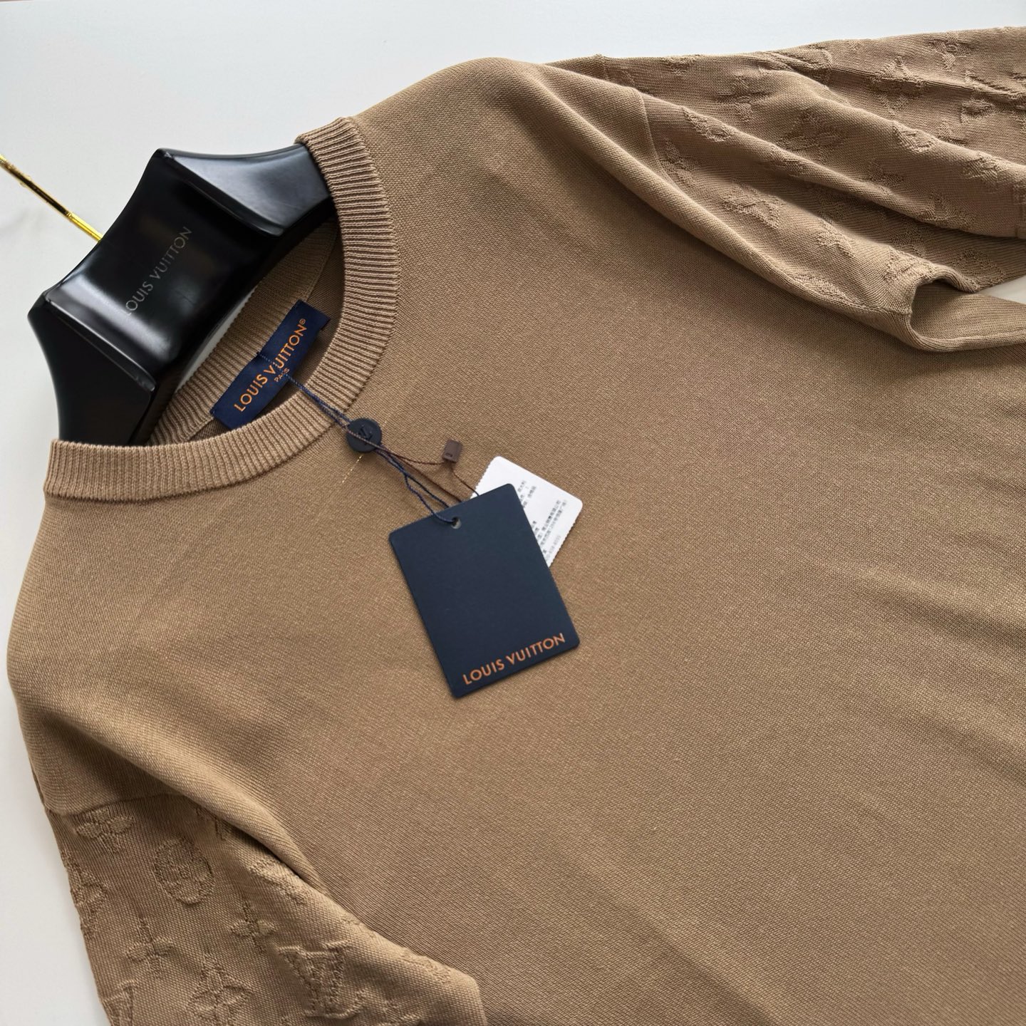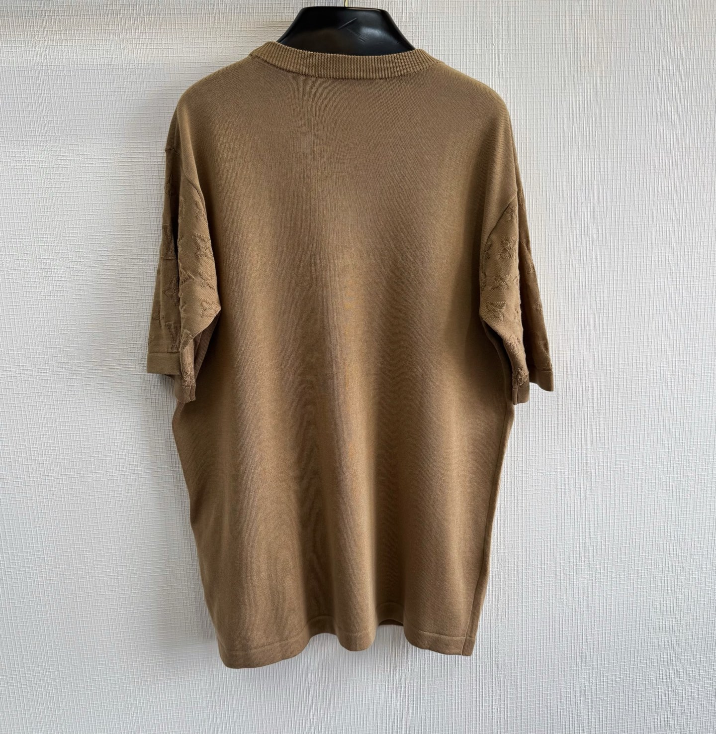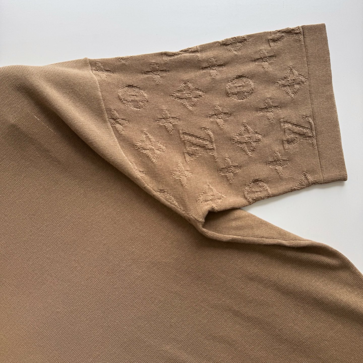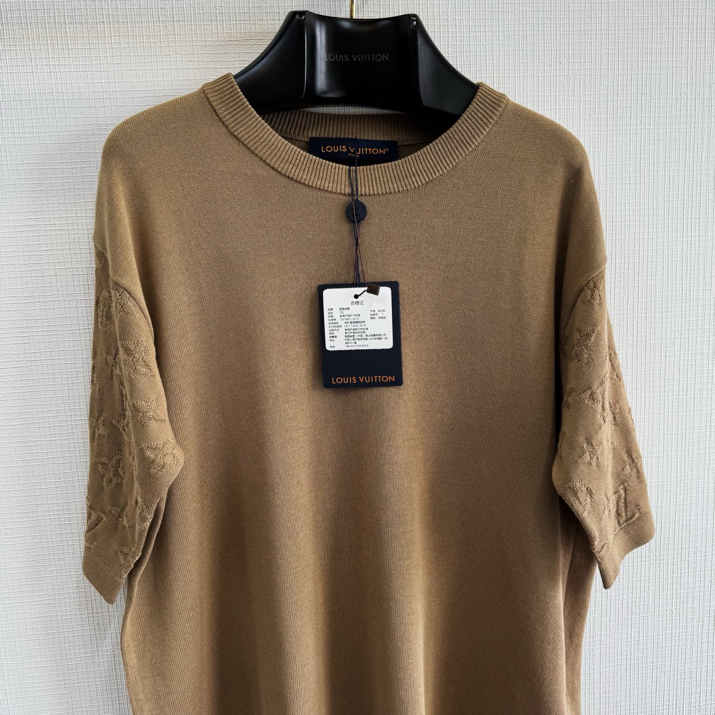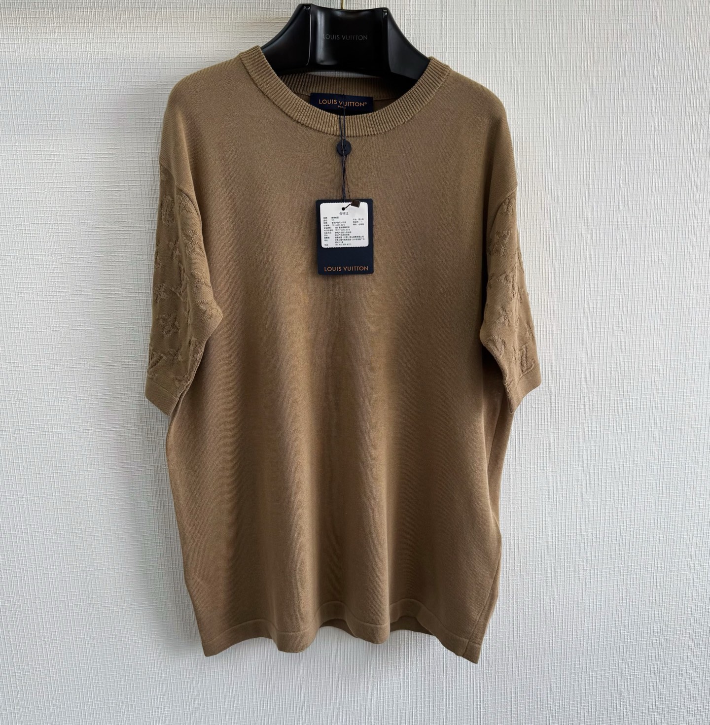 1v 2件ss新色 袖子Monogram提花嵌花针织短袖 精梳棉质圆领上衣参照原版进行1:1颜色打色 色最终效果高达98%以上 100%全精梳棉纱 编织条拼接设计 整件衣服组织看似简单 衣服两侧锯齿位置采用挂毛嵌花方式 比平常T字型短袖多了2倍时间 才可做到原版效果 衣服人工手数花型 1针1线的画制花型出来效果100% size:s/m/l/xl