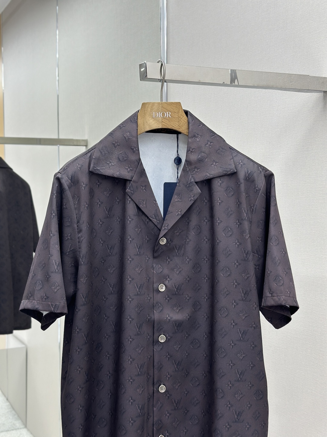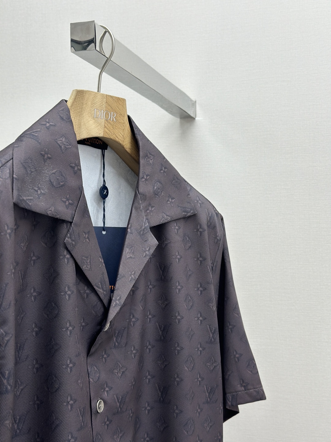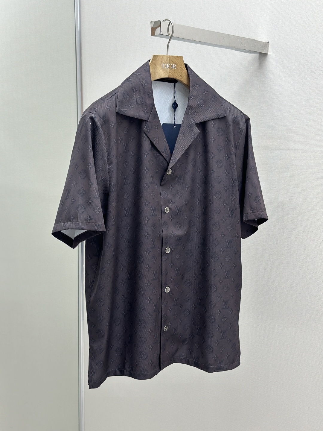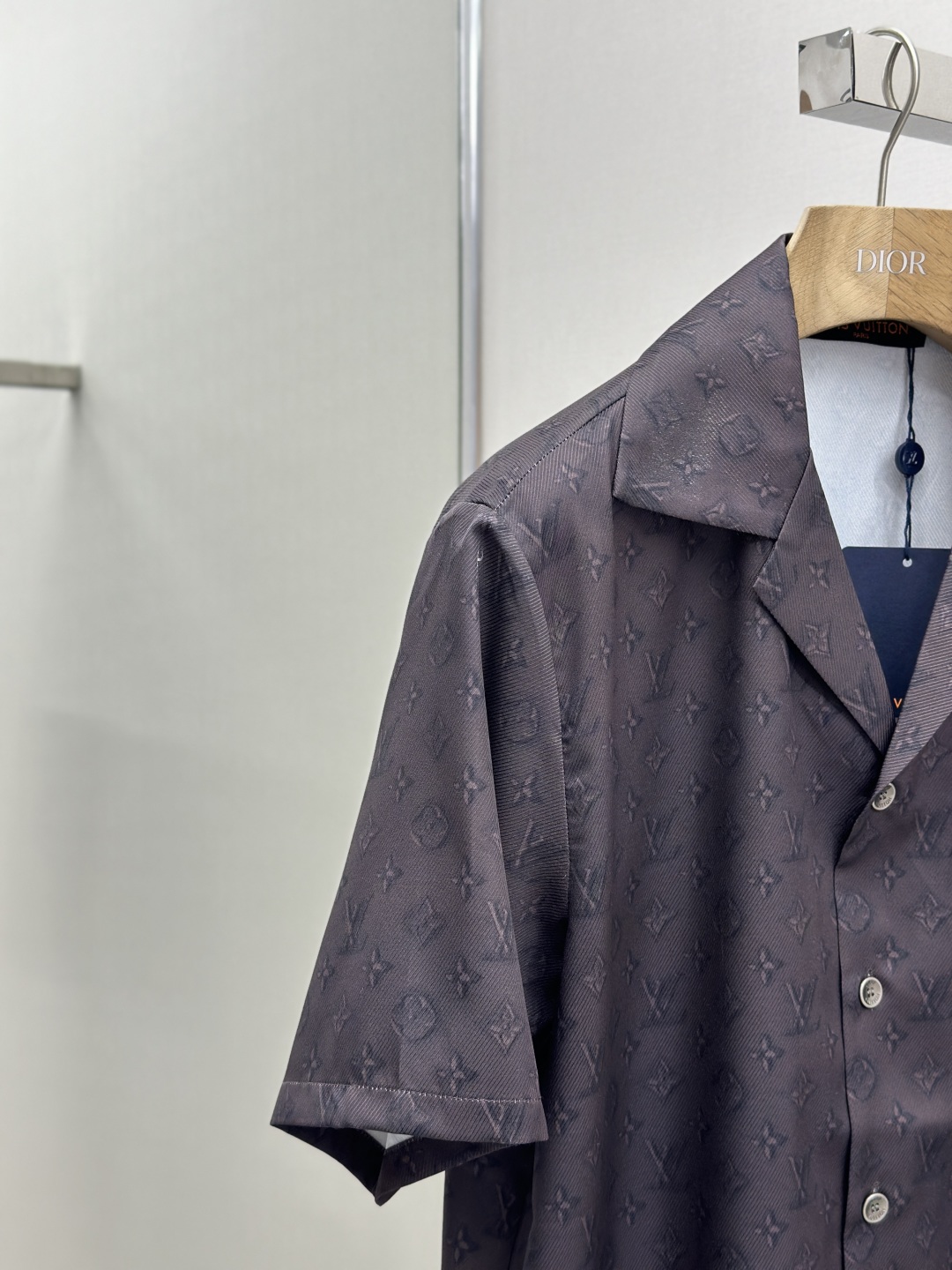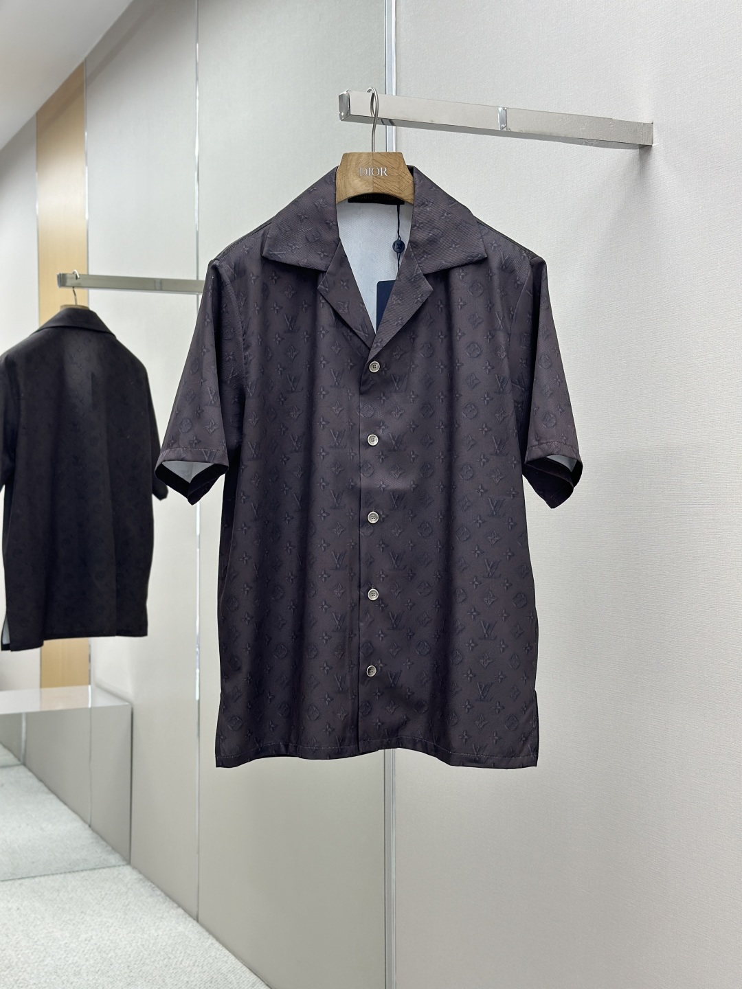 1V 2025春夏新品短袖衬衫 100% 桑蚕丝 珠光纽扣前襟 全幅标识印花,前中对位复花,做工精细,三标齐全,1:1还原正品, 码数:46-48-50-52