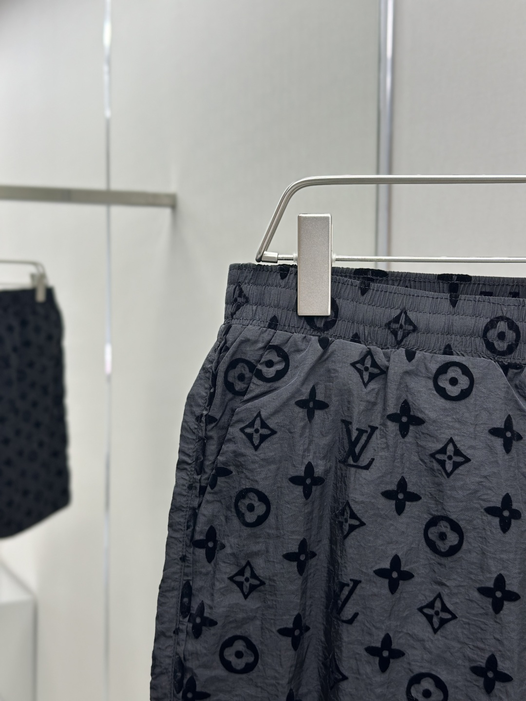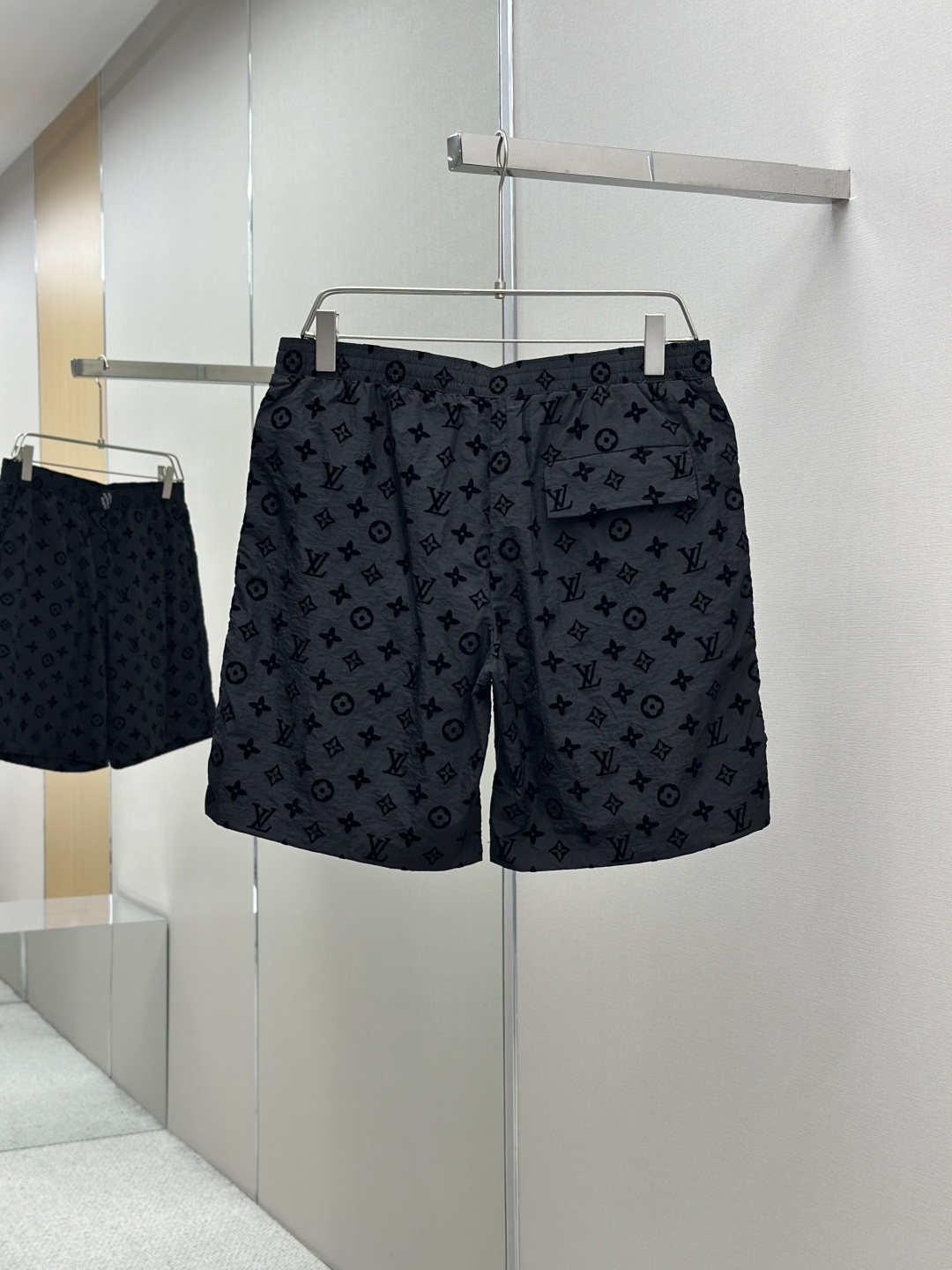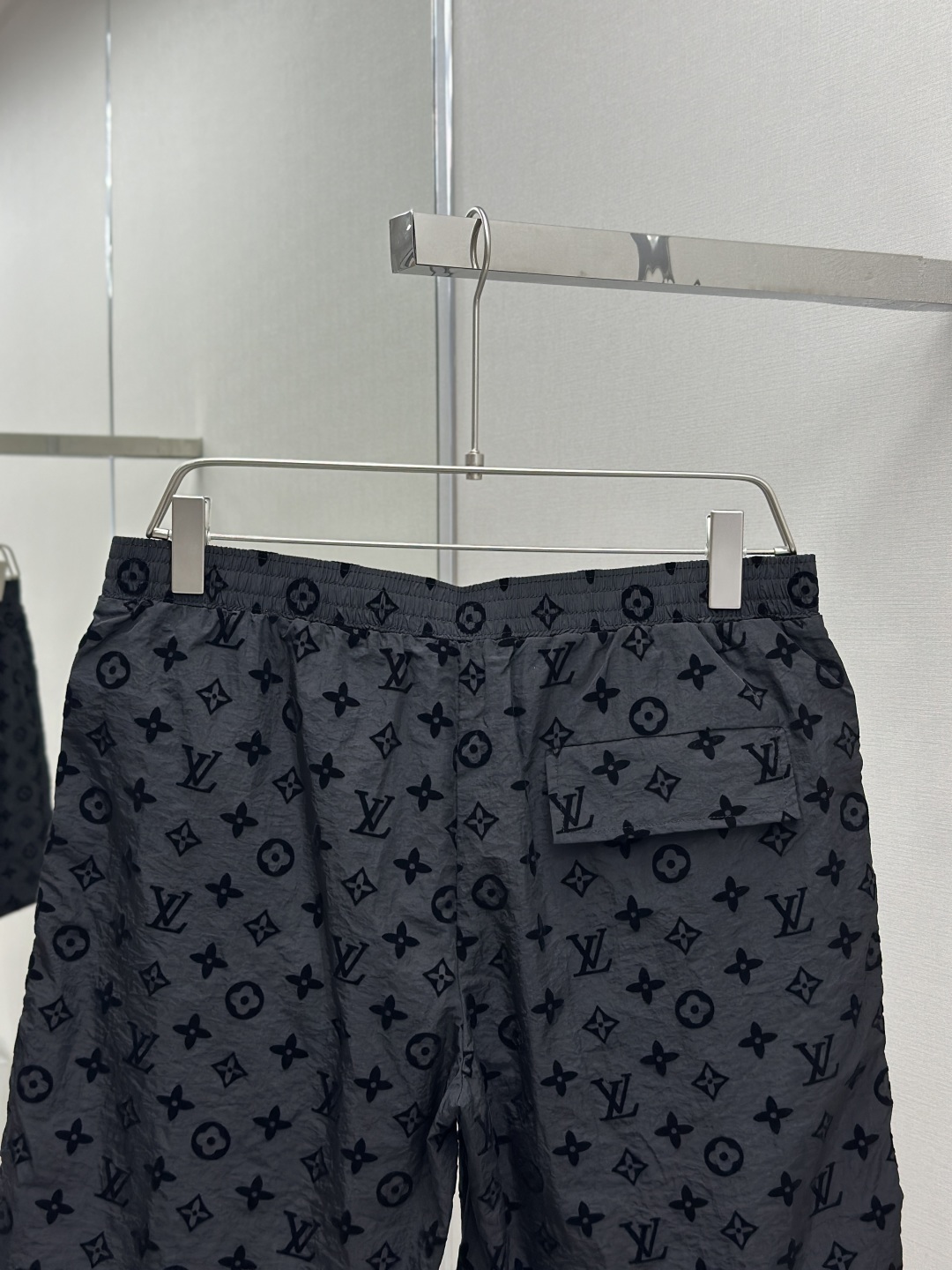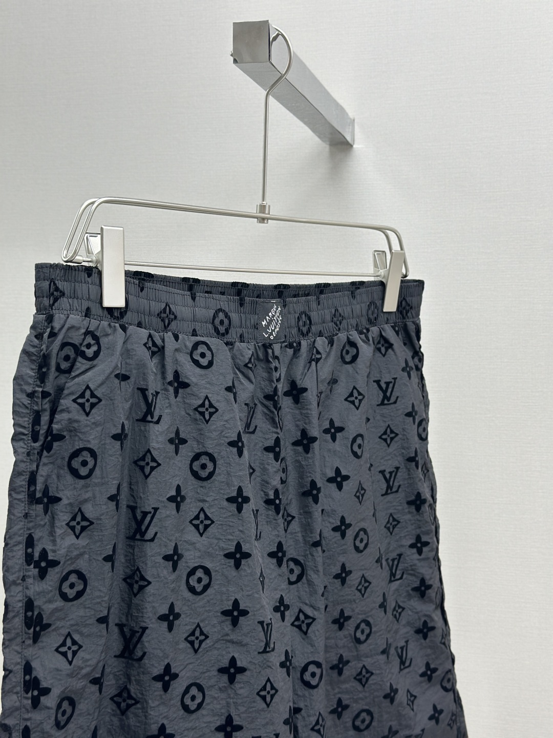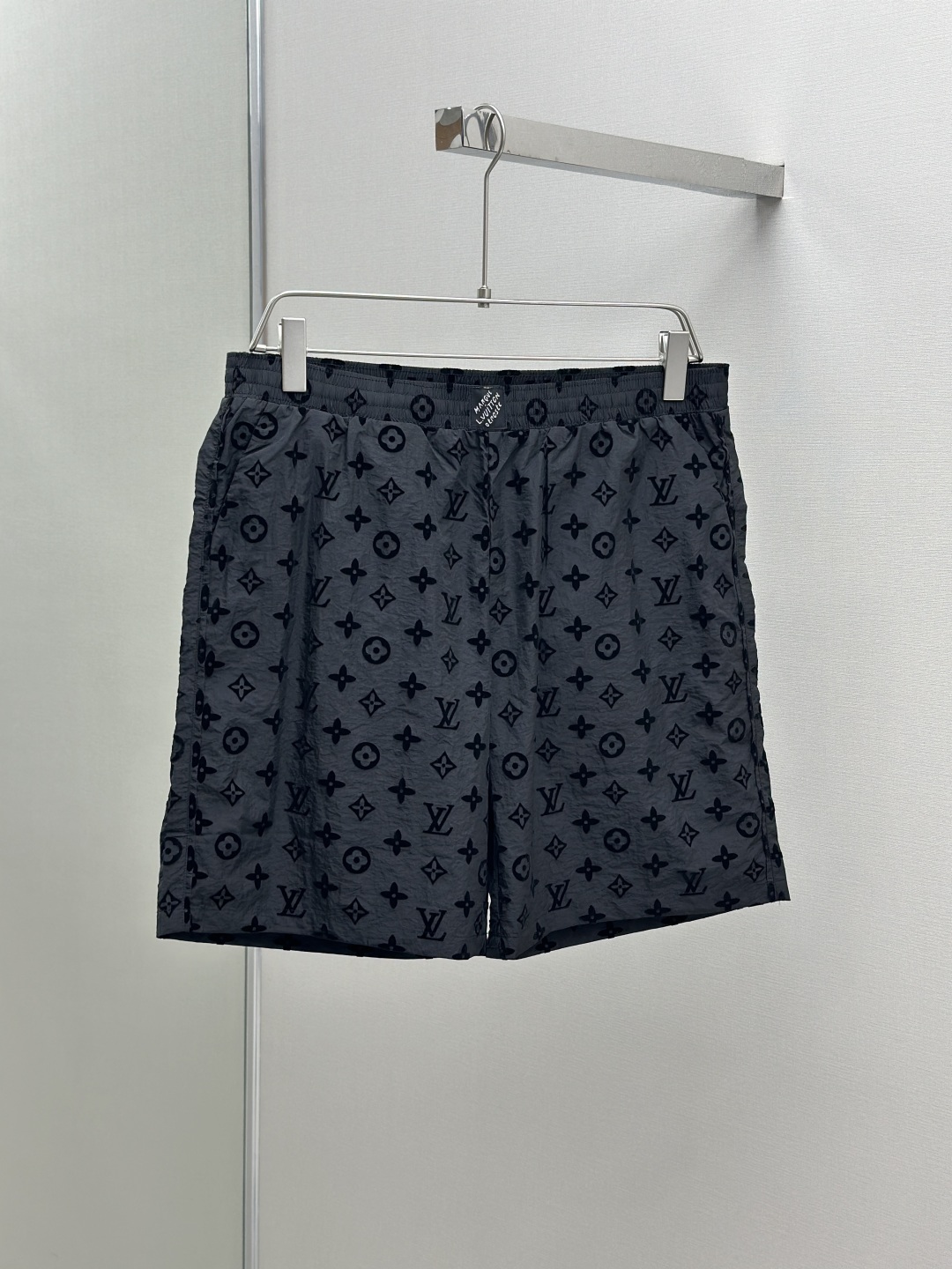 1V 25ss新款桑蚕丝短裤以 Monogram 提花呈现莹亮波纹质感,再为两侧裤腿点缀针织饰带,可与同款短袖马球衫共筑日夜皆宜的学院风造型。Marque L.Vuitton Deposée 标签栖身弹力腰部。 码数:S.M.L.XL