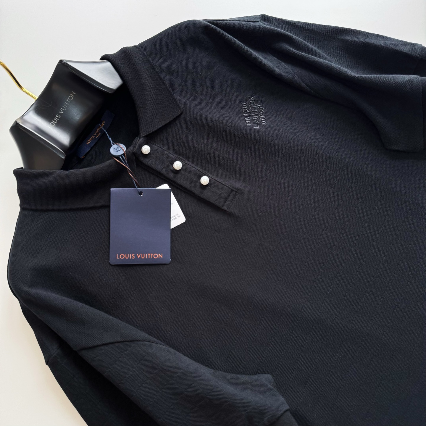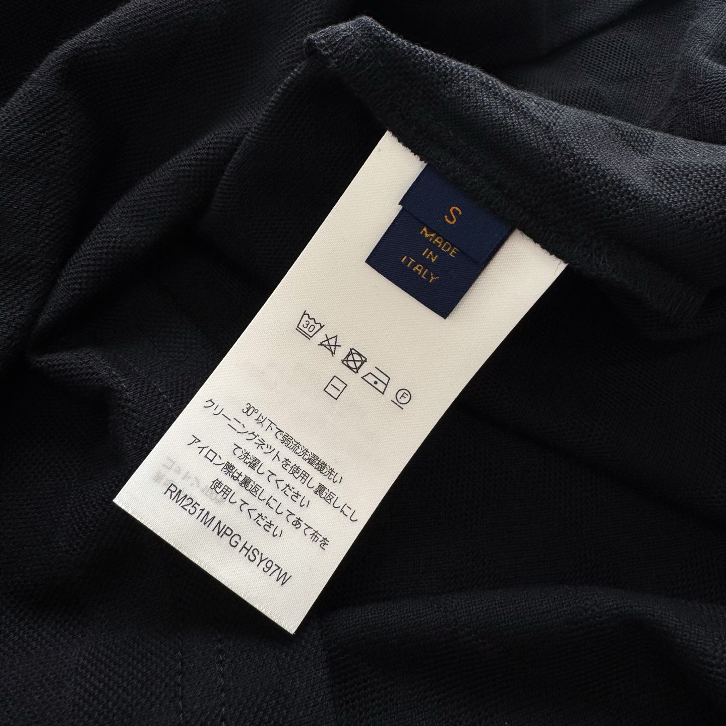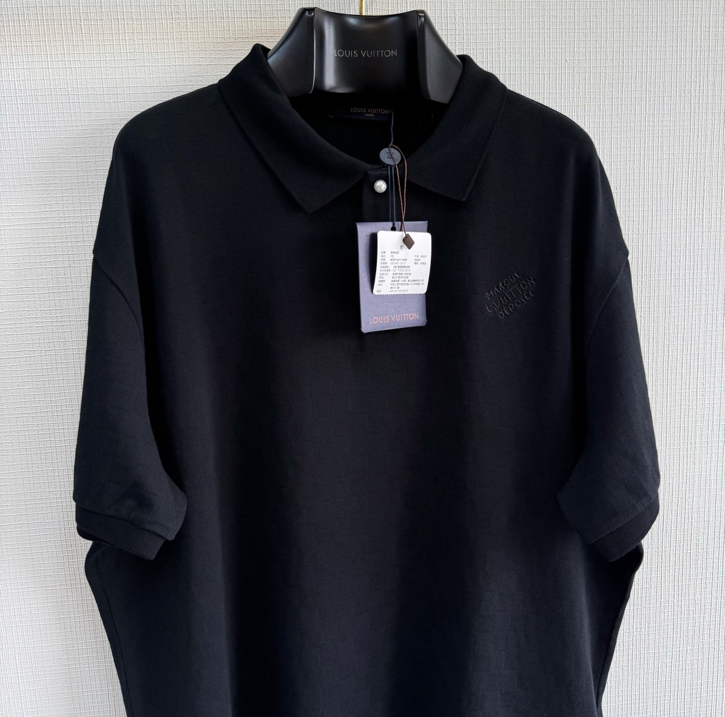 1v 25ss新色 Damier 提花Polo衫 80s双股全提花定织面料,纱线采用环锭纺丝光烧毛棉 两根双股纱线并织,18针单面提花机织造胚布,打版放匹样测试花型缩率,确保大货洗水定型后花型完全对版,前幅采用日本进口田岛绣花机刺绣,棉质绣花线平绣堆线绣法,字母立体饱满,全件定位对花缝纫工艺,对花剪裁,成衣棋盘格呈现整齐排序,size:xs/s/m/l