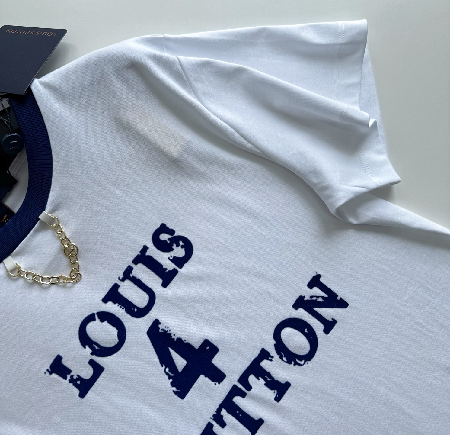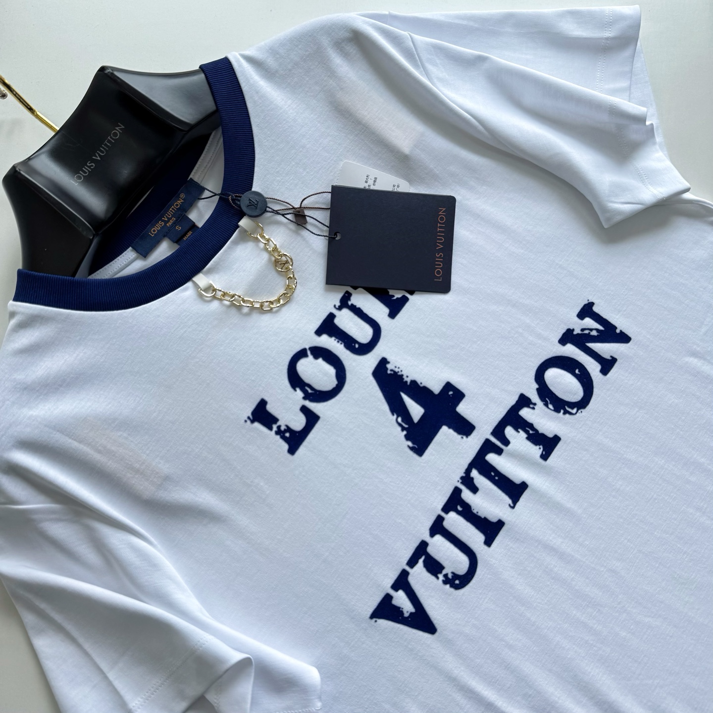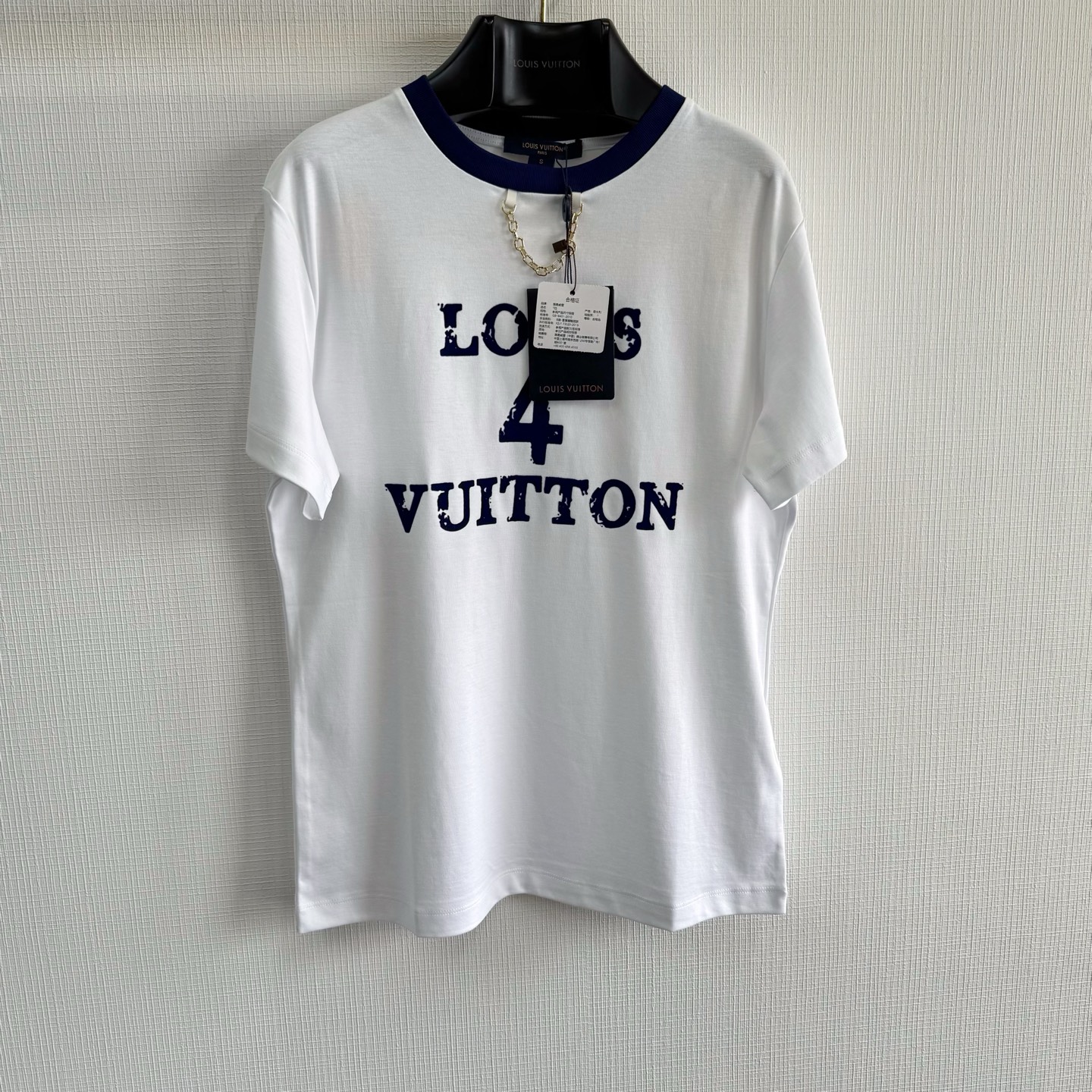 1v 25ss 植绒印花短袖 180g 50S双股丝光平纹单面布,字母图案选用转移植绒工艺,以热转印技术加持牢固粘合剂成型印花图案,同时植绒印花的成分采用尼龙材质, 定制五金链size:s/m/l