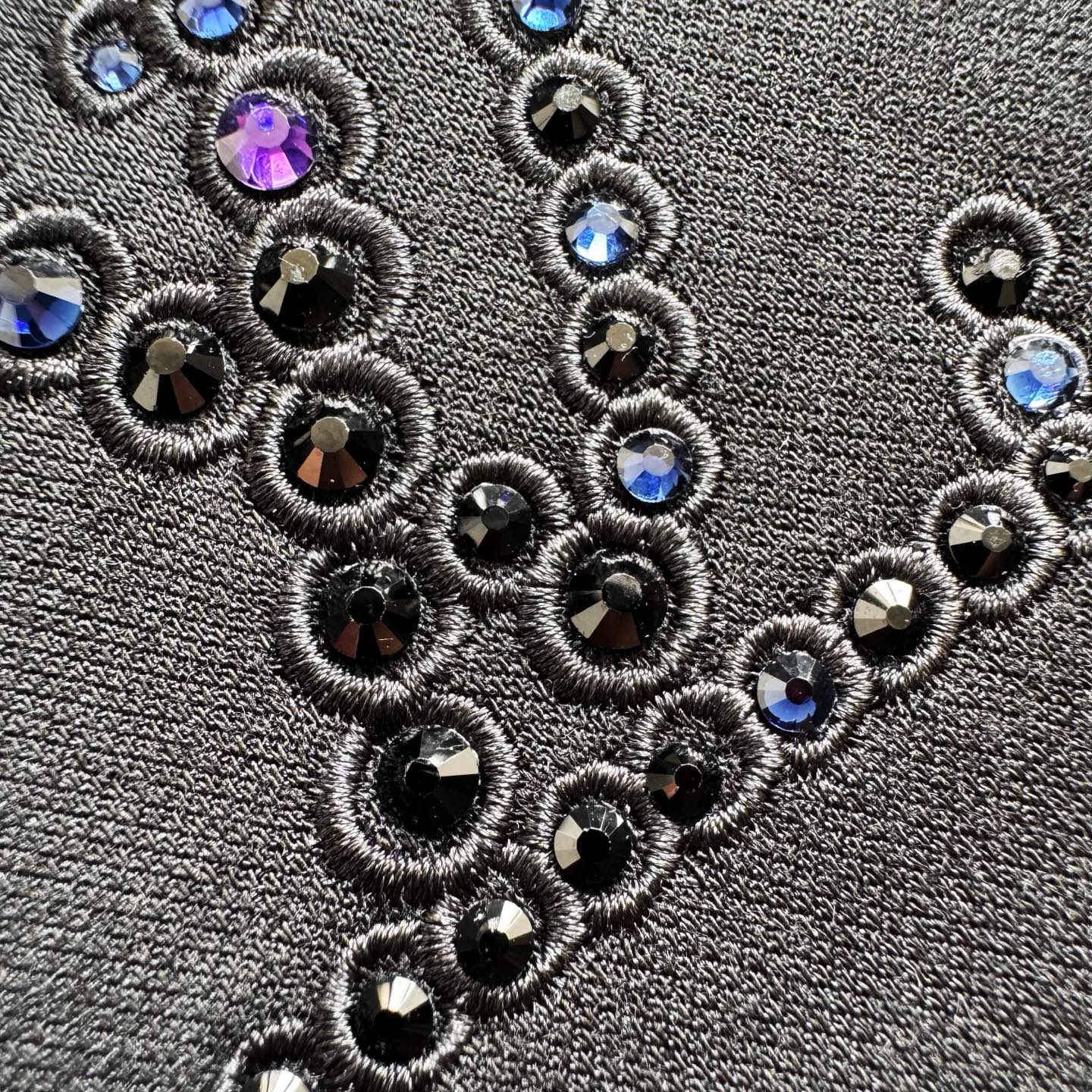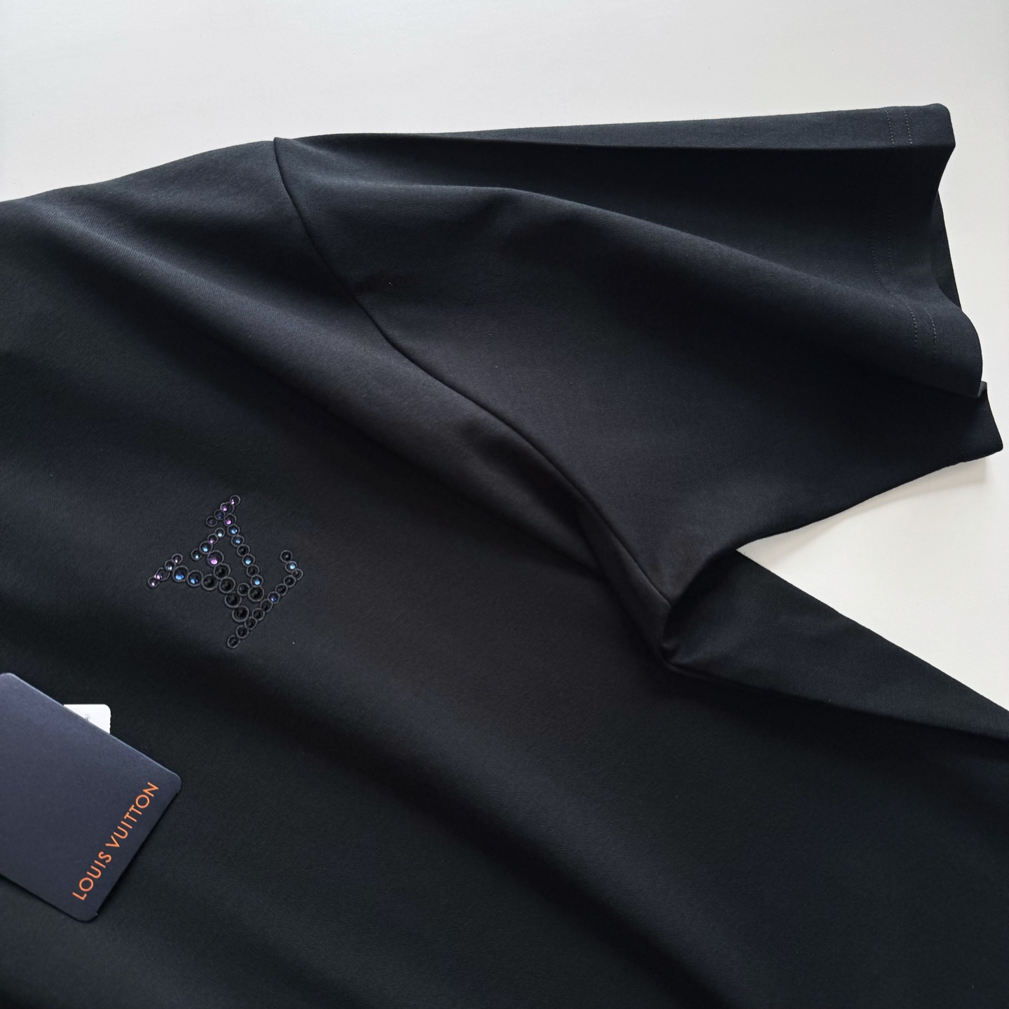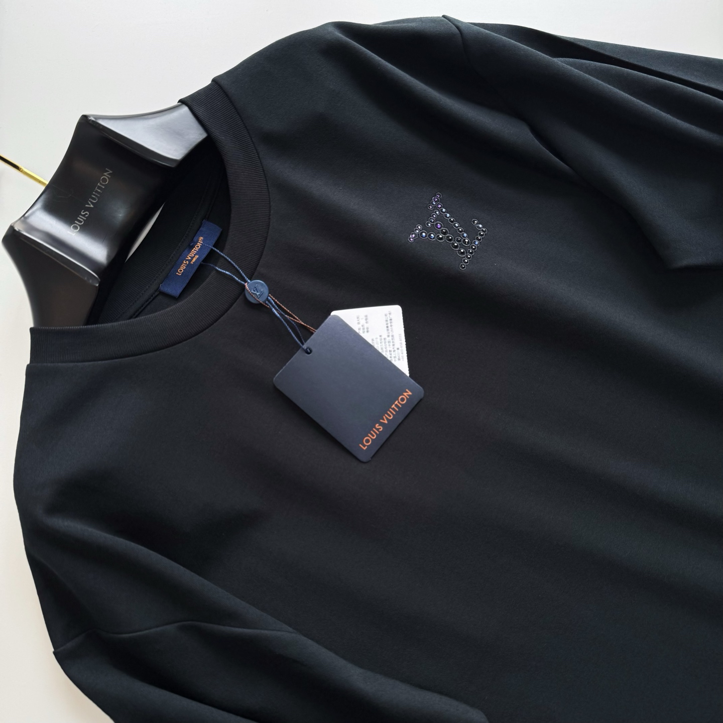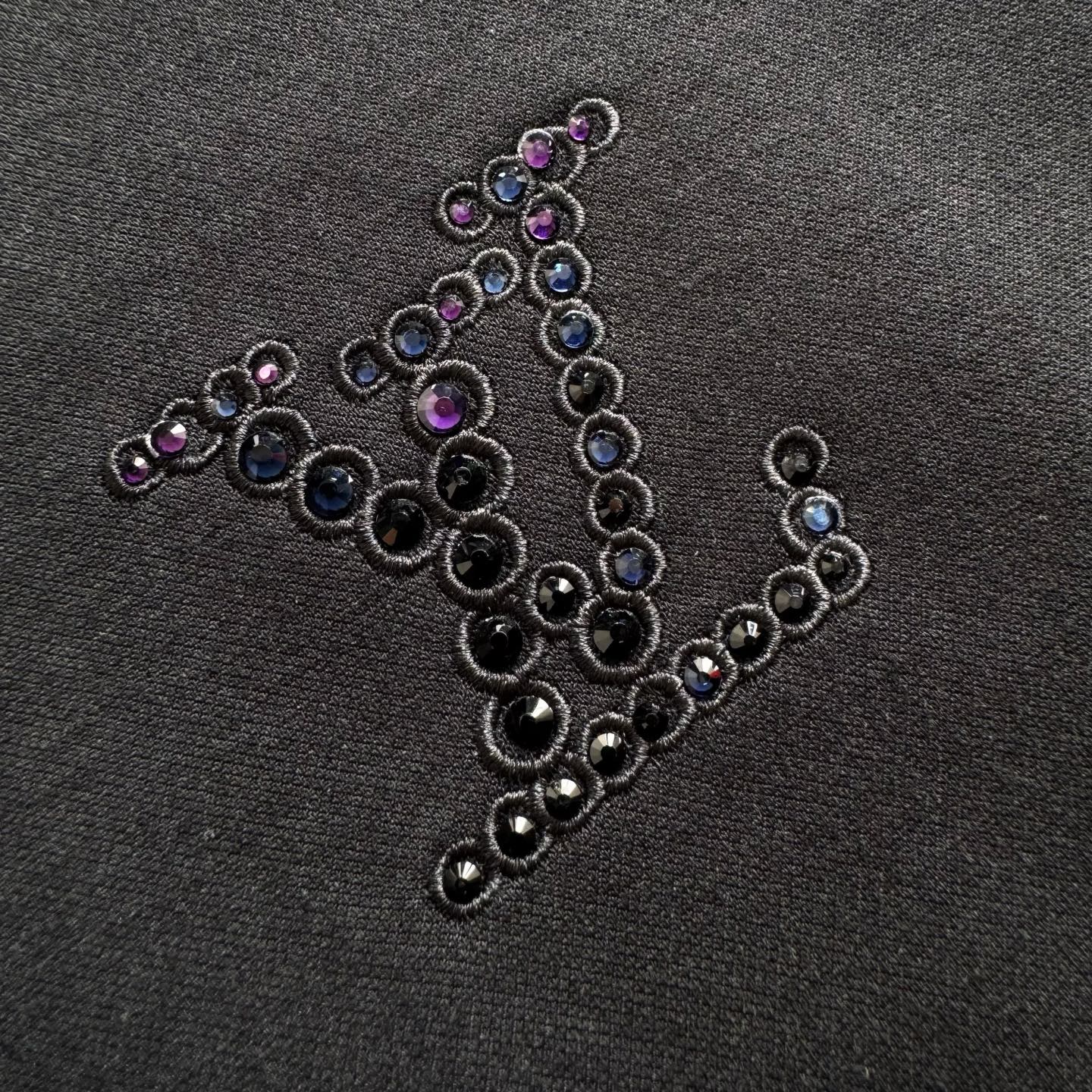 1v 25ss 烫钻圆领短袖 360g 32S单纱双面卫衣面料 挨针刺绣工艺,绣花主体采用挨针刺绣又称平包针 字母烫钻工艺点缀,圆领束腰短袖版型size:s/m/l/xl