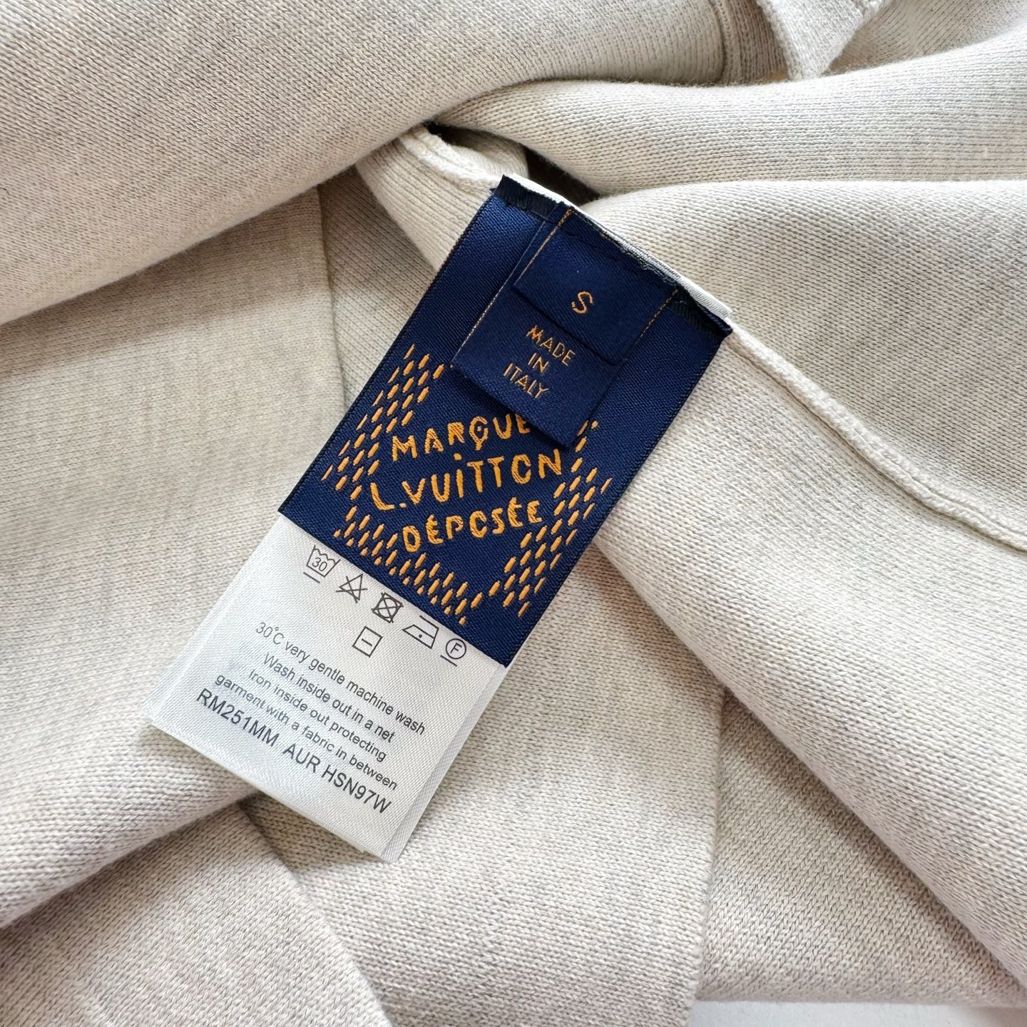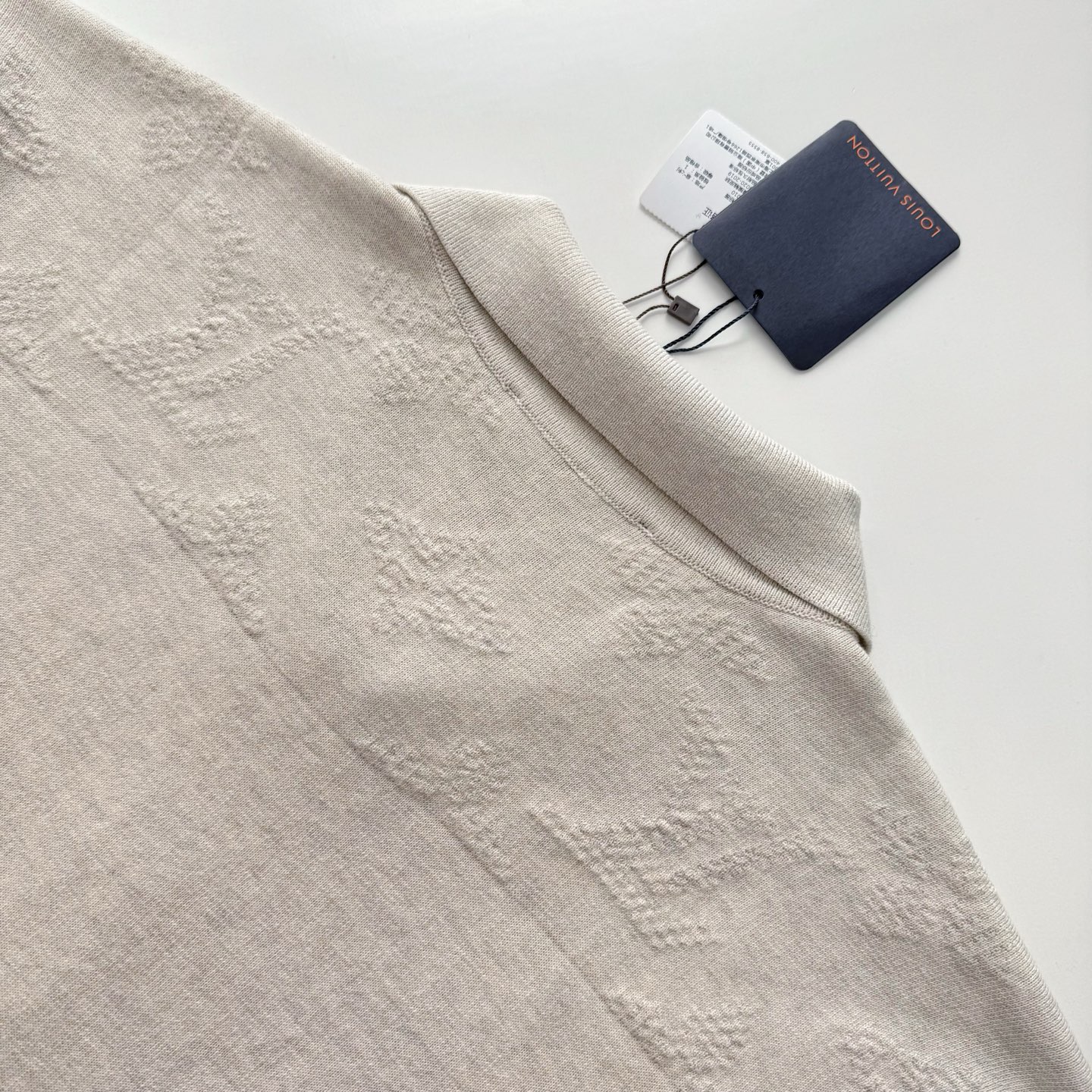 1v25ss Monogram口袋浮雕提花毛织套头 原版进行打色定染 颜色相似度高达95%以上 纱线由底面2条2/60精梳棉+5条涤纶+1条高弹拉架制成, 织机为14针德国进口STOLL机,每件织片耗时390分钟,由于此款组织的特殊性,对机器的稳定性要求非常高,许多机器都做不了,织片时间很长,织片时极易出现费片,损耗会非常大,缝盘由20针盘缝合 为了最大还原效果 我们衣服的大身织片采用超细16针电脑横机进行编织,整件衣服衣片几乎0结头 size:xs/s/m/l