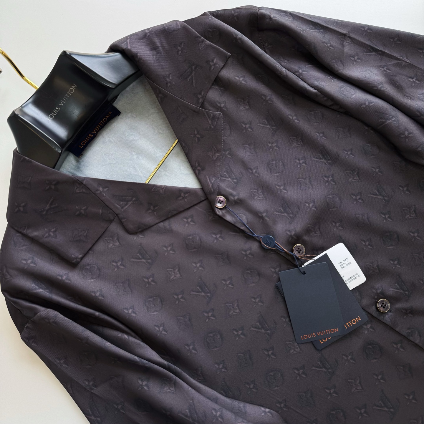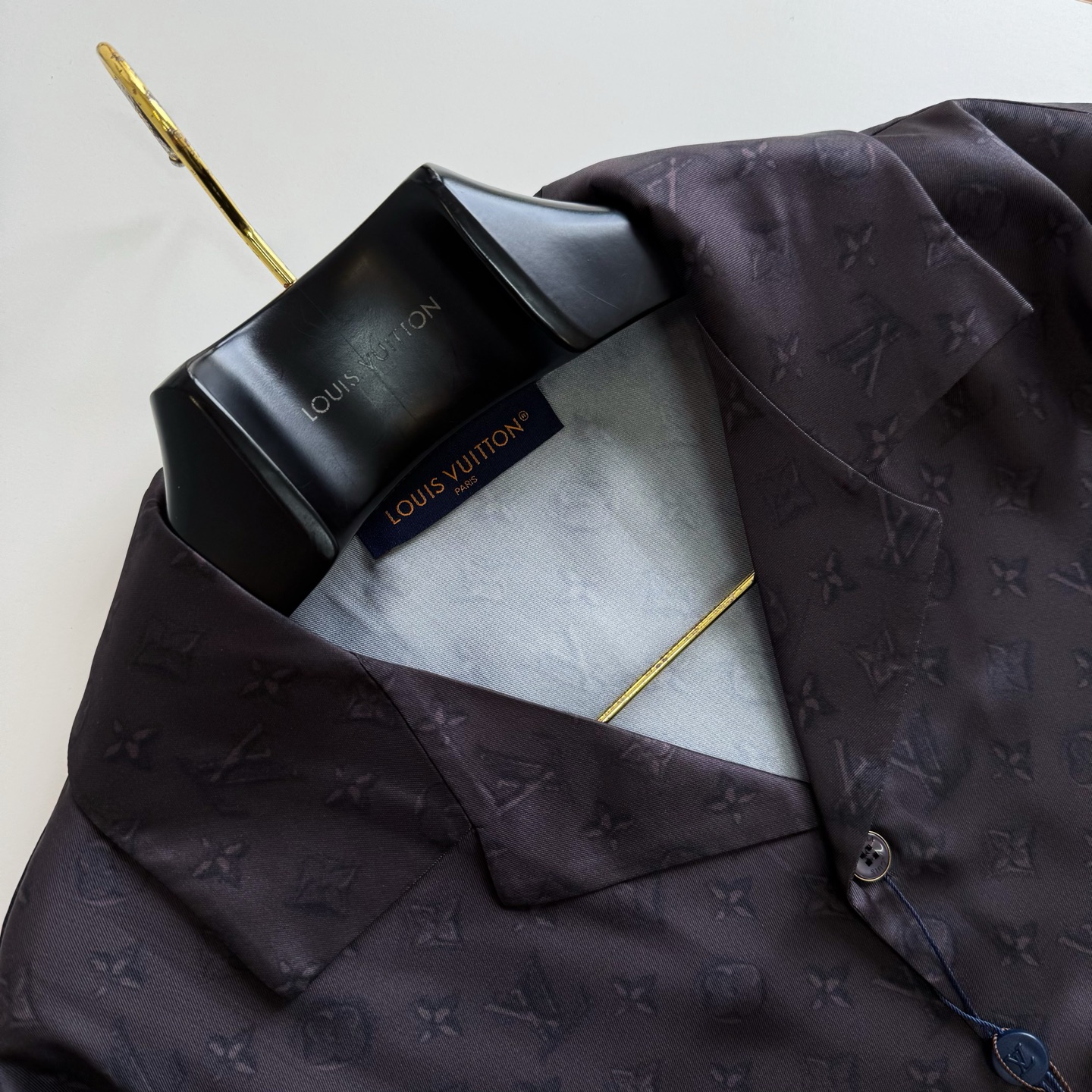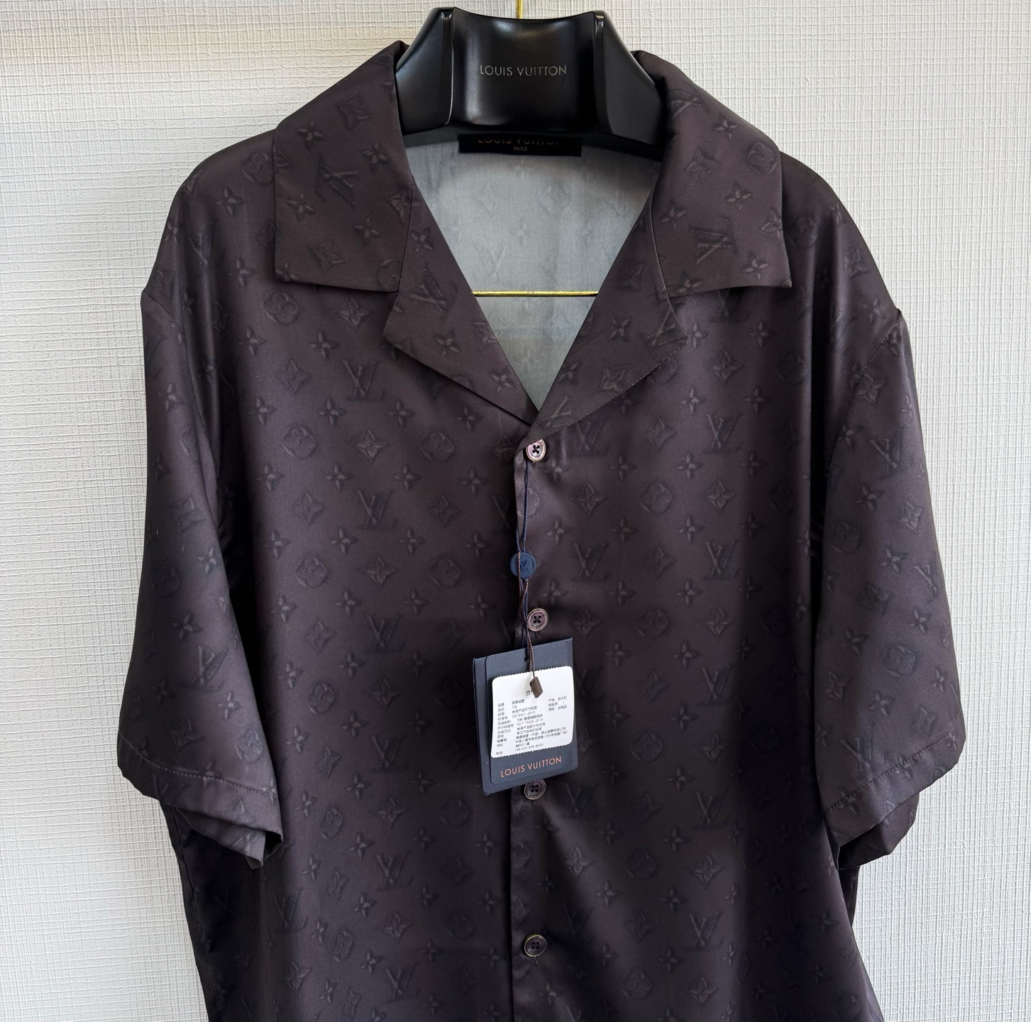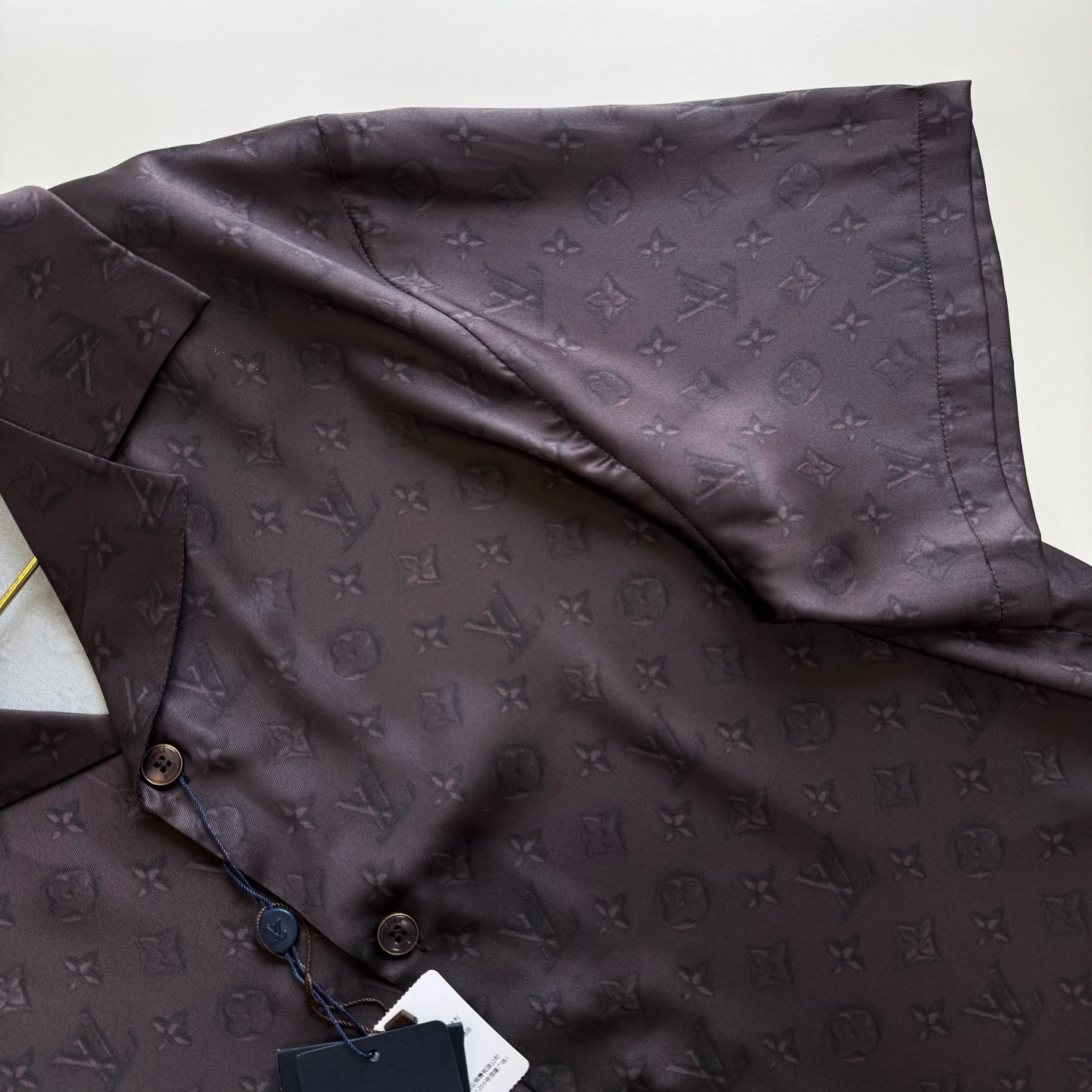 1v 25ss Monogram衬衫短袖 桑蚕丝混纺高密度面料 全幅 Monogram Sand Beach 印花 渗透技术结合数码直喷印花 对花位裁剪缝纫,采用激光对格定点后再切割,门襟处左右两边对称,纽扣全部开模定制刻字size:s/m/l/xl
