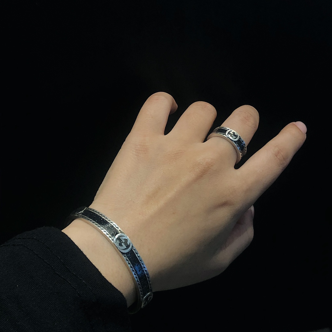 * 2022年新黑玛瑙手镯/戒指 送礼绝佳! 非常爆的款式 原版开发 细节看图片 厚度字印还原 情侣款 戒指 size:10-24# 编码:300350 手镯:500840