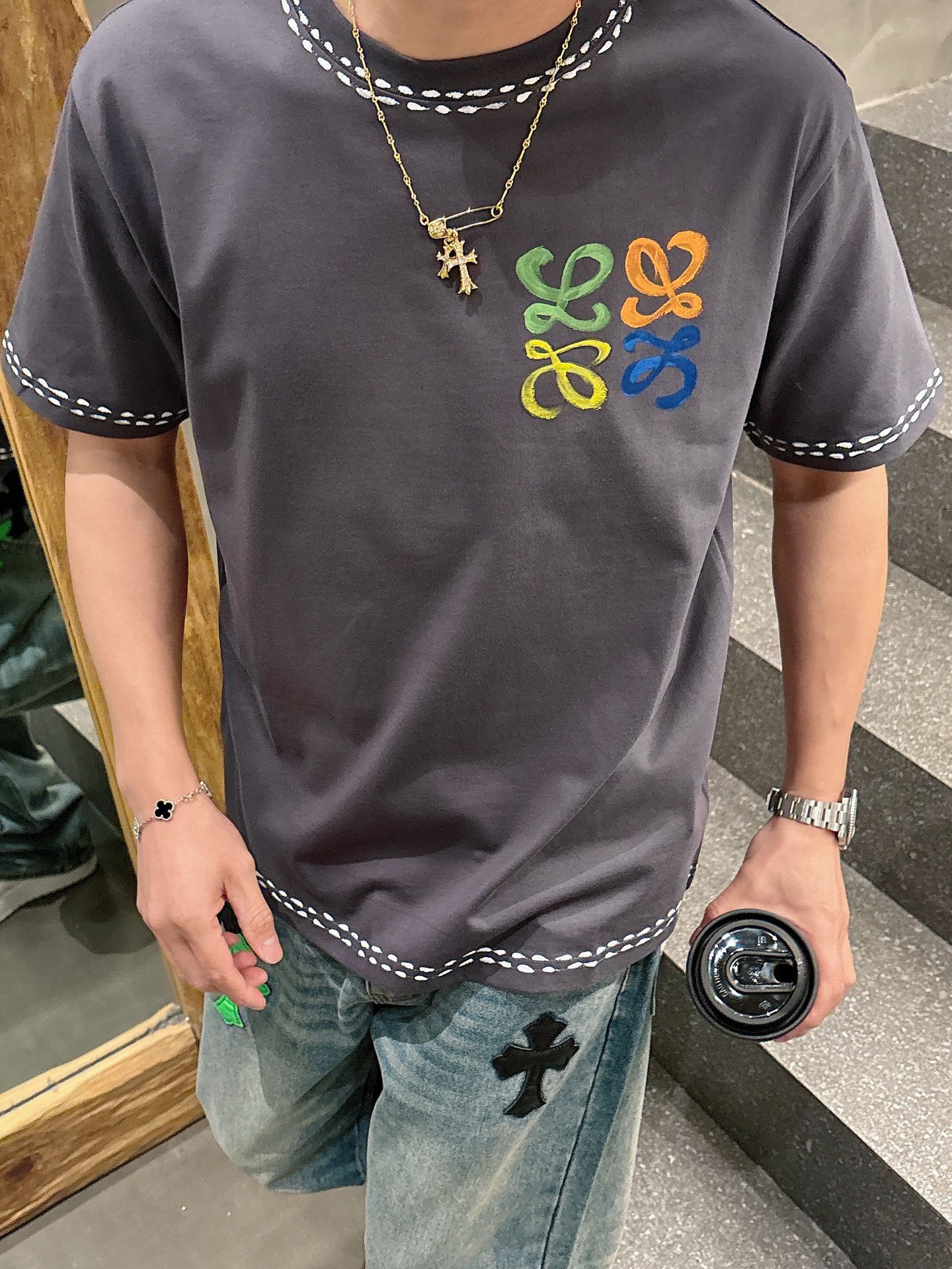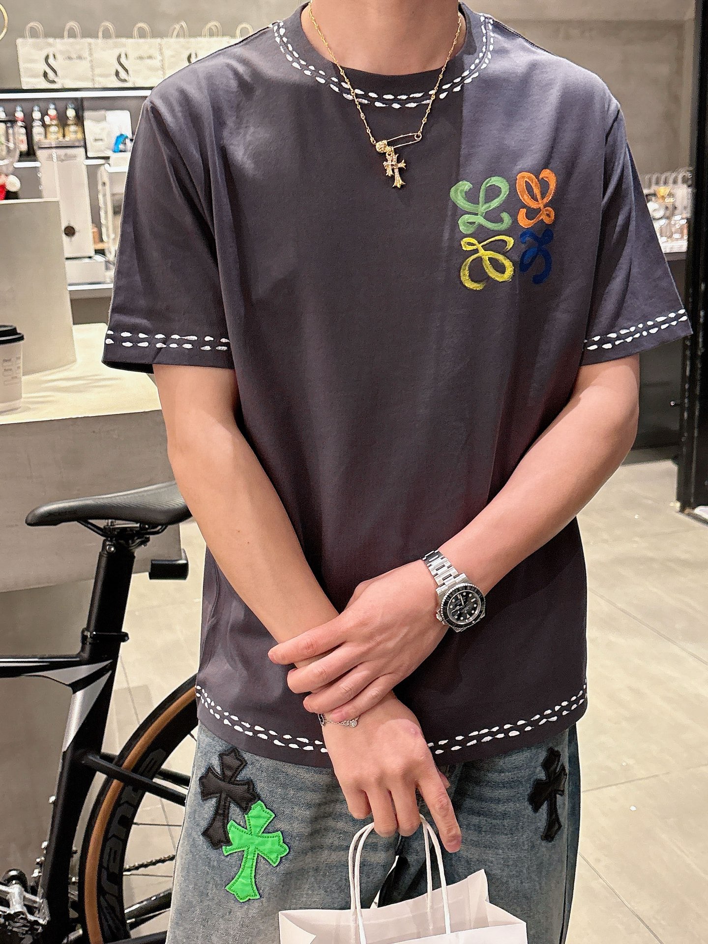 2025早秋新款圆领短袖 LOEW涂鸦手绘短袖升级原版面料 官方同款 短袖T恤 定制同缸染面料 手感非常舒服 春夏最新砖柜同步 时尚又个性 超级百搭 男女都非常合适 人手必备款 颜色: 白色 黑色 灰色 尺码:S M L XL 2XL