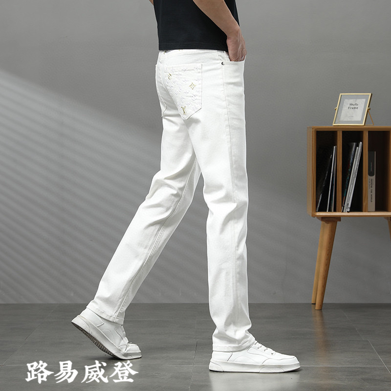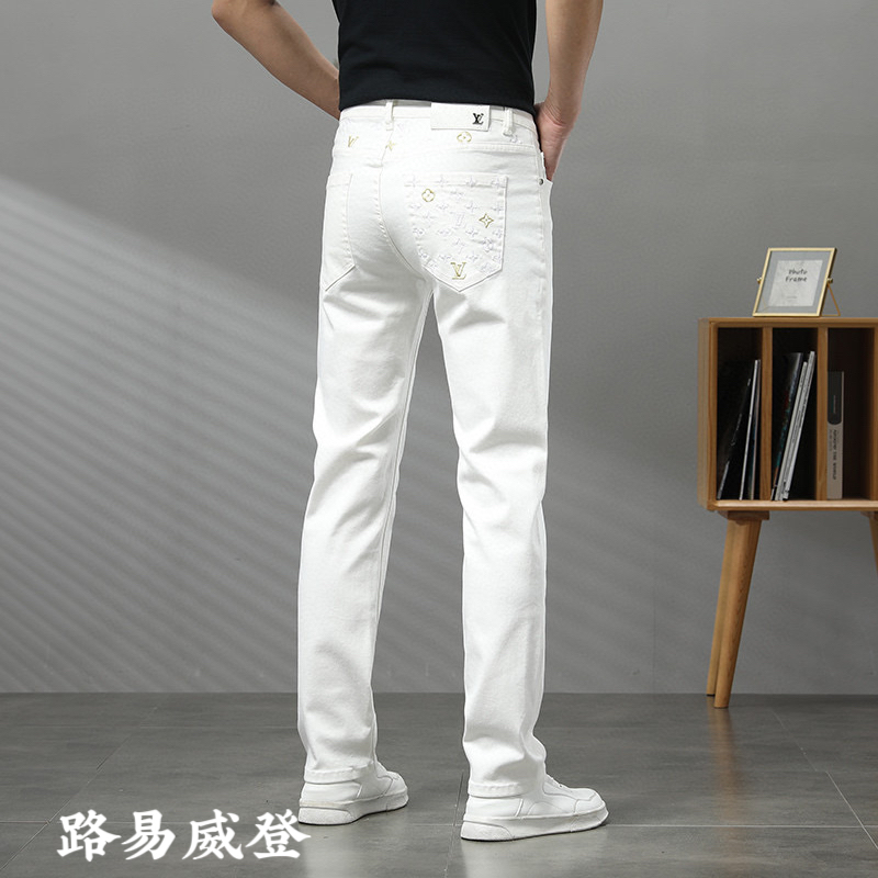 2025 春夏新款薄款牛仔裤 路易威登经典品牌logo 设计款式时尚大方 百搭款修身小脚长裤 码数28–38。
