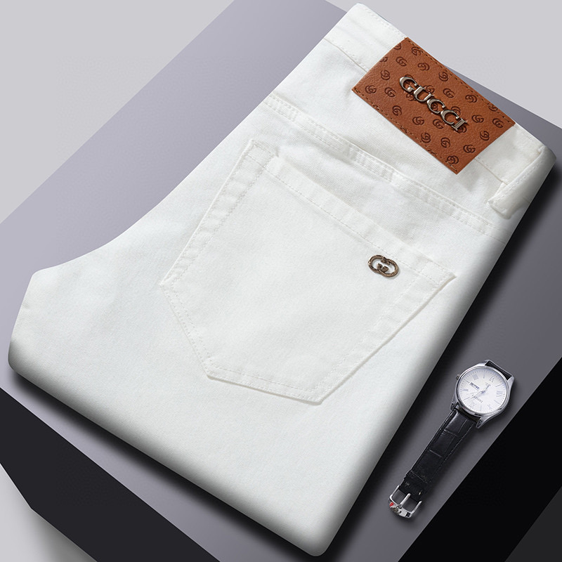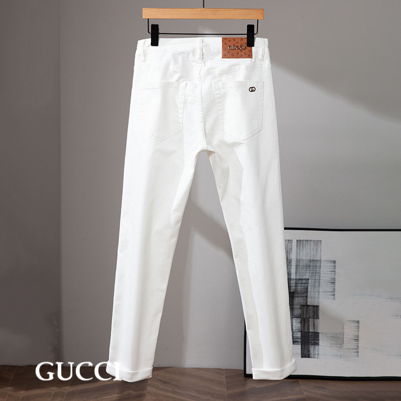 2025 春夏新款薄款牛仔裤 GUCCI 经典品牌logo 设计款式时尚大方 百搭款修身小脚长裤 码数28–38。