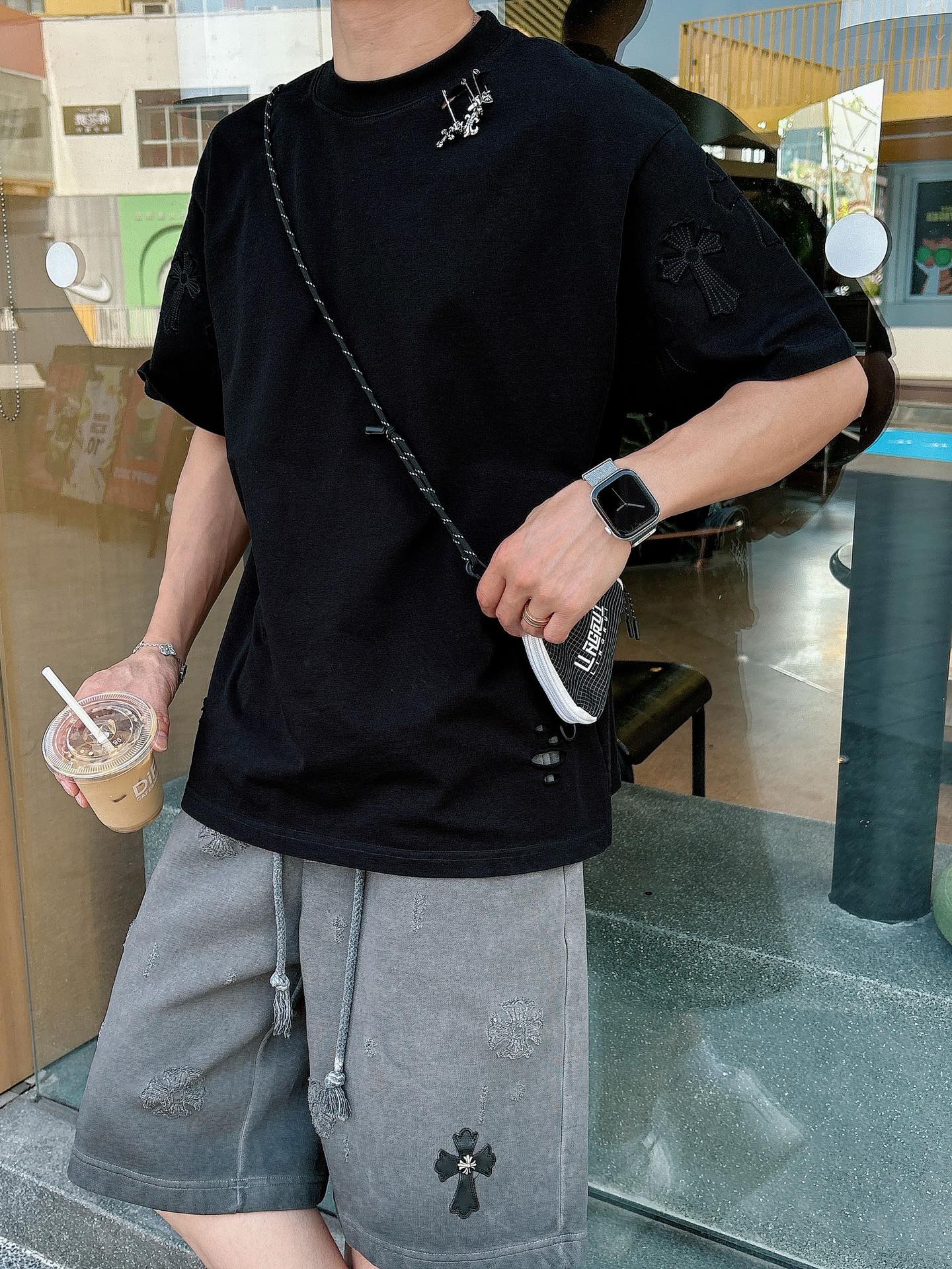 。 2025SS 克罗心家春夏新款半袖 爆款定制纯棉面料 重工洗水,重工刺绣,面料舒适 ️质感 码数:S-L