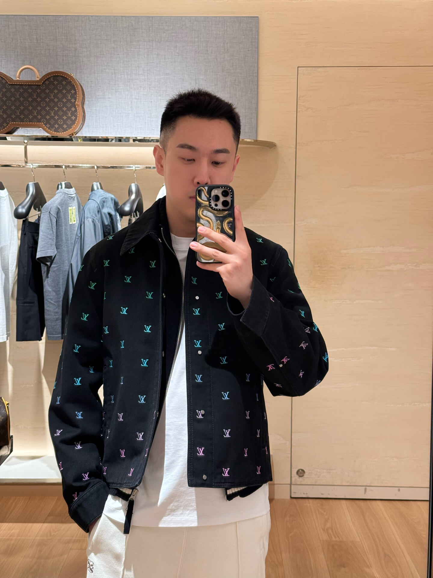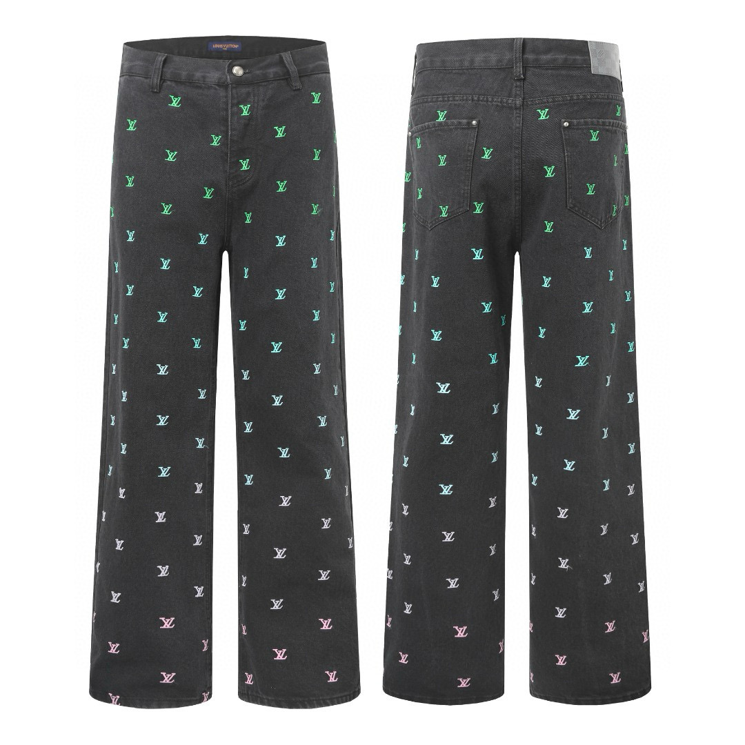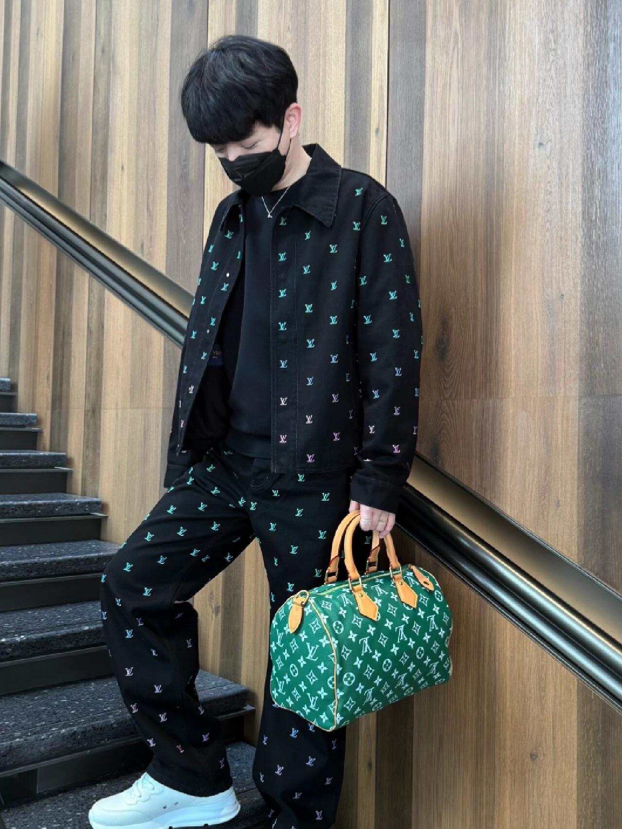 25ss春夏新款菲董系列 Louis Vuitton 路易威登LV满印Logo蓝绿撞色彩虹渐变刺绣牛仔套装牛仔外套牛仔裤 教练夹克取材水洗丹宁布,以全幅 LV Blason 刺绣图案的绚烂渐变彰显考究气息。可与同款滑板裤共筑瞩目造型。绣有 LV Blason 图案,采用精致的渐变处理,色彩从水蓝色渐变到绿色、蓝色和紫色。搭配牛仔裤裤,整体造型充满图案感。同系列长裤 裤型修饰亚洲男生身形 裤脚翻折露出老花锁边彩蛋 侧缝暗线让腿部线条直通地平线 与夹克组成深海渐变光谱 把奢侈剪裁穿出少年感的神裤!