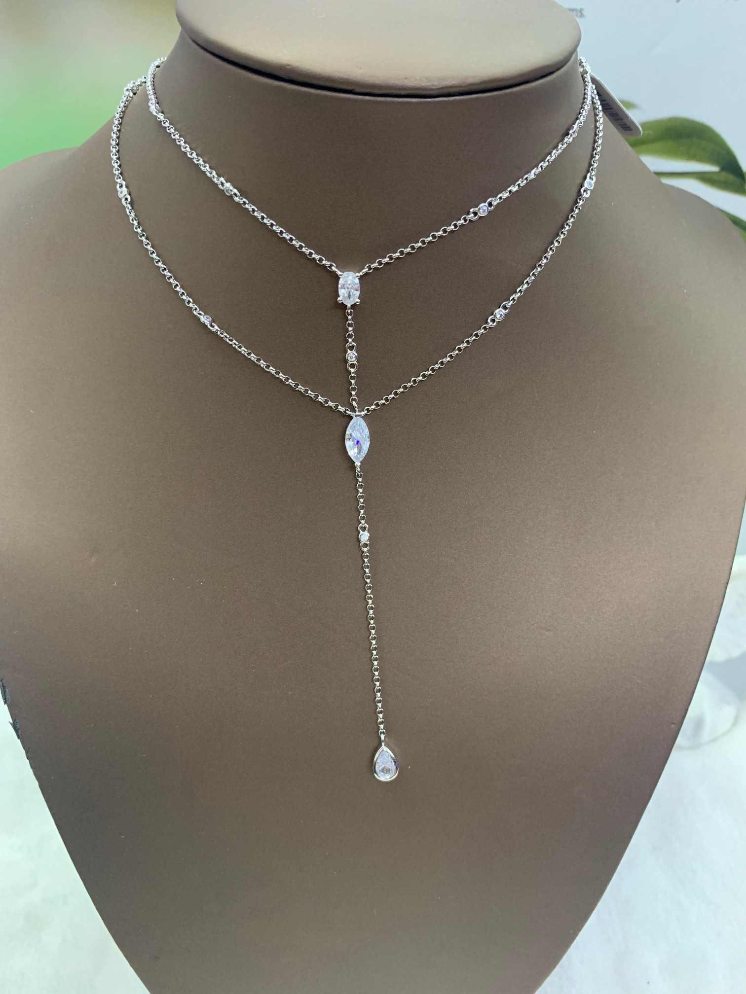 A家Monaco双层Y形垂坠椭圆形可调节银项链女生首饰送礼物