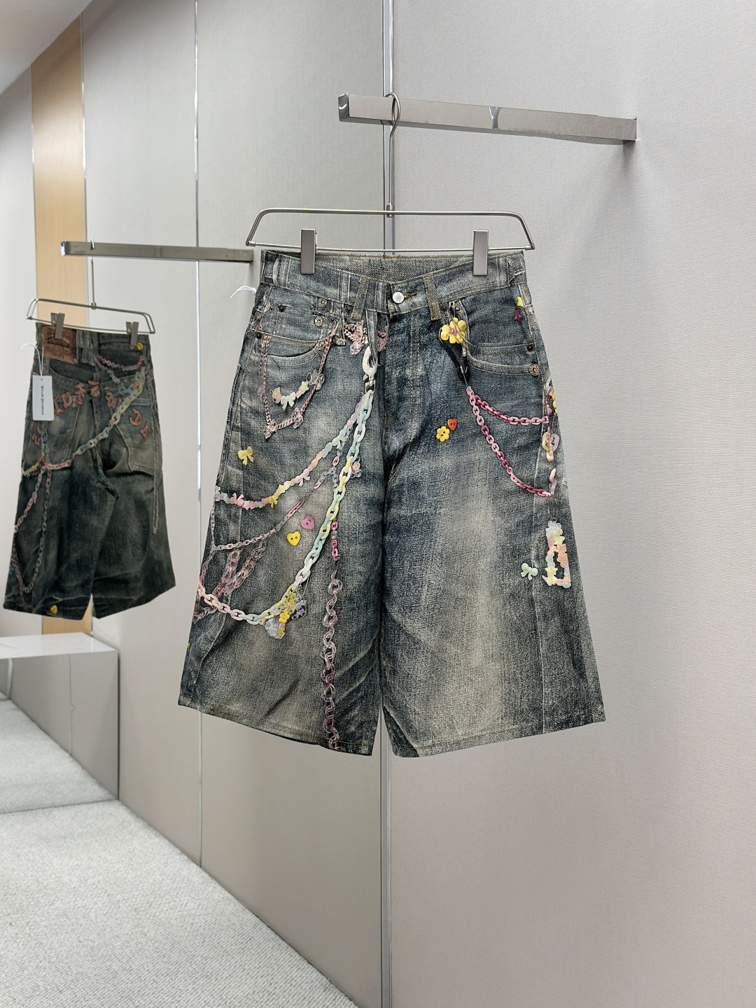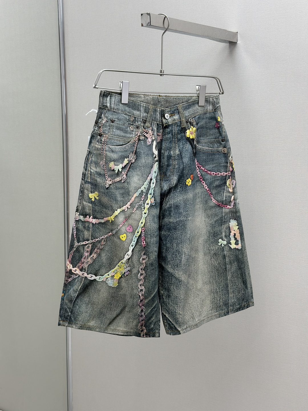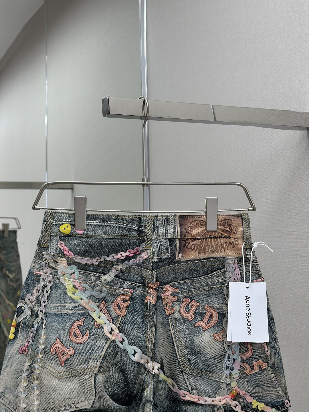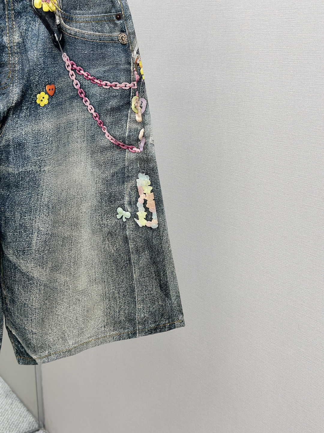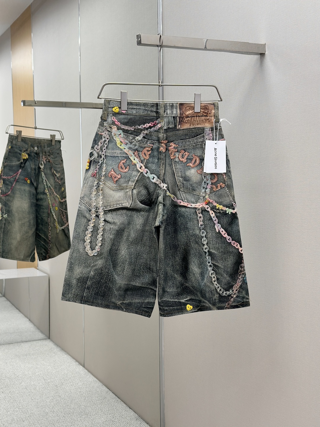 Acne Studios AC风格糖果3D打印花错视画低腰宽松牛仔短裤1981M 男女同款