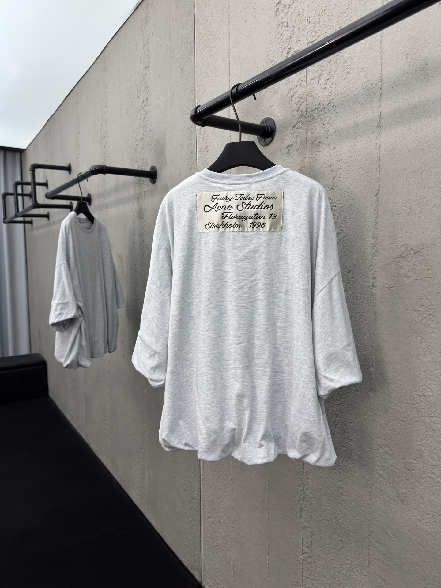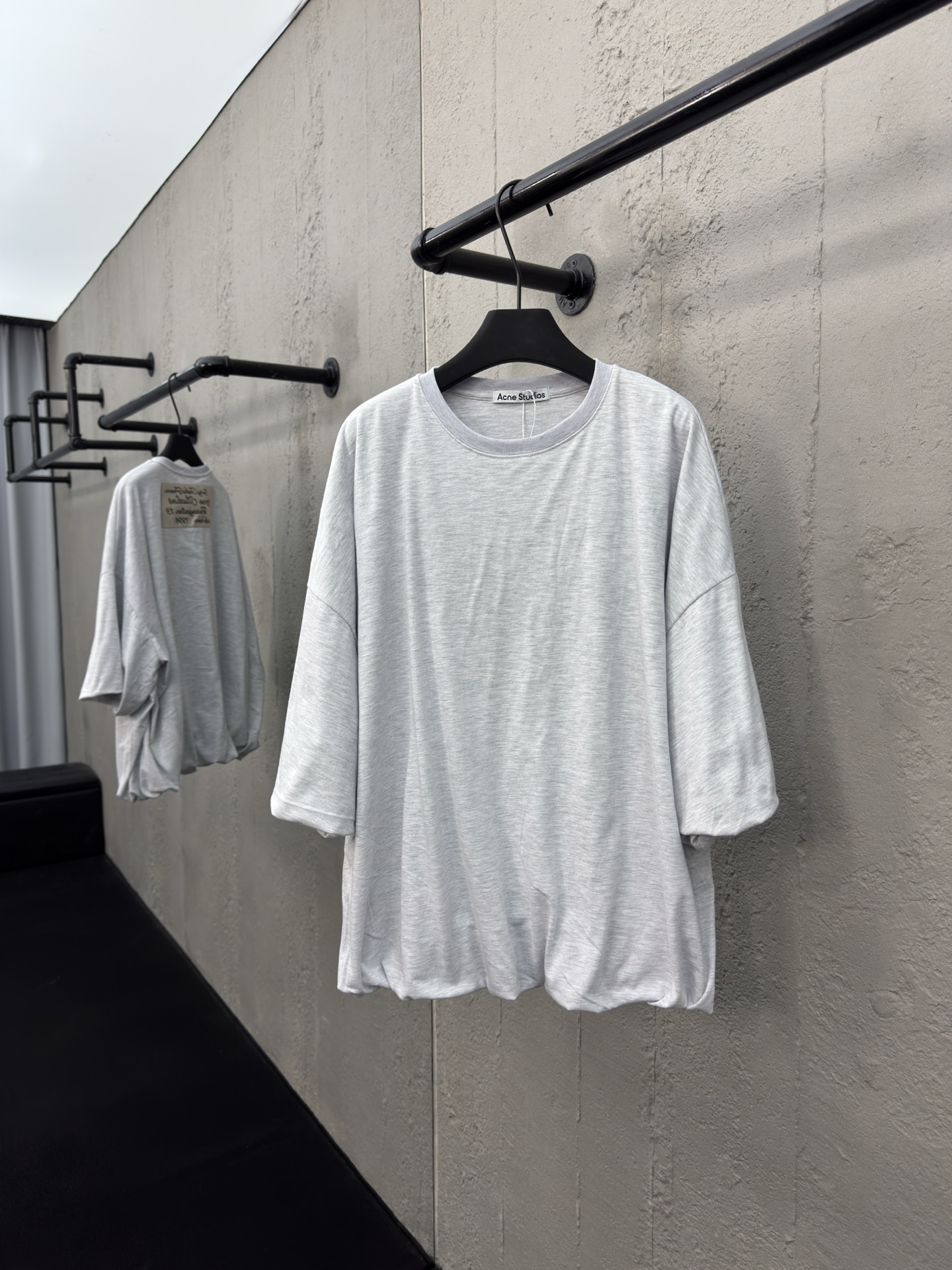 Acne Studios 七分袖双层短袖 工艺说明:面料采用160克高密长绒棉材质,质感紧密柔韧 搭配花苞式设计 定制贴布绣花工艺 袖口边.下摆采用对内翻折.手工定位捏褶.通过短里层向内吊起形成类似双层效果,整体走线平直细腻,面料舒适柔软,颜色一致无色差 能与同款搭配营造时尚造型,驾驭各种场合,定制辅料,三标齐全,男女同款! ⚠️颜色:灰色 ⚠️Size:S/M/L