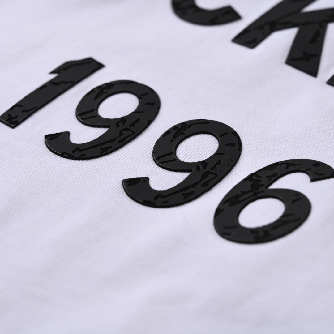 Acne Studios 后背1996硅胶字母印花短袖T恤 面料采用32支230G精梳棉,面料配色全部定织定染,螺纹选用1*1微弹领口,图案印花采用立体硅胶刻字膜热转移印花,全新的技术激光定位后再印花,刻字膜烫画红外十字对位高温压烫,确保牢度,硅胶材质是进口环保硅胶,表面是呈现哑光的,领口内侧领标缝线平整人字条包边,穿着更加舒适不会磨皮肤,实物效果非常出众,男女同款 Size:S-XL