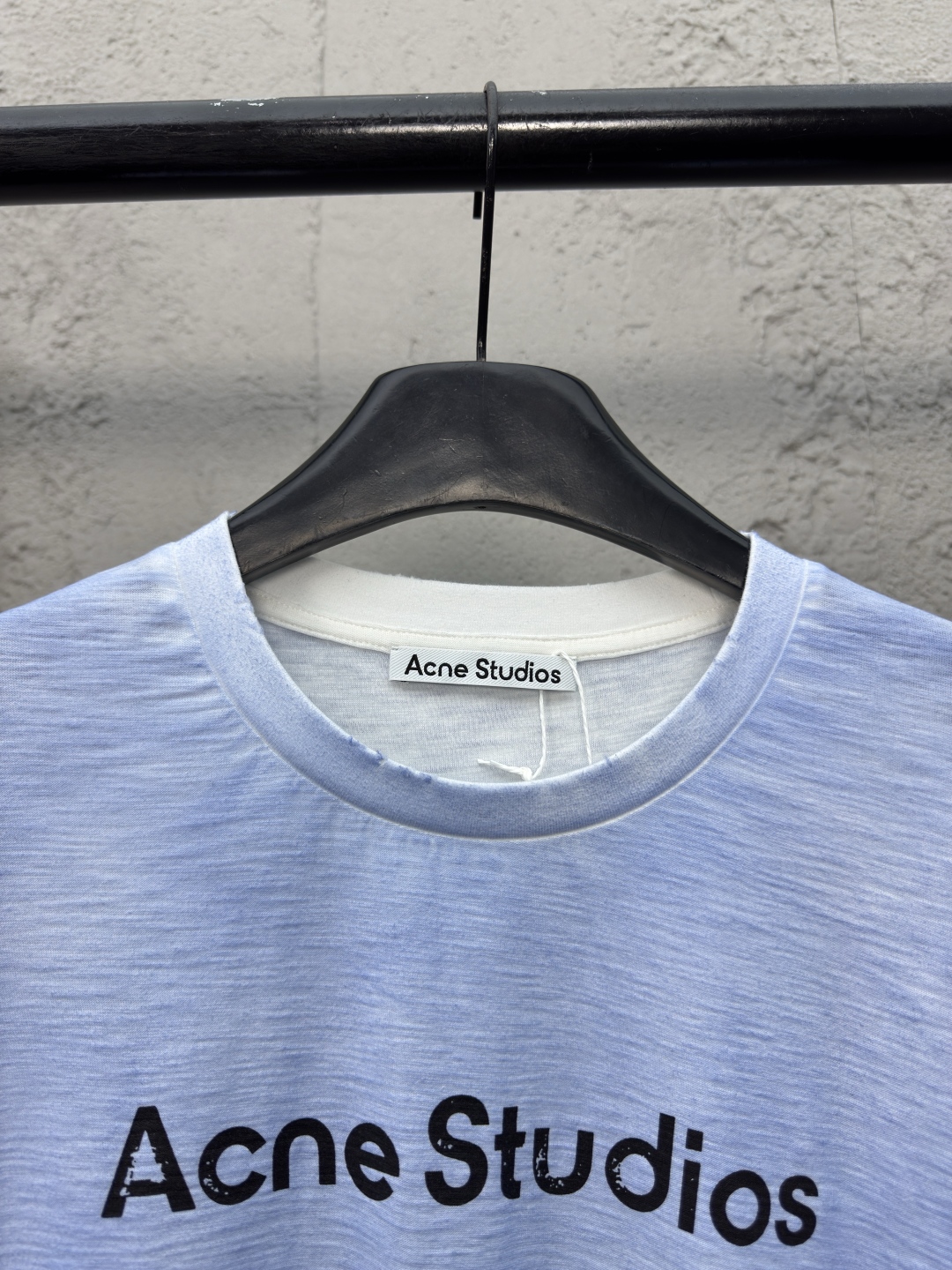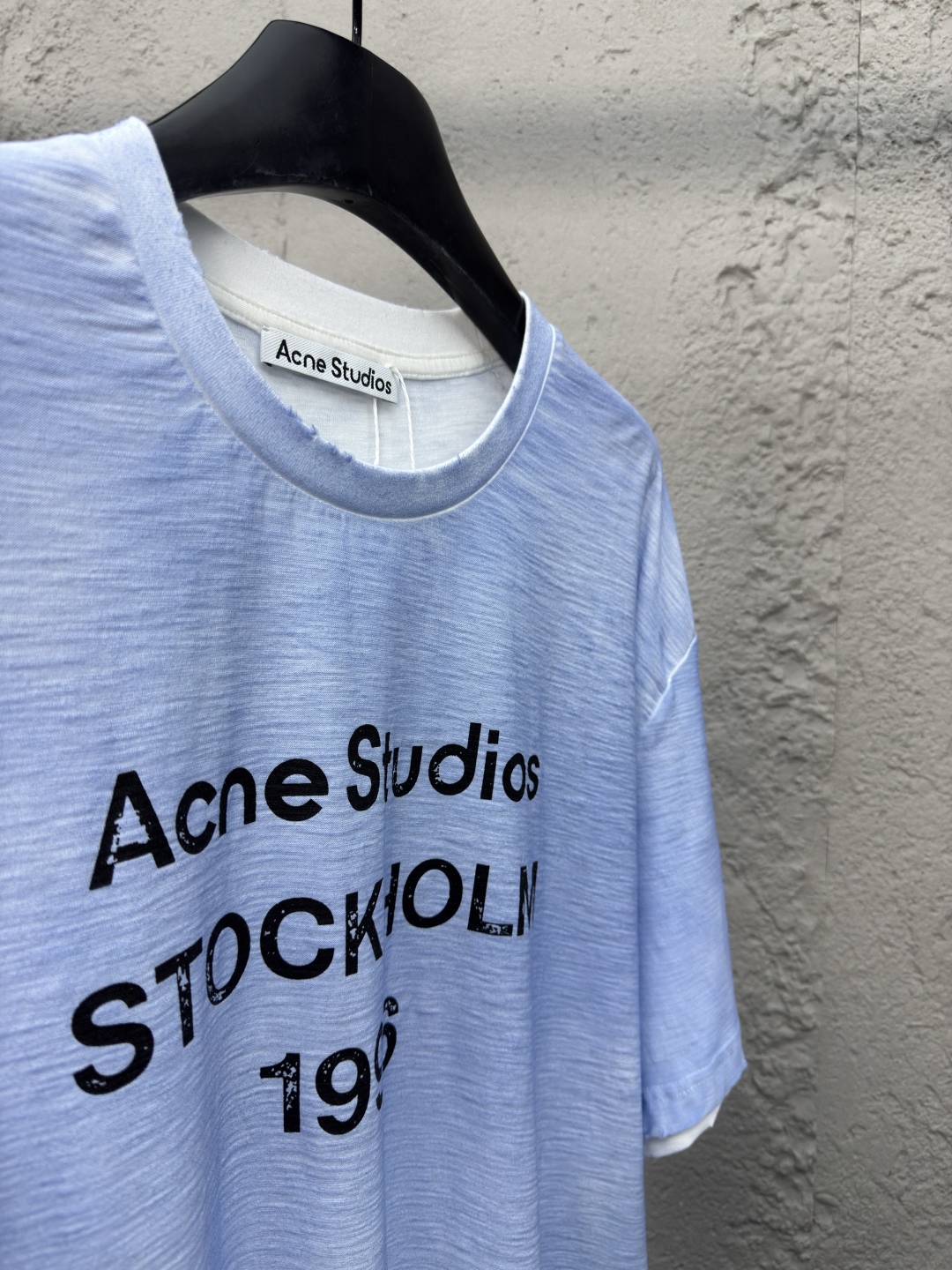 Acne Studios 1966泥染水洗做旧短袖 工艺说明:采用选用超柔纯棉面料,成衣染色水洗做旧工艺,把胸前的部分做出脏脏的感觉,与下半部分呈现了渐变的效果领口少许磨破更加契合整体调性,整体走线平直细腻,面料舒适柔软,颜色一致无色差 能与同款搭配营造时尚造型,驾驭各种场合,定制辅料,三标齐全,男女同款! ⚠️颜色:蓝色 ⚠️Size:S/M/L/XL