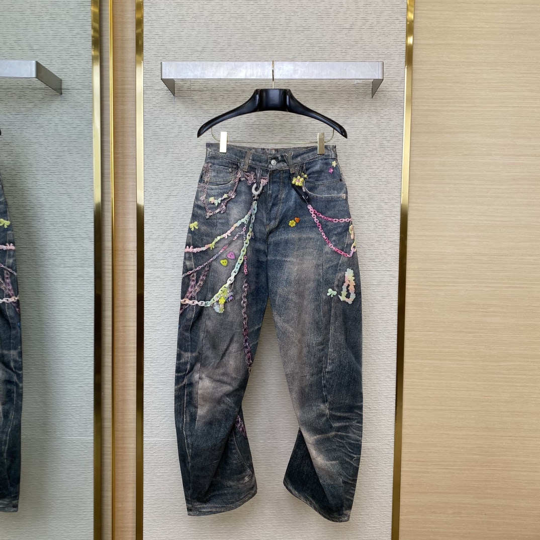 YB购入打版,采用定制丹宁牛仔布面料,3D打印系列是科技与时尚的完美融合,也是匠心与创新的深情对话,每一件单品都从一张设计草图开始,经过无数次推敲与打磨,最终通过先进的3D打印技术,将链条元素精准地融入牛仔裤的肌理中。这种工艺不仅突破了传统制衣的局限,更让每一条链条都仿佛有了生命,随着身体的律动而灵动跳跃,设计灵感源于对自由与个性的深刻理解,链条象征着连接与力量,而牛仔裤则是经典与叛逆的象征,ACNE将两者结合,创造出一种既前卫又充满人情味的单品,每一处细节都经过精心考量,从布料的柔软度到链条的贴合感,都为了让穿着者感受到无与伦比的舒适与自信。穿上它,仿佛能听见链条轻响,那是属于你的独特节奏,也是对时尚的深情告白,定制辅料,男女同款!