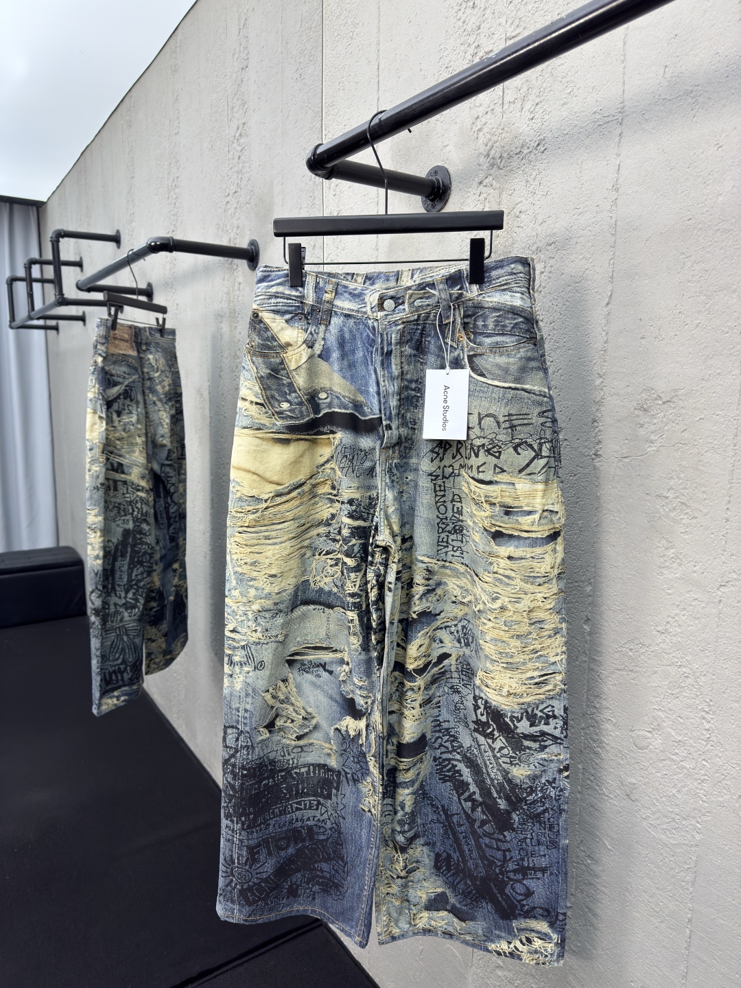 Acne Studios 3D破洞磨毛牛仔裤 工艺说明:采用磨毛无弹面料,才能出得来3D的效果,难点是前前后后修正了八次印花细节,六次调色,再由激光烧花定位裁剪,整体走线平直细腻,面料舒适柔软,颜色一致无色差 能与同款搭配营造时尚造型,驾驭各种场合,定制辅料,三标齐全,男女同款! ⚠️颜色:多色 ⚠️Size:42/44/46/48/50/52