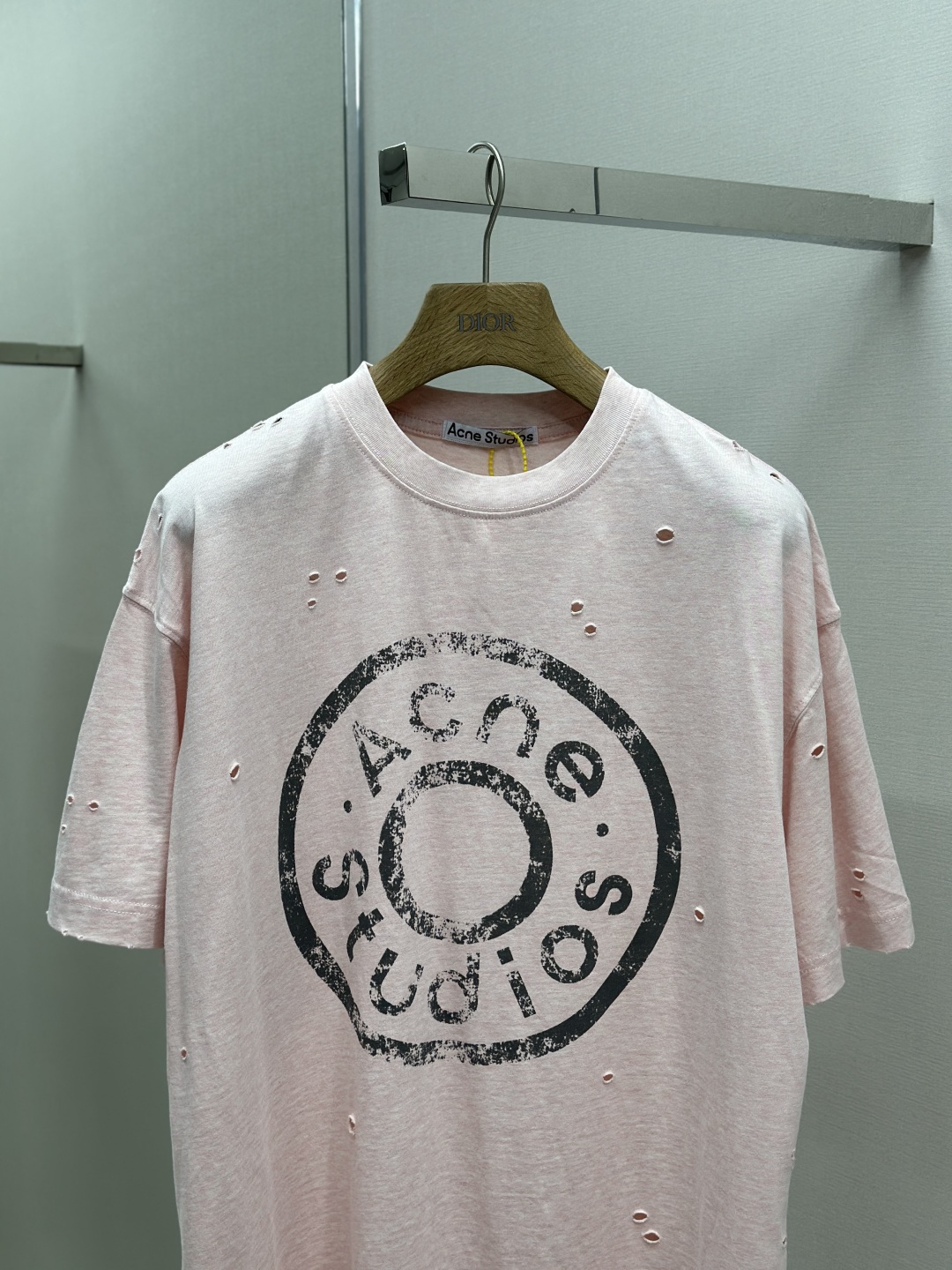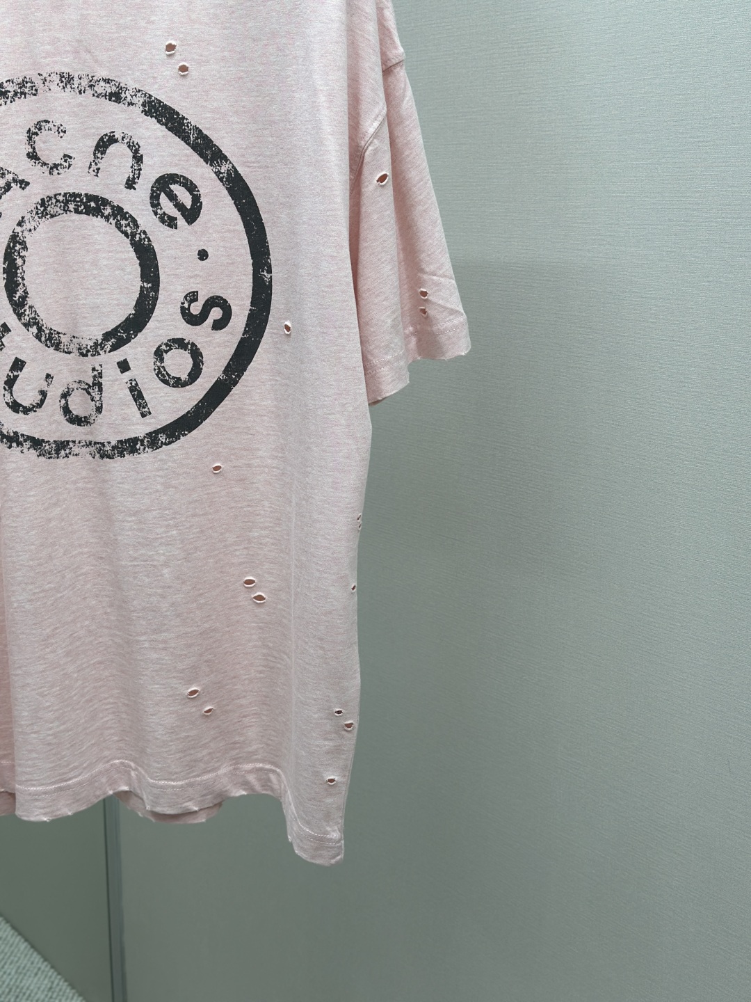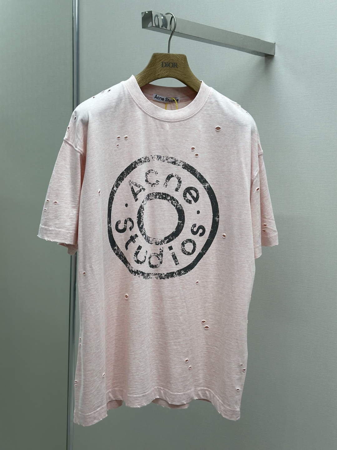 Acne Studios SS25 Logo字母数字印花磨破喷马骝圆领短袖T恤 定制260克纯棉面料 重工做旧破坏男女同款