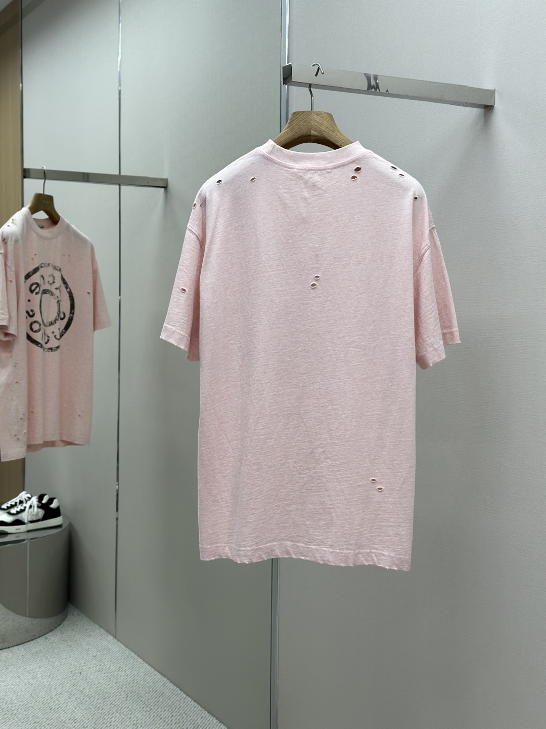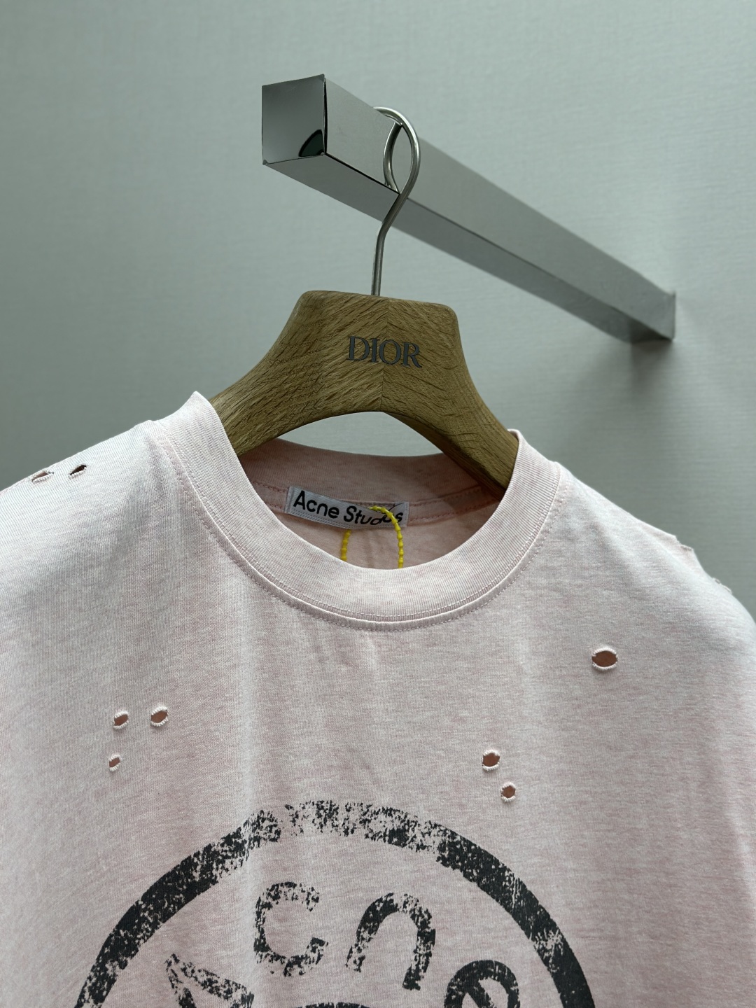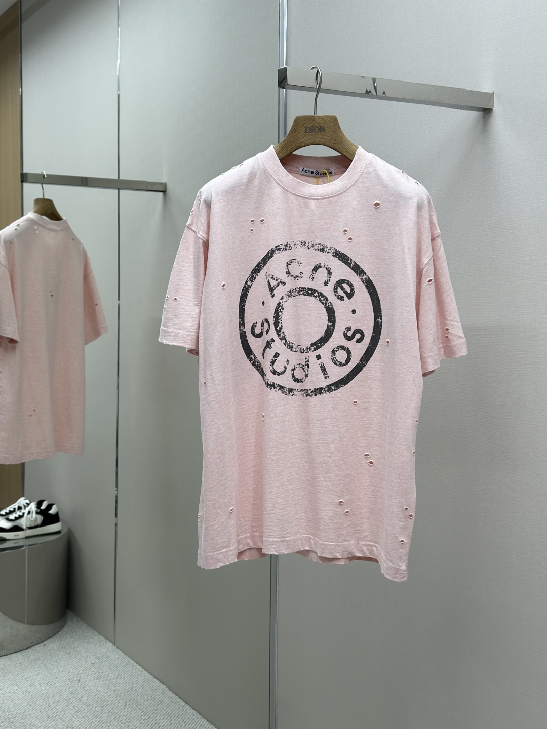 Acne Studios SS25 Logo字母数字印花磨破喷马骝圆领短袖T恤 定制260克纯棉面料 重工做旧破坏男女同款