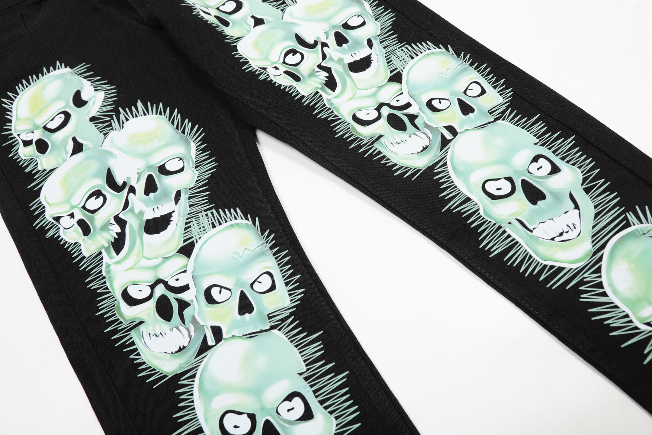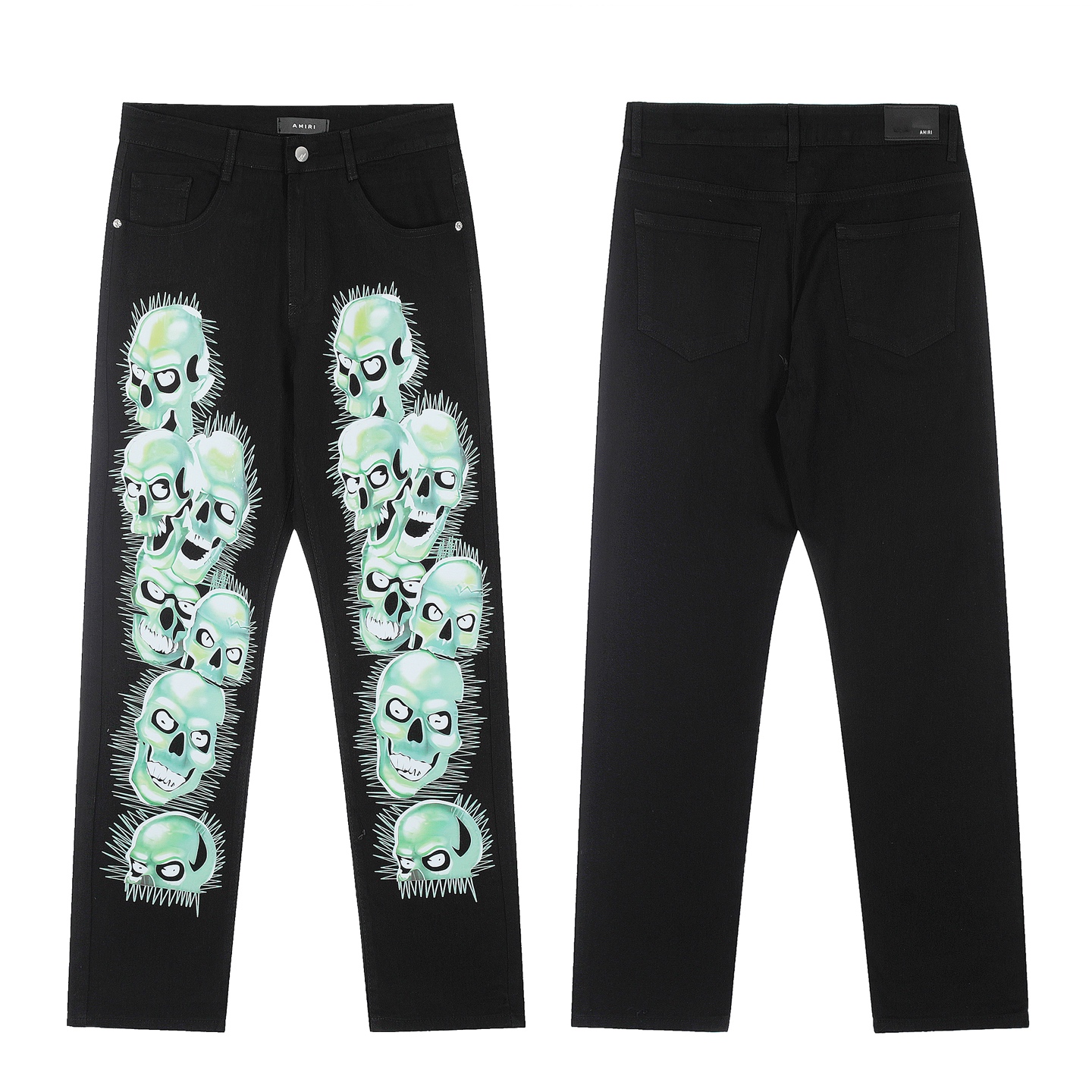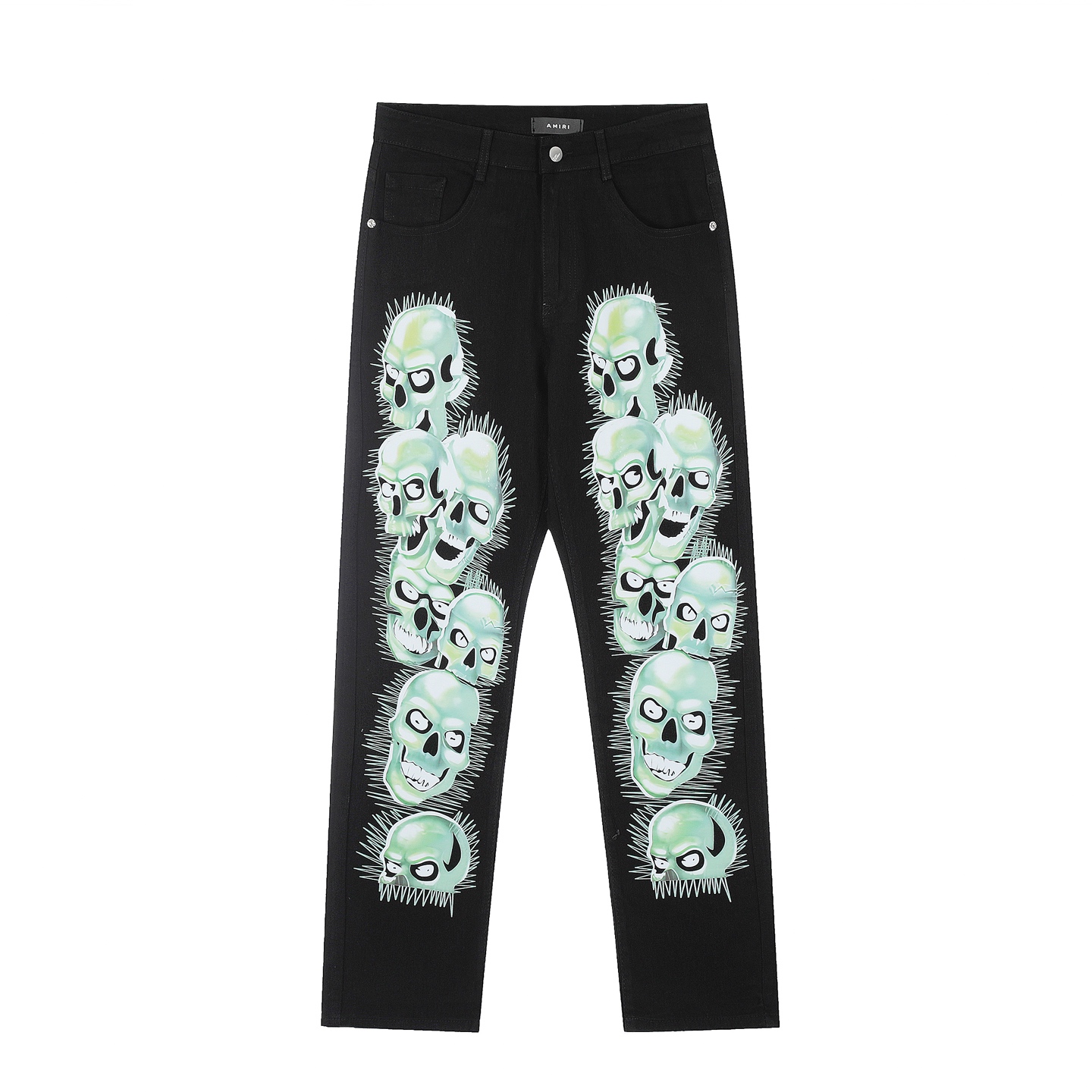 Amiri满印骷髅☠️印花小脚牛仔裤修身小脚牛仔裤