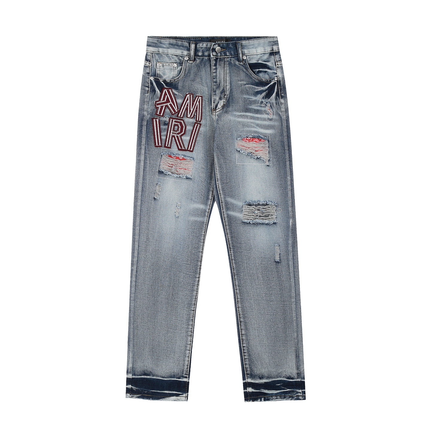 AMIRI贴布刺绣 牛仔裤长裤 AMIRI高街基础破洞紧身弹力牛仔裤长裤