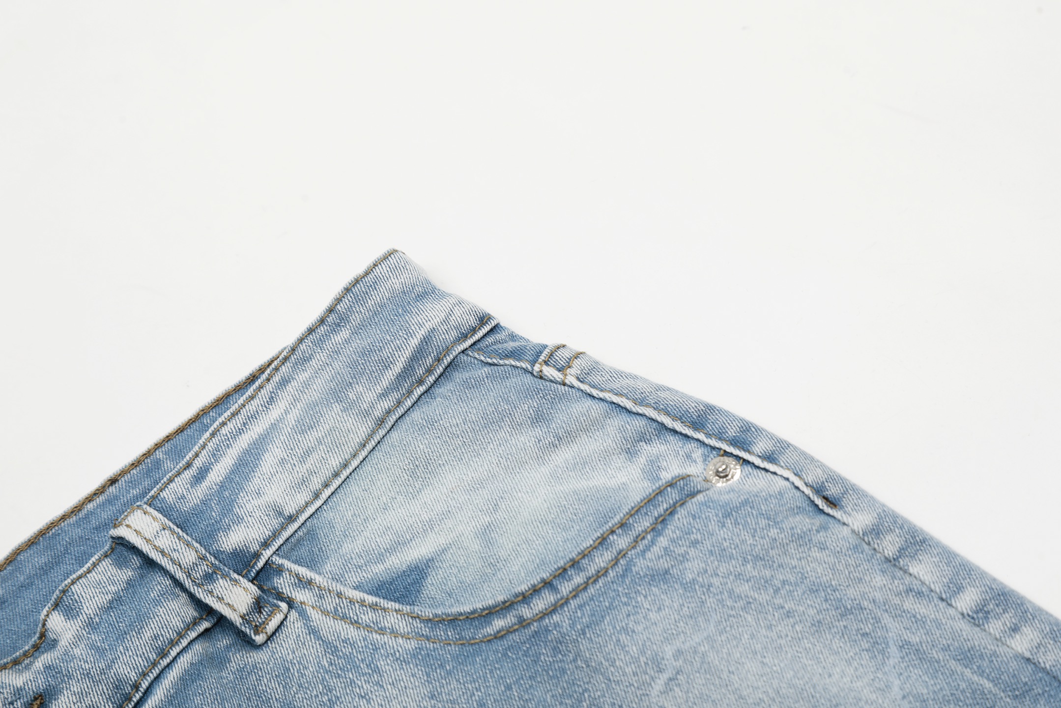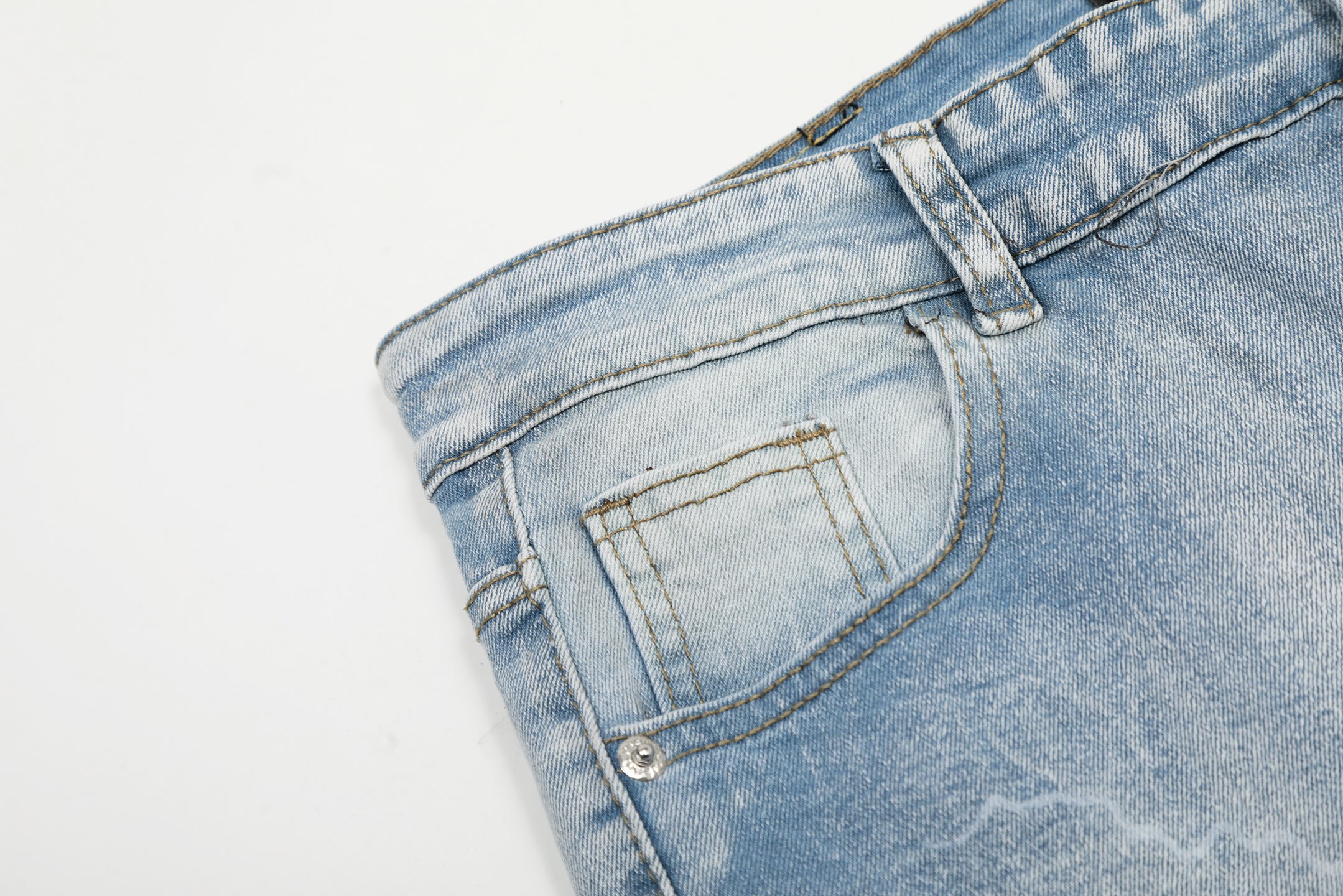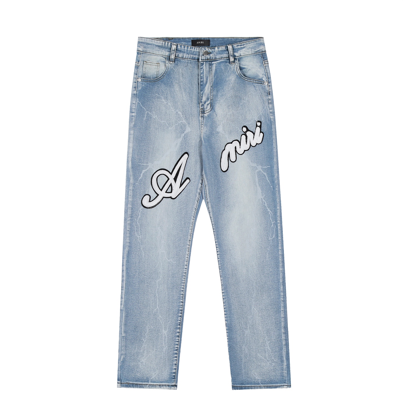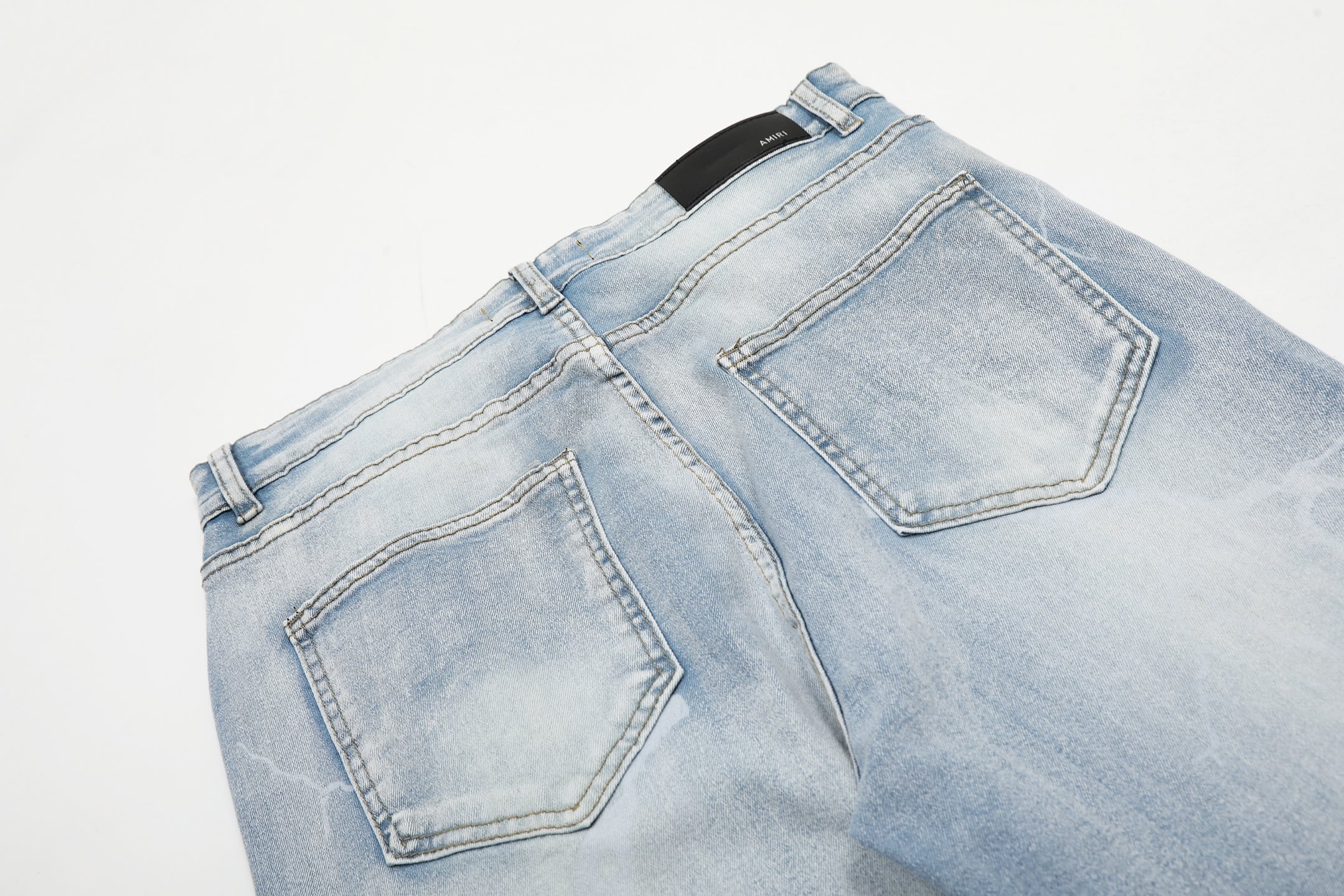 「D 」 AMIRI贴布刺绣 牛仔裤长裤 AMIRI高街基础破洞紧身弹力牛仔裤长裤 amiri品牌的牛仔裤打破的原有牛仔裤的制作工艺和裁剪,布料都比较柔软舒适 手工缝制领标 定制logo钮扣 真皮皮牌 颜色:蓝色 尺码:30-32-34-36