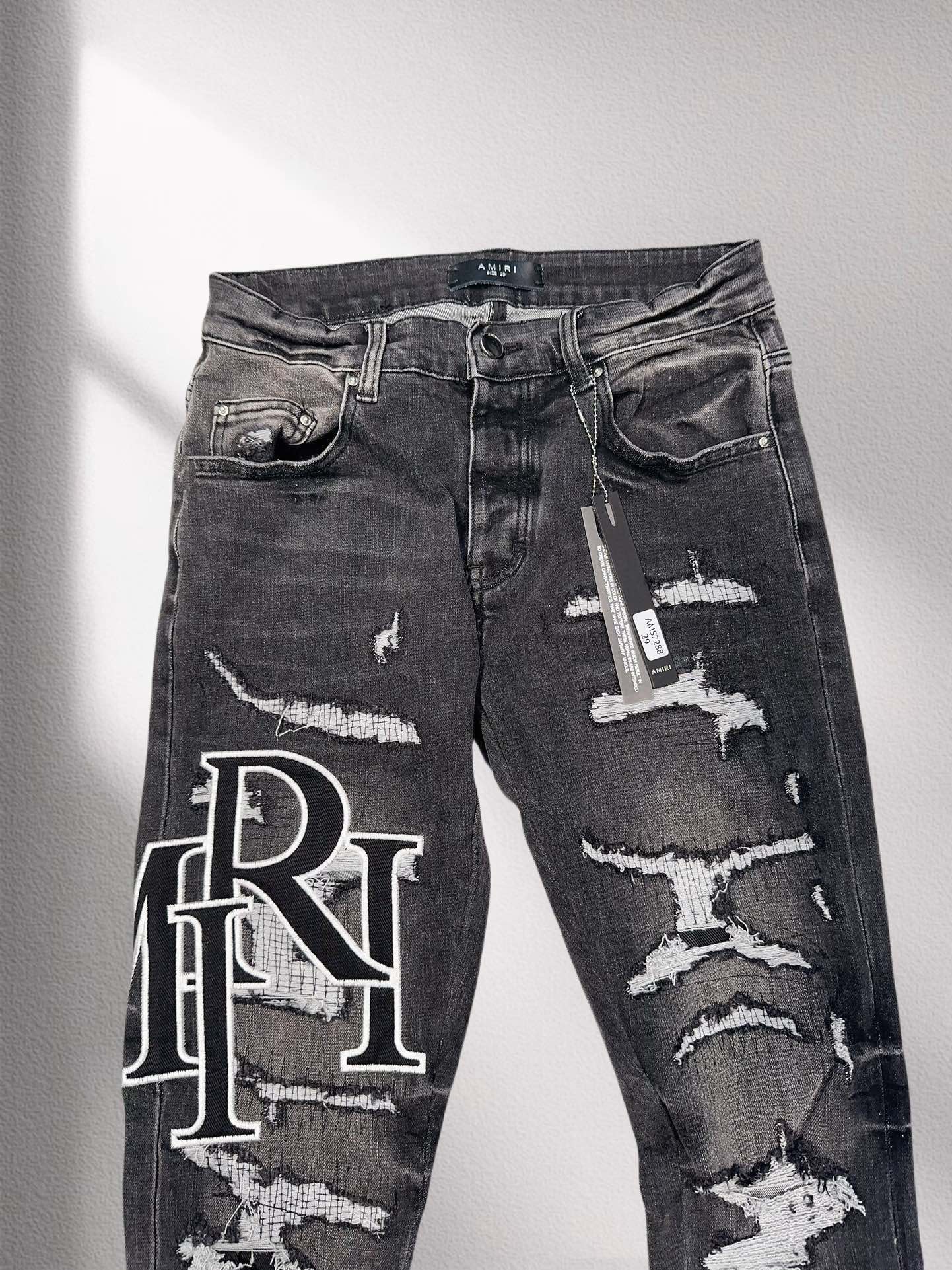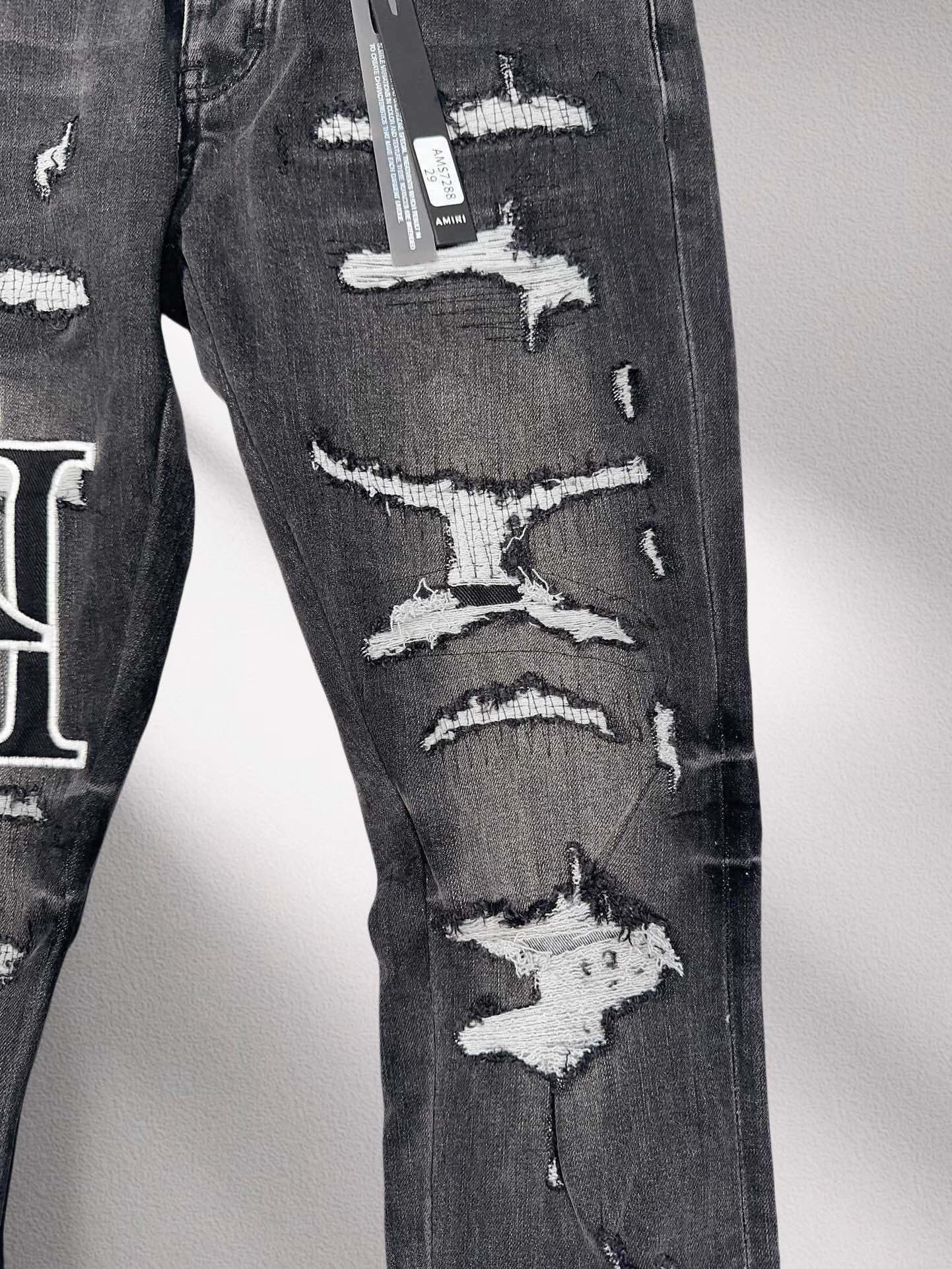 AMIRI 2024ss男士牛仔裤 最新款原单爆款仔裤 超级定制款 原版五金 超级重工工艺 版型超赞,丹宁牛仔裤,高级弹力小直筒修身牛仔裤!高端贸易公司货,同步官网发售!经典洗水做旧灰色 超级百搭 局部重水洗的特殊工艺处理,视觉上比单一纯灰色还要显瘦的一个段位,基础的五袋裤,经典Slim Fit小直筒,后臀处保留了招牌的立体剪裁设计 后口袋经典品牌大Logo五金工艺。客供丹宁牛仔面料 横向自带高弹力,上身超级舒适!自然水牛仔属于兼容性最极广的单品,无关季节性,轻松横扫衣橱各种上装!百搭首选推荐!细节做工无可挑剔!款式不挑人,特别高档,好货不等人,看中赶紧下手。尺码:29-40